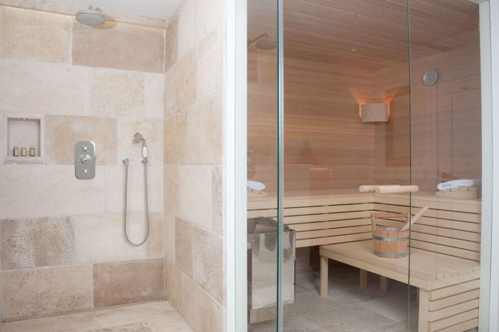 Første etasje: (Stue(TV, peisen, stereo), Kjøkken(, vannkoker, brødrister, kaffetrakter, oppvaskmaskin, kjøleskap, fryser), soveværelse(, , dobbeltseng, TV), bad(, WC, dusj, håndvask, oppvarming), guest toilet(, WC, håndvask)) Mellomliggende etasje: (avslapningsområde(, , badstue, badekar, badekar, dusj, håndvask)) , , Internett-tilgang, tørketrommel, vaskemaskin, oppvarming, terrasse(, Strand, hagemøbler), parkering, strykebrett, strykejern, telefon