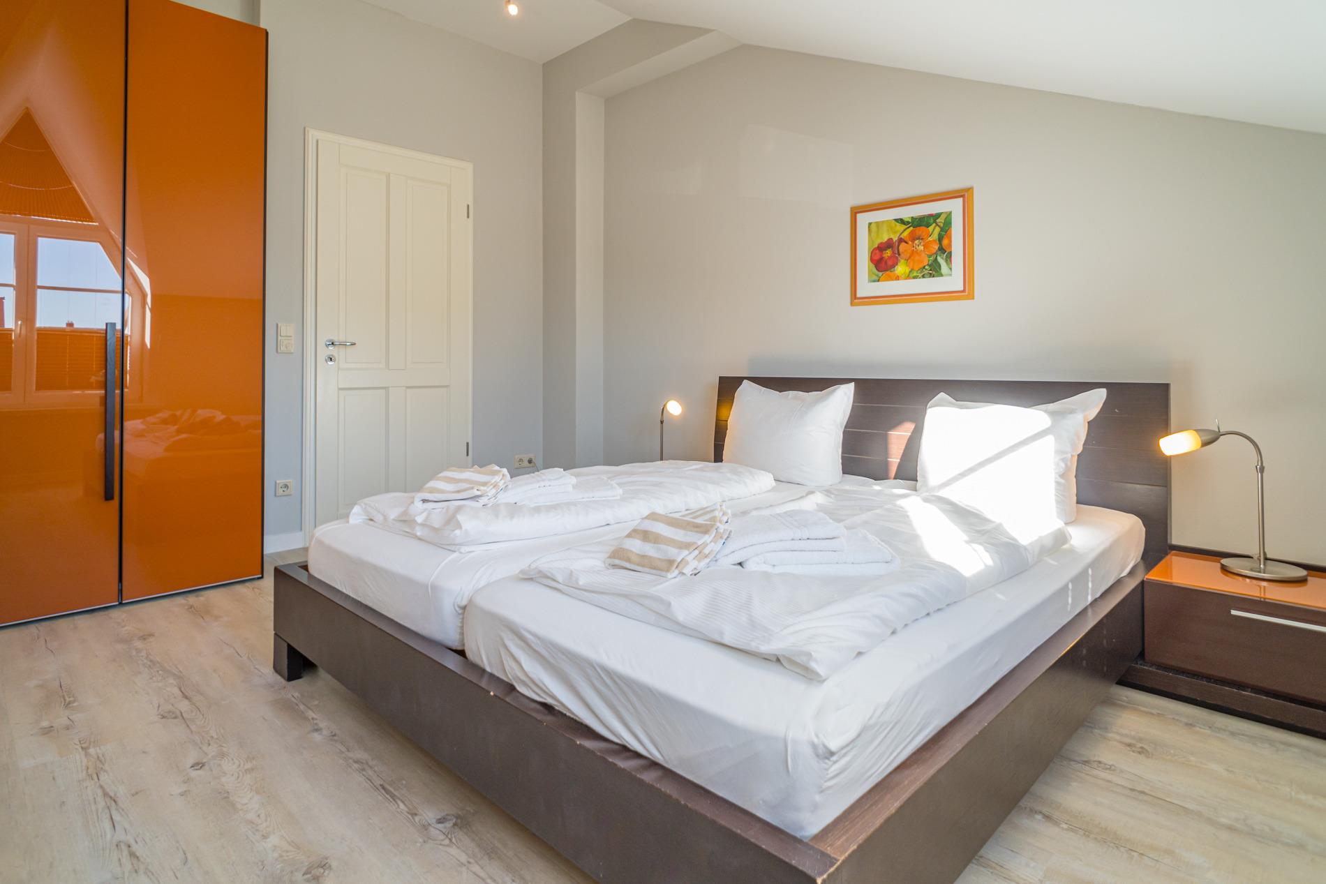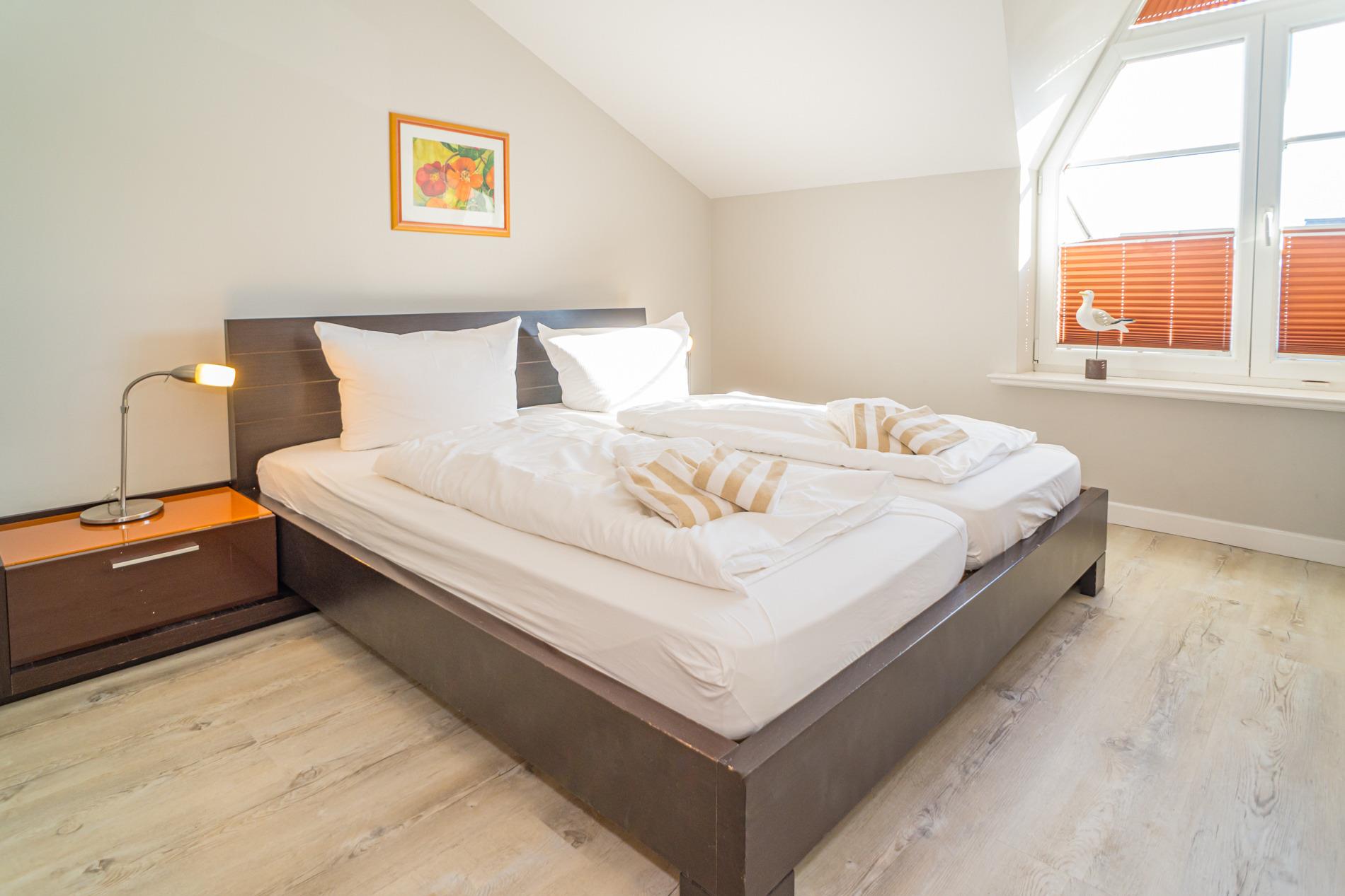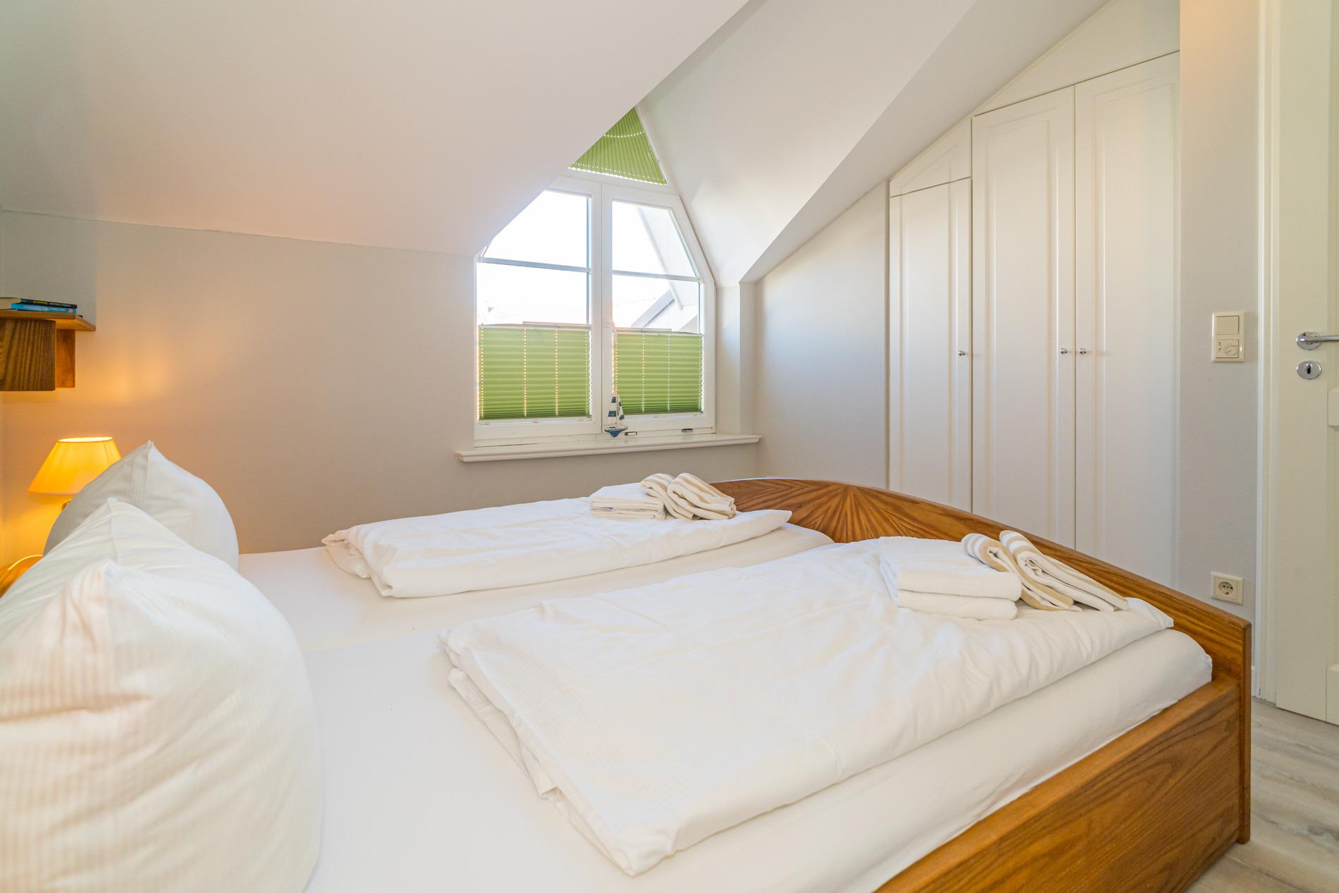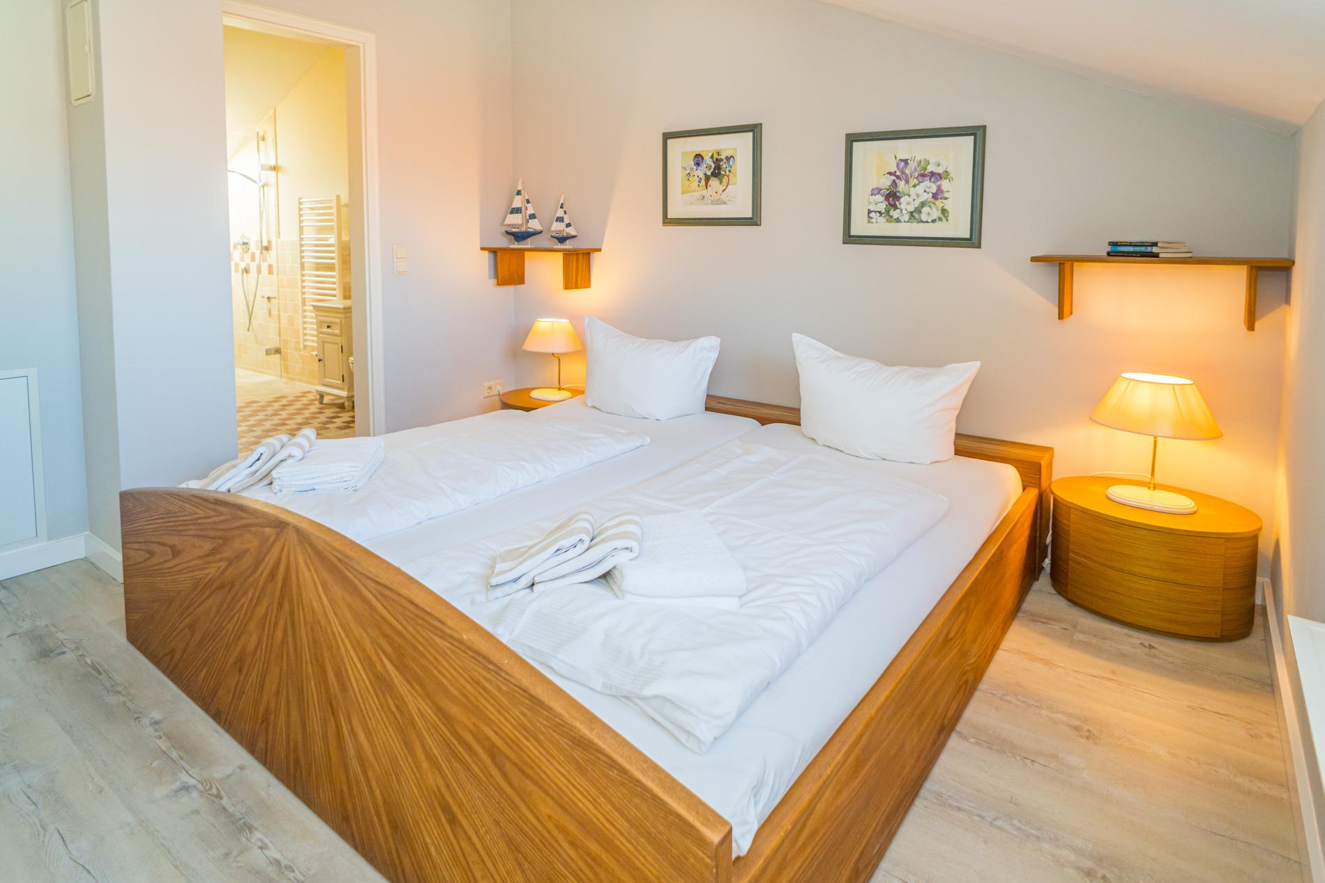 Es gibt zwei weitere geräumige Schlafzimmer, jeweils mit einem guten Doppelbett (0,90 x 2,00 m jeweils mit zwei Einzelmatratzen) und ein schickes Duschbad/WC mit Föhn. Eines der beiden Schlafzimmer ist zusätzlich mit einem Flachbildfernseher ausgestattet.