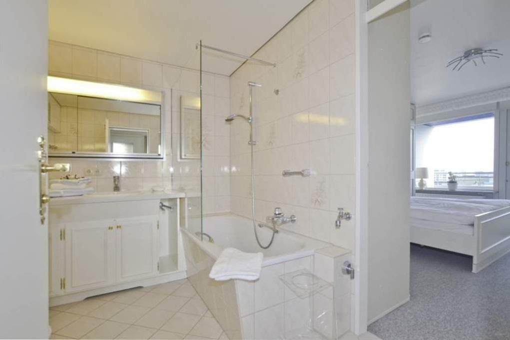 Das großzügige Bad bietet Wellness-Komfort auf hohem Niveau: Ein Doppelwaschtisch, eine Echtglas-Duschvorrichtung in der Badewanne, ein Bidet, ein Handtuchtrockner und ein Fön stehen Ihnen zur Verfügung – geschmackvoll ausgestattet und durchdacht gestaltet.