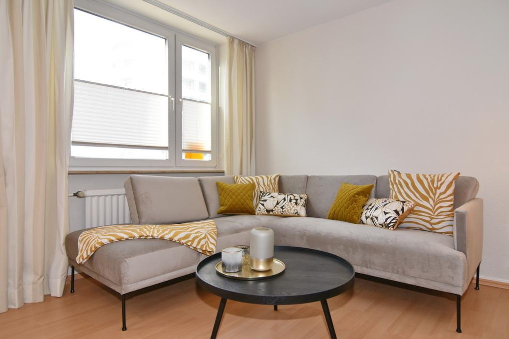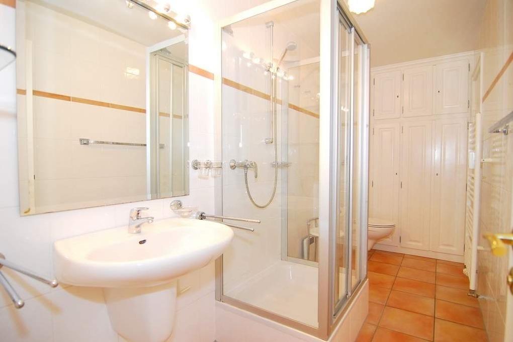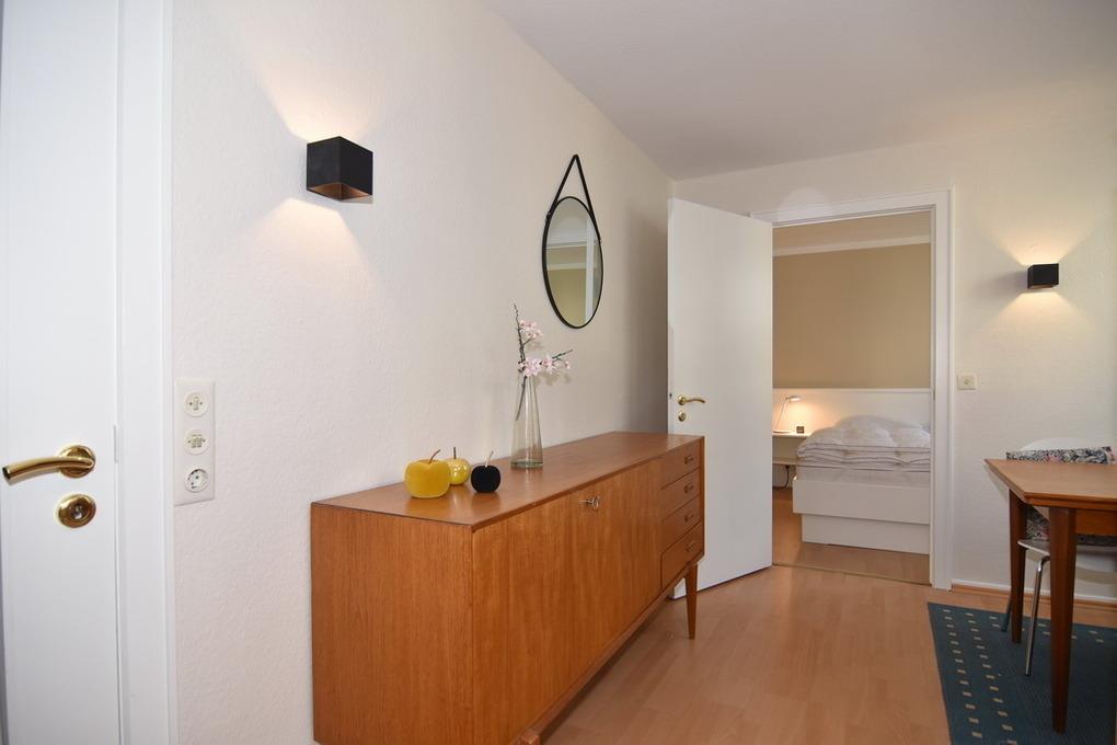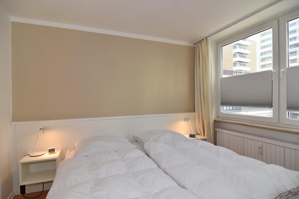 2-Zimmer-Ferienwohnung, ca. 40 qm im Kurzentrumbereich, 2. OG, Westlage ohne Balkon. Wohnzimmer mit Eckcouch, Eßplatz, TV, Radio mit CD Player, Schlafzimmer mit Doppelbett (1,80 x 2m, 2 Matratzen), begehbarer Kleiderschrank, Duschbad/ WC, separate Küche mit Microwelle und Geschirrspüler. Tierhaltung ist nicht gestattet. Apartment ist mit Laminat ausgelegt. Bettwäsche und Handtücher sind zur Anreise aufgezogen. Ein PKW-Stellplatz kann kostenpflichtig zugebucht werden. Fahrtsuhl vorhanden, der Eingangsbereich hat jedoch Stufen.