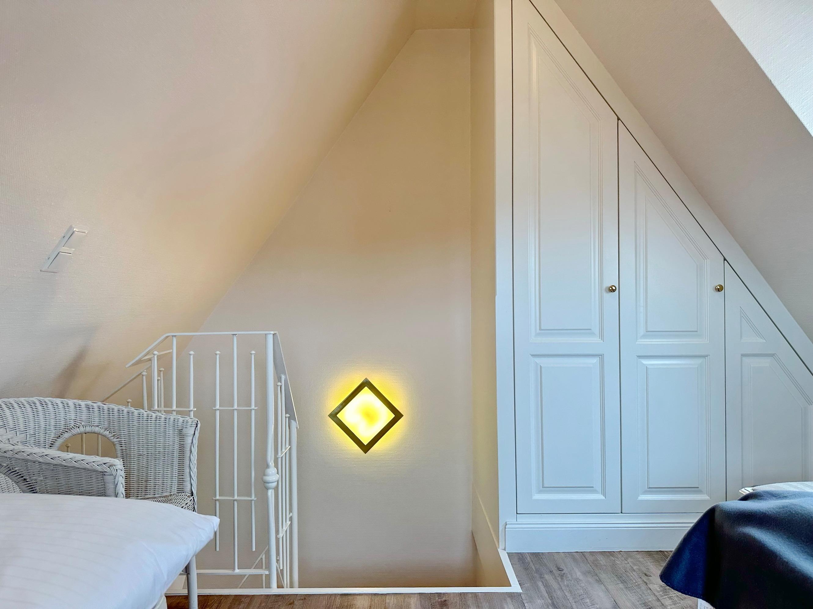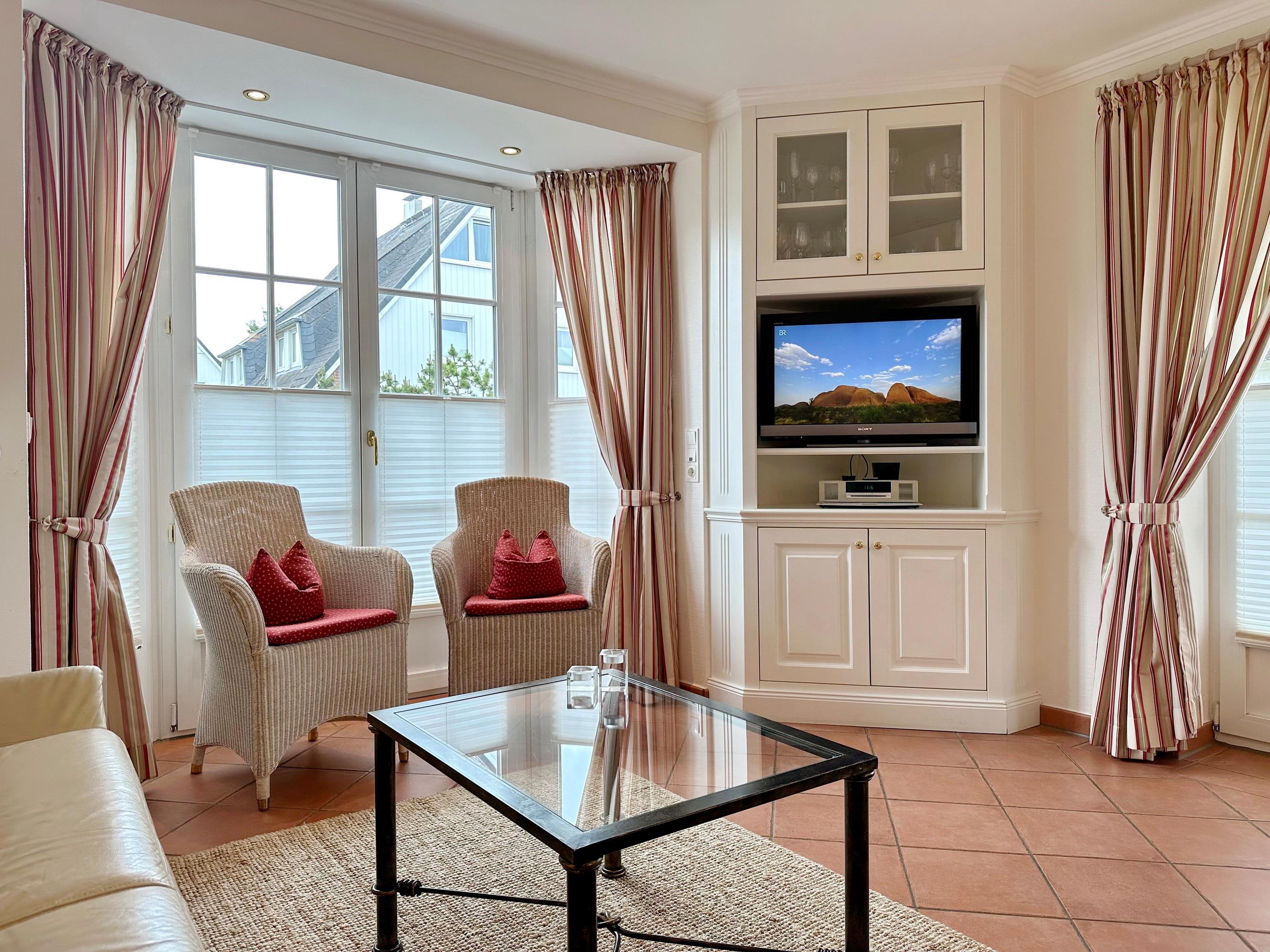 Das Endhauteil befindet sich in einer ruhigen Wohngegend im südlichen Teil von Westerland. Der Strand, die Nordsee und das Südwäldchen liegen in unmittelbarer Nähe und auch die Innenstadt von Westerland ist bequem zu Fuß erreichbar. Das Haus besteht aus einem Erdgeschoss, einem Obergeschoss und einem Dachgeschoss. Im Erdgeschoss befinden sich ein gemütliches Wohn- und Esszimmer mit einer Couchecke und einem Essplatz für 4 Personen, eine offene Küche, ein kleiner Flur und ein Gäste-WC. Die Küche ist mit einem Backofen, einer Mikrowelle, einem 4-Plattenkochfeld und einem Geschirrspüler ausgestattet. Auf der geschützten Südterrasse steht Mobiliar zur Verfügung und zwischen April und Oktober kann ein Strandkorb genutzt werden. Vom Wohnzimmer aus gelangt man ins Obergeschoss, wo sich das Schlafzimmer mit einem Doppelbett, Einbauschränken und einem weiteren Fernseher befindet. Außerdem gibt es hier einen sonnigen Westbalkon. Im Obergeschoss befindet sich auch das große Badezimmer mit Wanne, Dusche und WC. Im Dachgeschoss gibt es ein weiteres Schlafzimmer mit zwei Einzelbetten und Einbauschränken. Vor dem Haus gibt es einen Parkplatz und es ist gestattet, einen gut erzogenen Hund gegen eine Anmeldegebühr von 15€ pro Tag mitzubringen. Das Rauchen ist im Haus nicht gestattet. Bettwäsche und Handtücher sind zur Anreise aufgezogen.