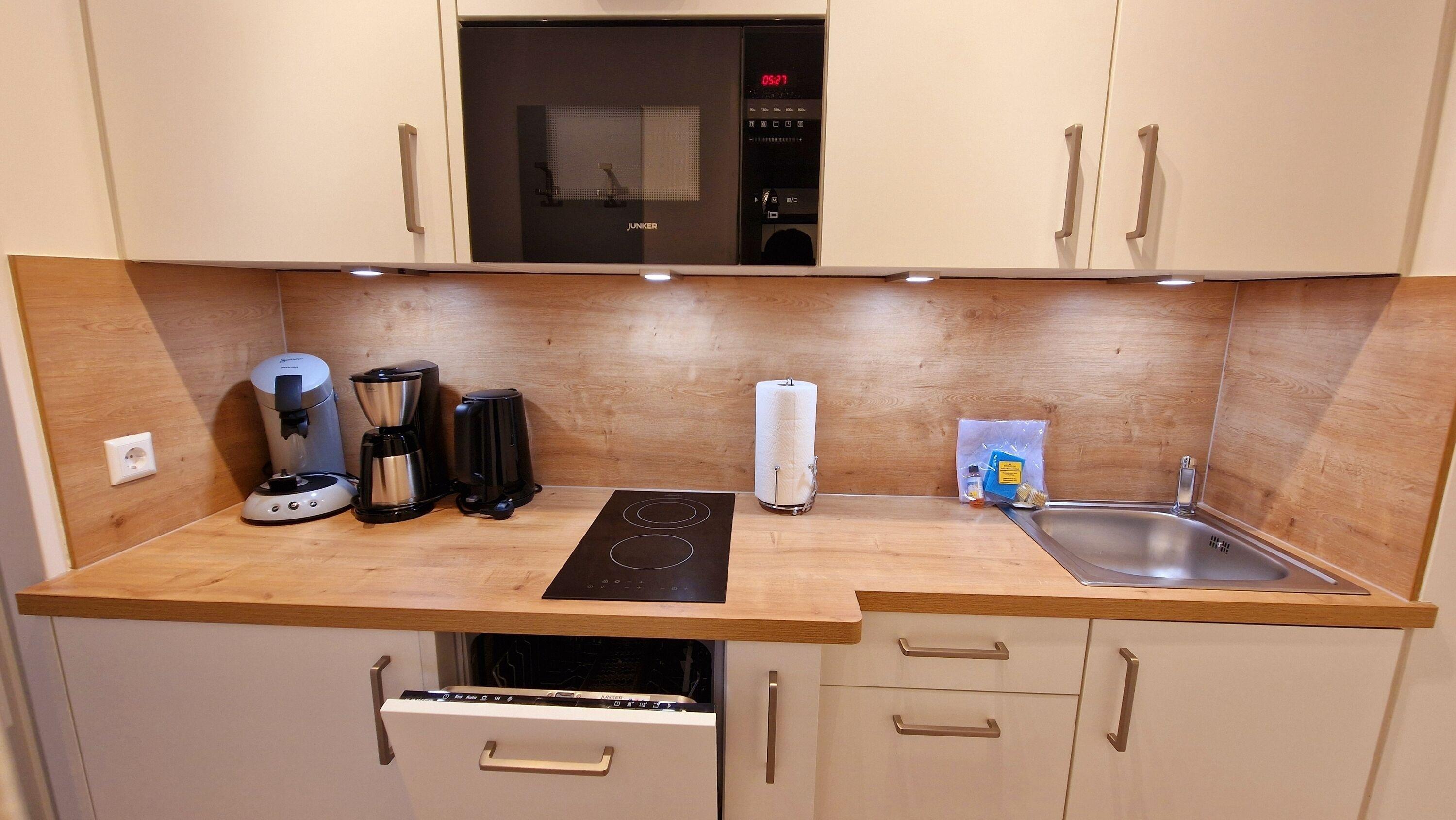 1-Zimmer-Apartment mit freiem Seeblick im 7. OG des Haus "Metropol", ca. 25 m². Kombinierter Wohn- und Schlafraum mit festem Doppelbett (140x200. 75cm Höhe), 2er-Sofa mit elektronischer Liegefunktion, Esstisch mit gemütlichen Stühlen, Smart-TV (freie Mediathek und Netflix (mit eigenem Account)), Festnetzanschluss, wohnungseigenes WLAN und möblierten Westbalkon. Hübsche Küchenzeile mit Geschirrspüler, Mikrowelle, 2er-Cerankochfeld und extra Senseo Kaffeemaschine . Schickes Duschbad mit WC. Tierhaltung und Rauchen ist in der Wohnung ist nicht gestattet. Bettwäsche und Handtücher sind zur Anreise aufgezogen. Ein PKW-Stellplatz kann kostenpflichtig zugebucht werden.