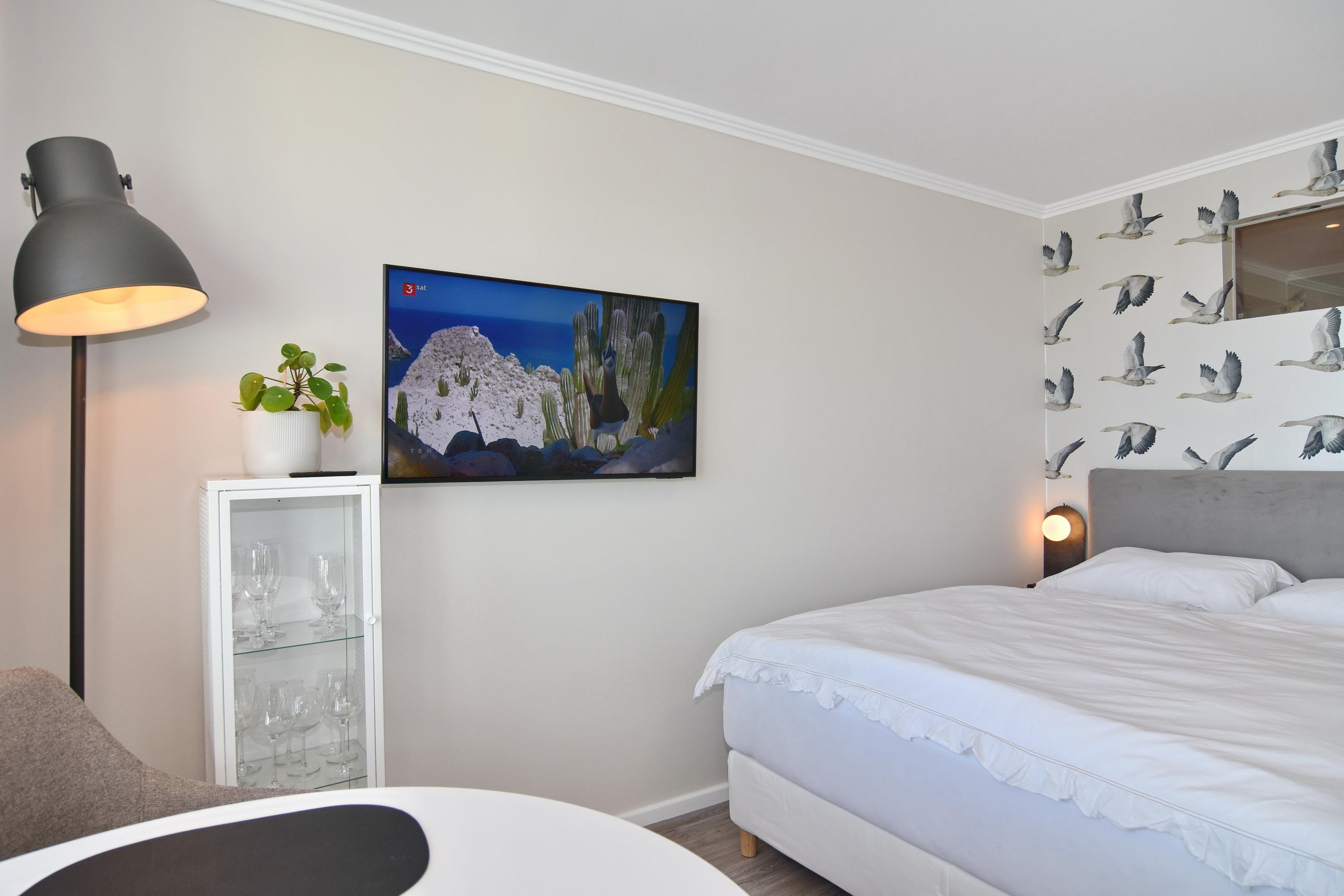 Exklusives 1-Zimmer-Apartment, ca. 30qm, im 10. OG zur Landseite im Haus Metropol. Kombinierter Wohn-/Schlafraum mit Doppelbett (160x200), Sofa, Essplatz am Fenster, großer TV, Einbauschränke. Ostbalkon mit Balkonmöbeln. Küchenzeile im Flurbereich mit 2-Platten-Ceranherd, Geschirrspüler, Kühlschrank mit Gefrierfach. Duschbad-WC. Nichtraucher-Wohnung. Tierhaltung ist nicht gestattet. Bettwäsche und Handtücher sind zur Anreise aufgezogen. Ein PKW-Stellplatz kann kostenpflichtig zugebucht werden.