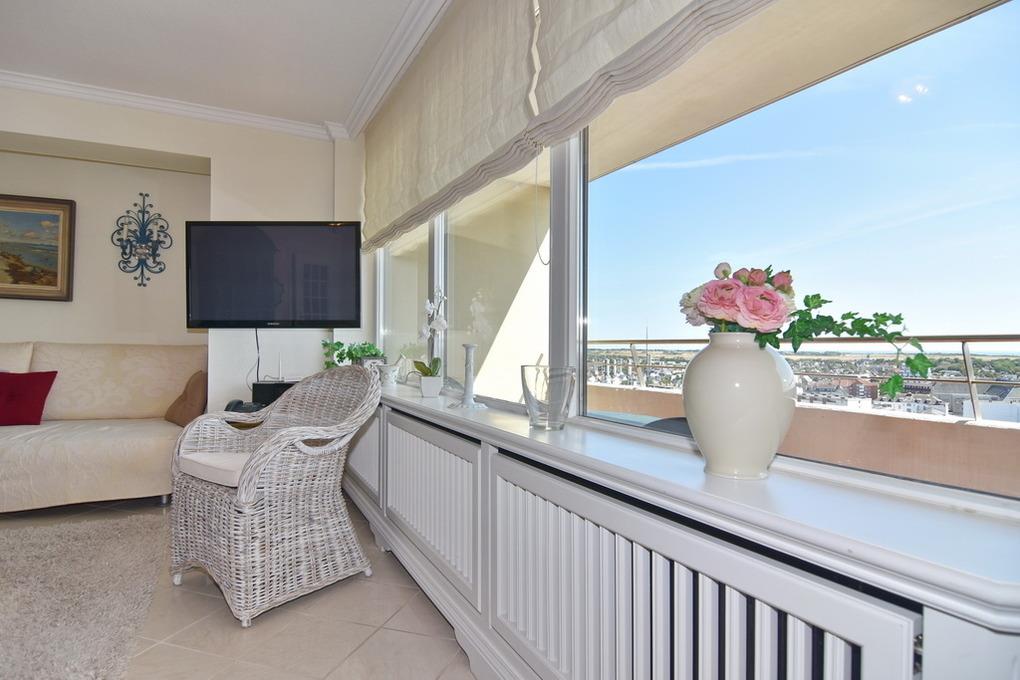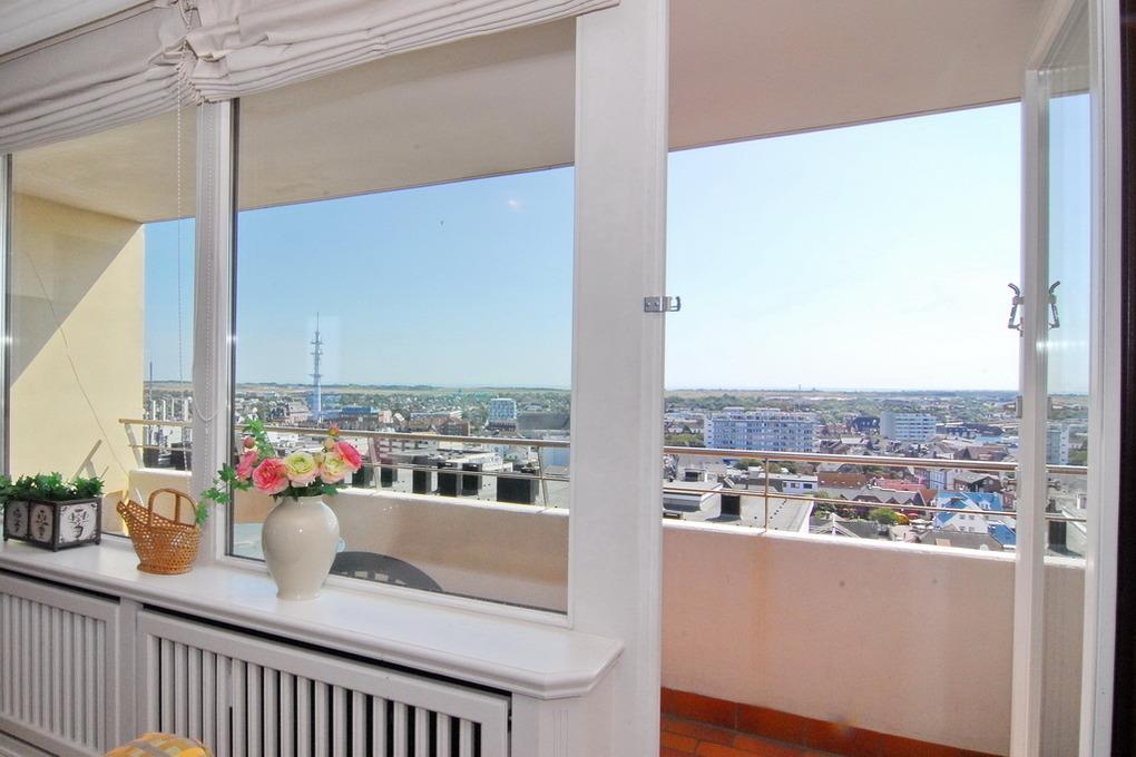 Gepflegte 2-Zimmer-Ferienwohnung im Haus "Metropol", 11.OG, Nord-Ost-Ecke. Wohnraum mit Couch, Sessel und Schlafsofa, Kabel-TV, Radio, Telefon, WLAN (ohne Gewähr), Eßplatz, Nordbalkon mit Meeresblick und Ostbalkon mit Blick über die Insel, Küchenecke mit Geschirrspüler und Mikrowelle, Schlafzimmer mit Doppelbett (2x90x200) und Ostbalkon, Duschbad/WC. Das Apartment ist gefliest, Rauchen und Tierhaltung ist nicht gestattet.PKW-Stellplatz/Garage kann kostenpflichtig gebucht werden. Bettwäsche und Handtücher sind zur Anreise aufgezogen.