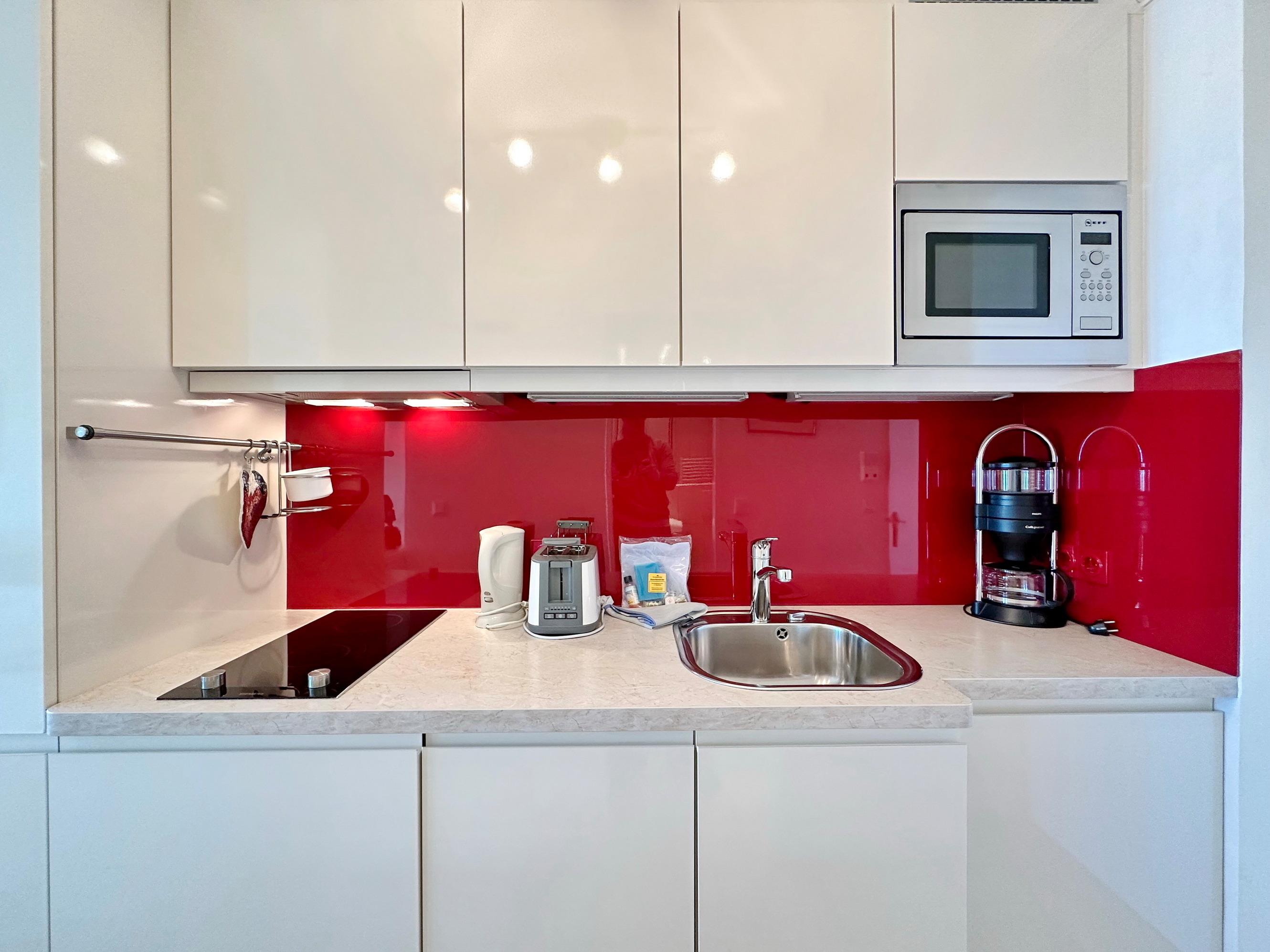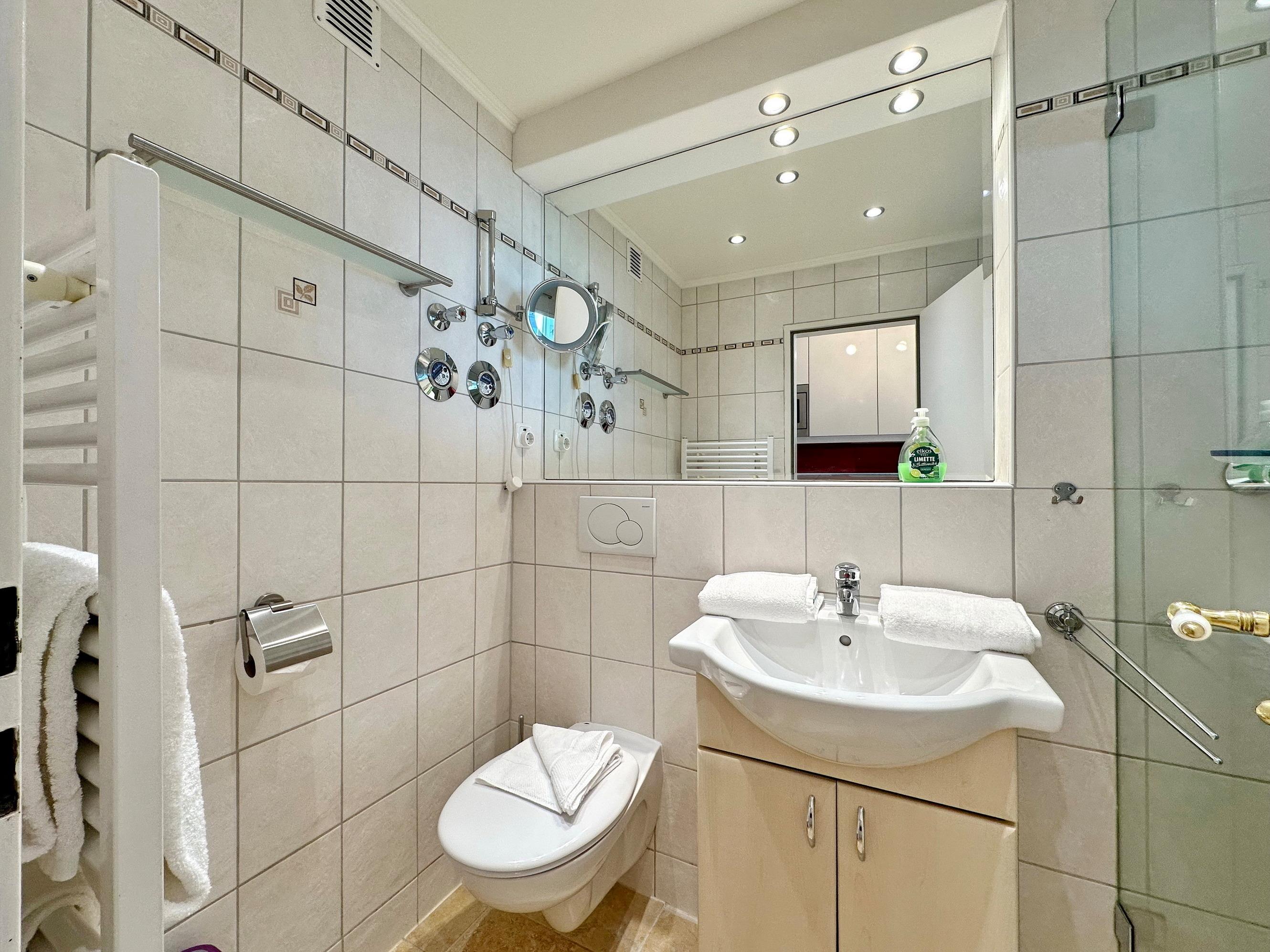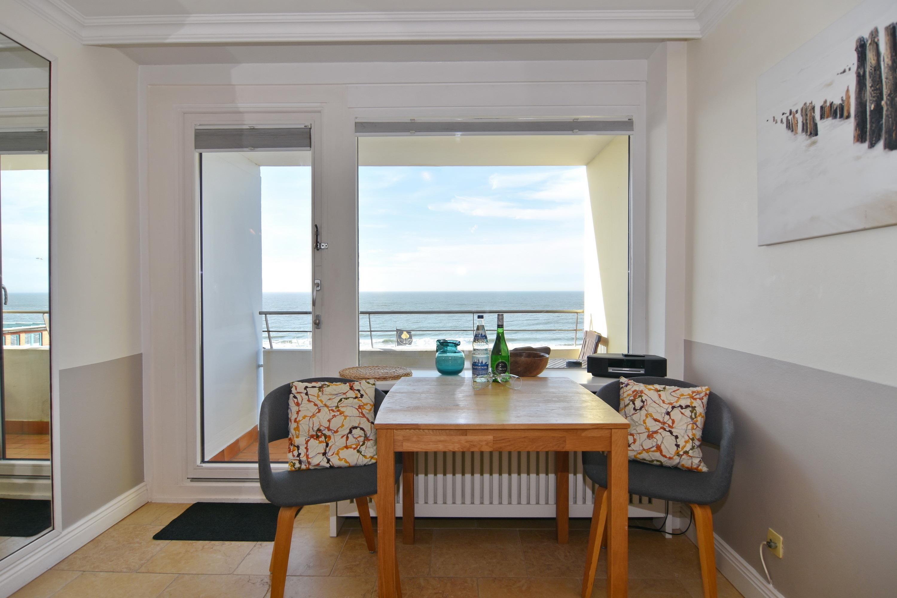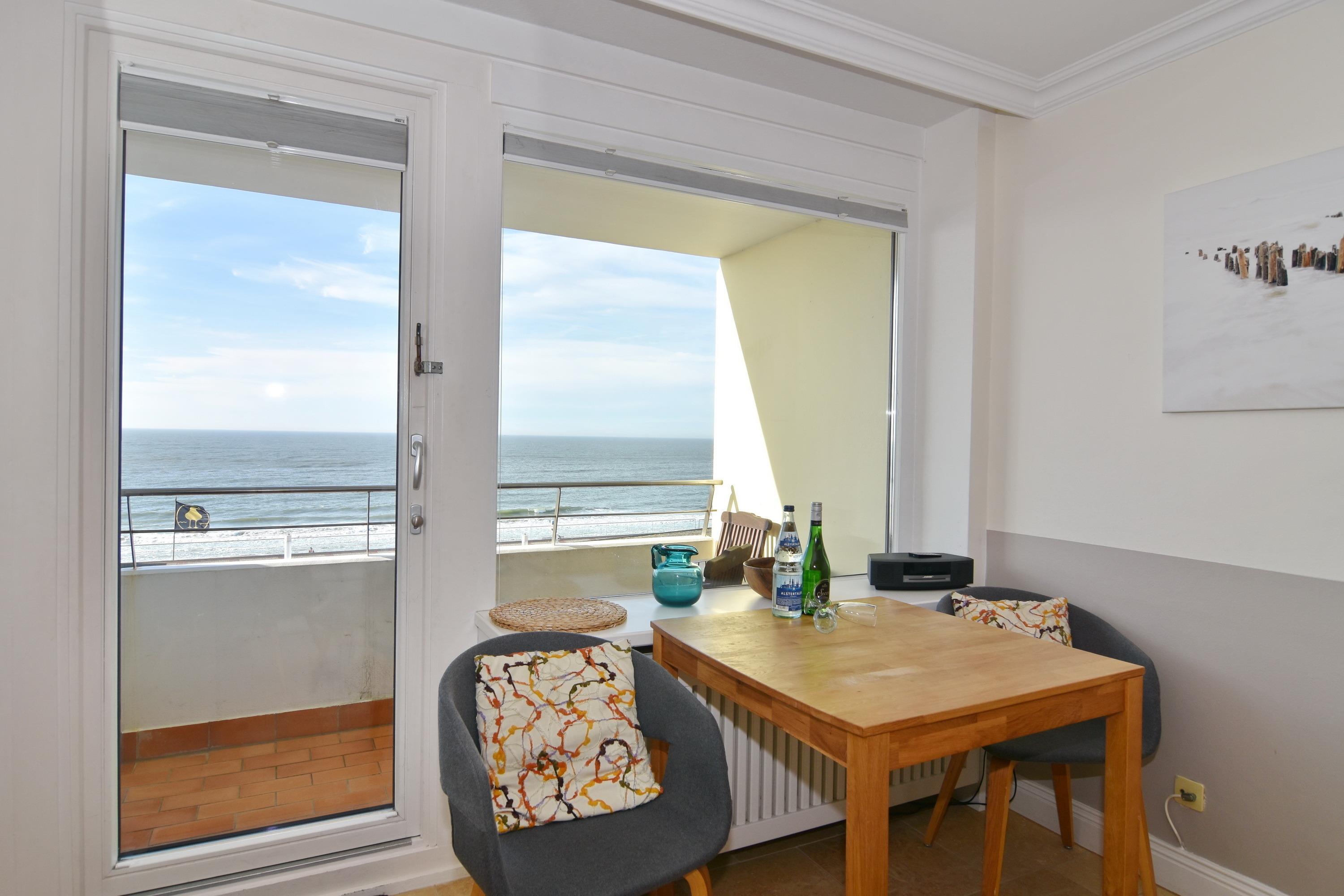 Moderne 1-Zimmer-Ferienwohnung, 1.OG,[nbsp][nbsp]ca. 25 qm im" Haus Metropol" Nichtraucher-Whg! Wohn-/Schlafraum mit Podestdoppelbett (160x200), Essplatz am Fenster mit Blick auf das Meer, 2 Sessel, Flat-TV, Stereoanlage, W-Lan (ohne Gewähr), Westbalkon mit Meeresblick, neue Küchenzeile mit Mikrowelle und Geschirrspüler, Duschbad/WC. Das Appartement ist mit Marmorfliesen ausgelegt. Tierhaltung ist nicht gestattet. Bettwäsche und Handtücher sind zur Anreise aufgezogen. Ein PKW-Stellplatz kann kostenpflichtig zugebucht werden.