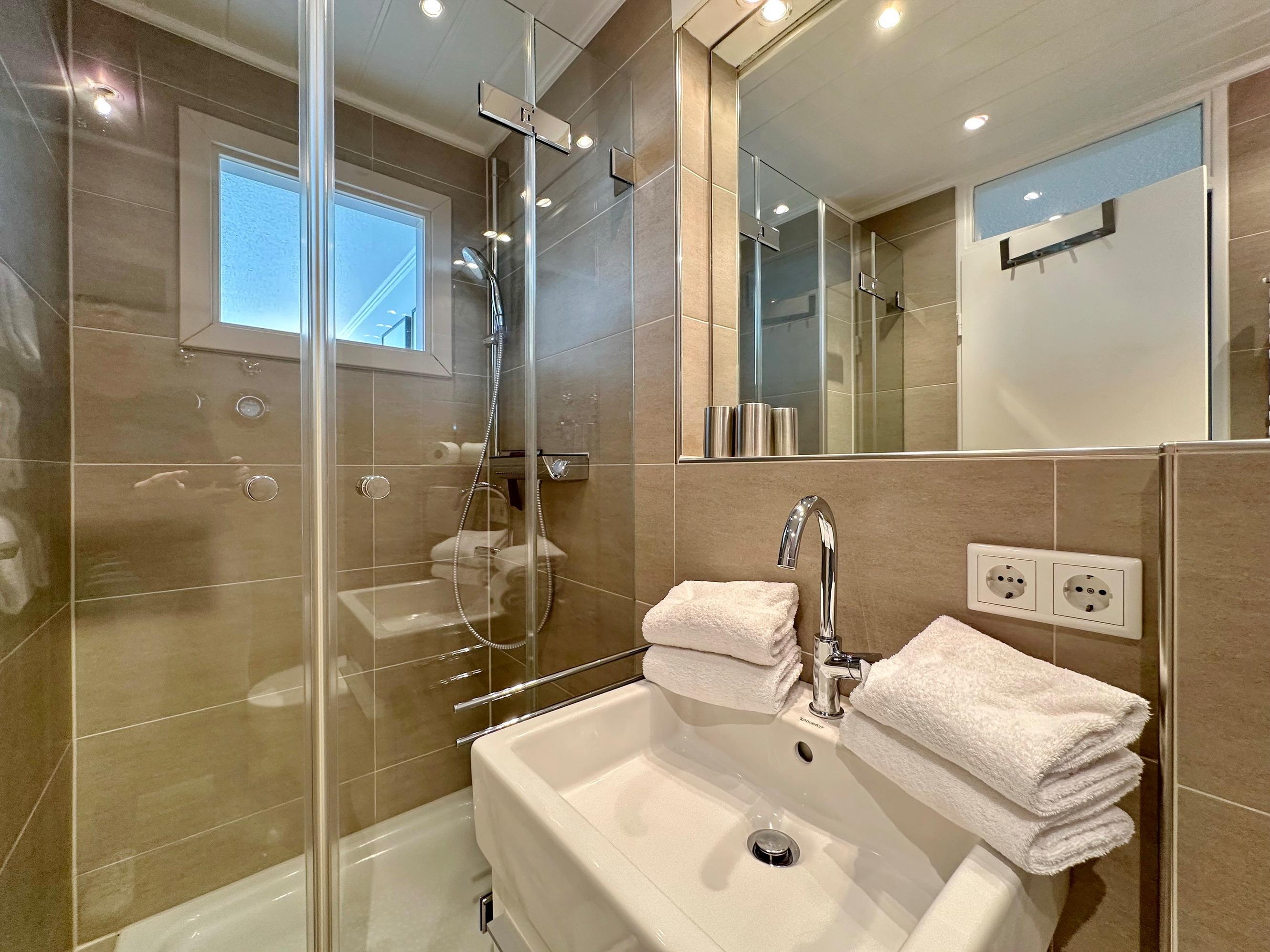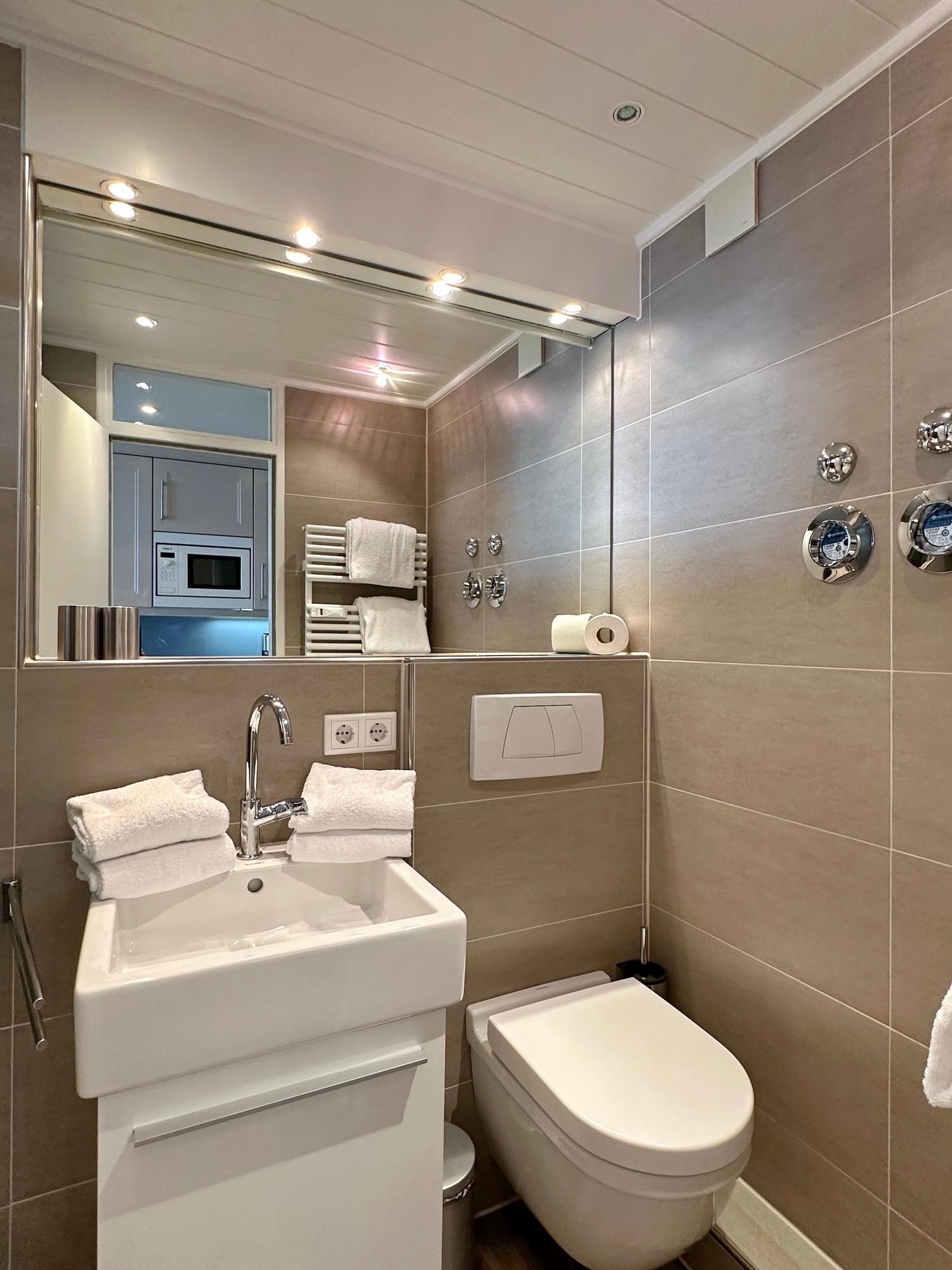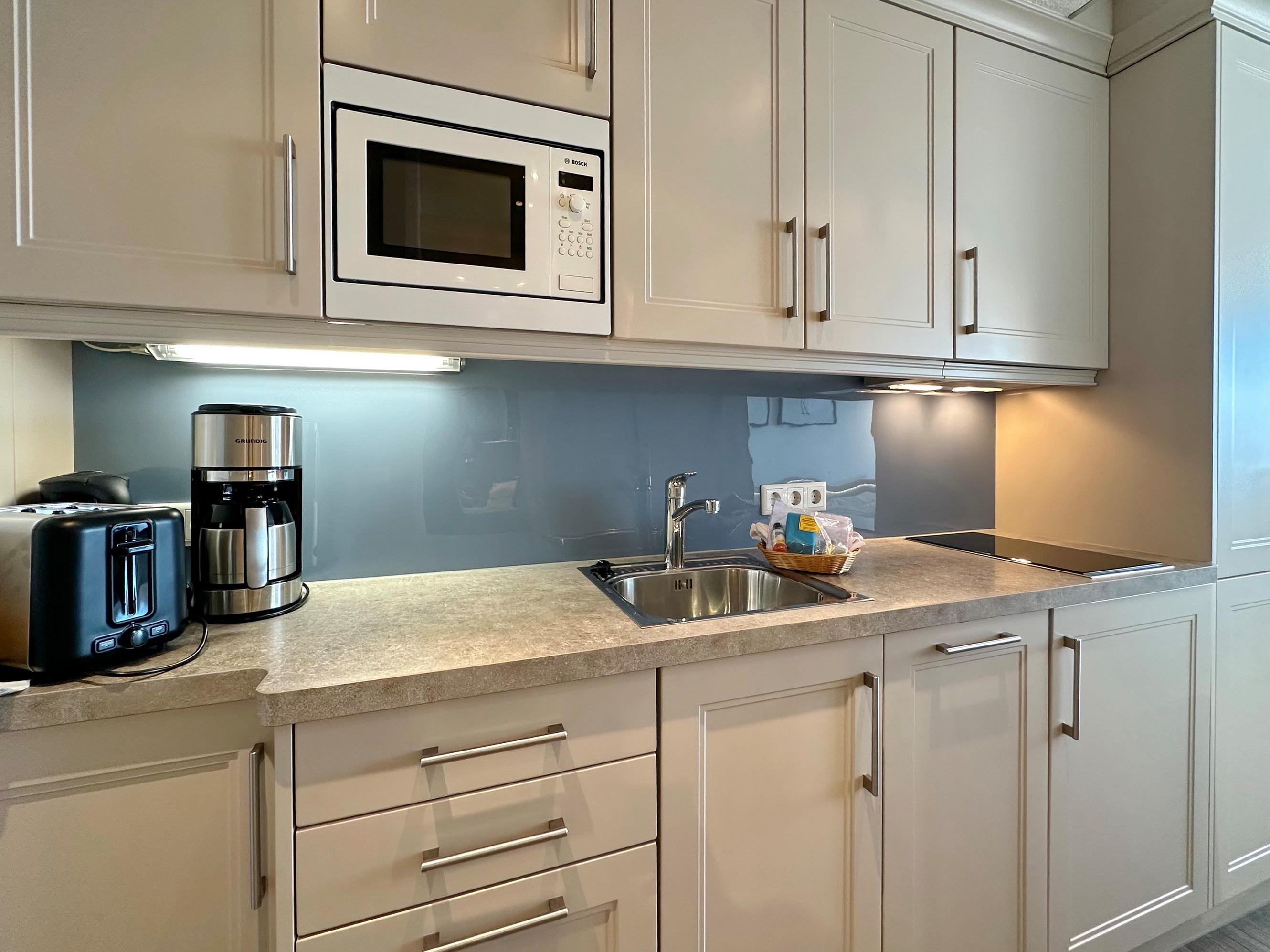 Exklusive 1-Zimmer-Ferienwohnung mit unverbauten Seeblick im 3. Obergeschoß des Haus "Metropol". Ca. 25m². Hübsches Wohn- und Schlafzimmer mit Doppelbett (1,40x2m). Essplatz für 2 Personen am Fenster (Achtung Stufe), Couch, Flachbild-TV, Stereoanlage mit CD. W-Lan (ohne Gewähr). Hübsche Küchenzeile mit Geschirrspüler, Mikrowelle und Cerankochfeld. Schickes Duschbad/WC. Nichtraucherwohnung. Tierhaltung ist nicht gestattet. Bettwäsche und Handtücher sind zur Anreise aufgezogen. Ein PKW-Stellplatz kann kostenpflichtig zugebucht werden.