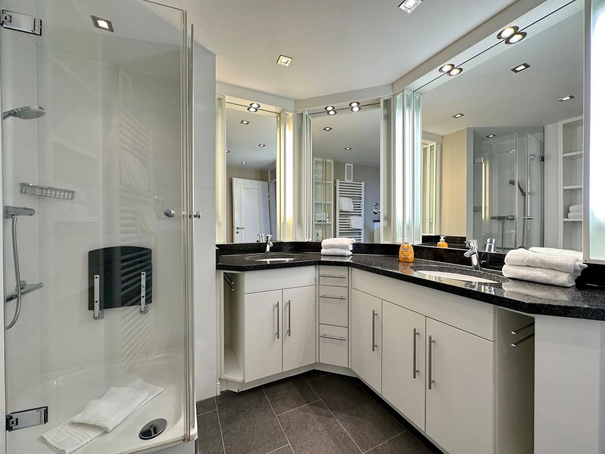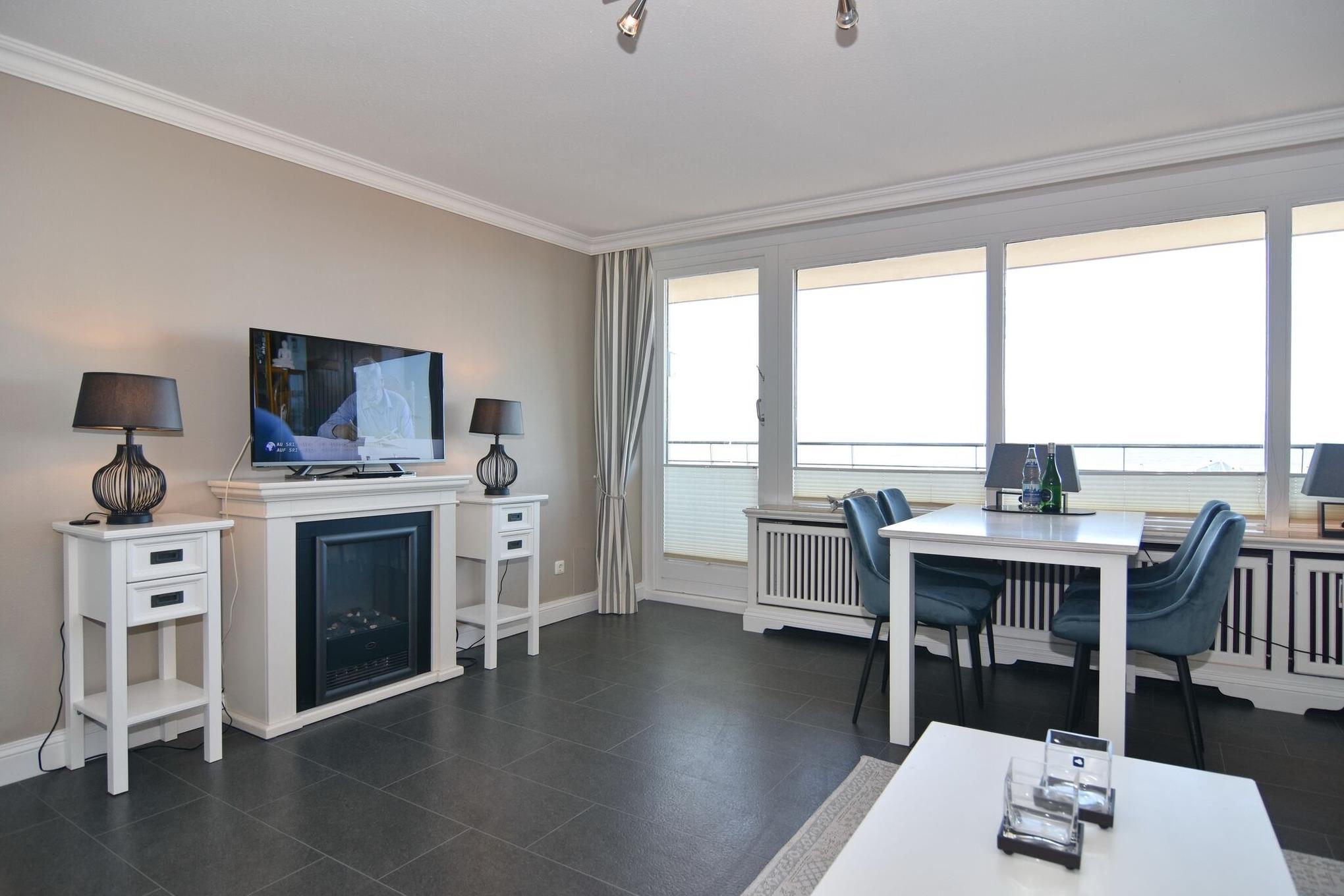 Ansprechende 2-Zimmer-Ferienwohnung mit Seeblick im "Haus Sylter Welle". Ca. 70m², 3.OG. Nichtraucher-Whg.! Tierhaltung verboten. Großes Wohnzimmer mit elektrischem Kamin und Flat-TV, W-Lan (ohne Gewähr), Schlafcouch und Sessel, Essplatz am Fenster, offene Küche mit Backofen, Mikrowelle und Geschirrspüler, separates Schlafzimmer mit Doppelbett (2x90x200) und Flat-TV, 2 Bäder mit Dusche und Waschtisch, 2 Westbalkone mit Balkonmöbeln, Garderobe. PKW-Stellplatz/Garage kann kostenpflichtig gebucht werden. Bettwäsche und Handtücher sind zur Anreise aufgezogen.