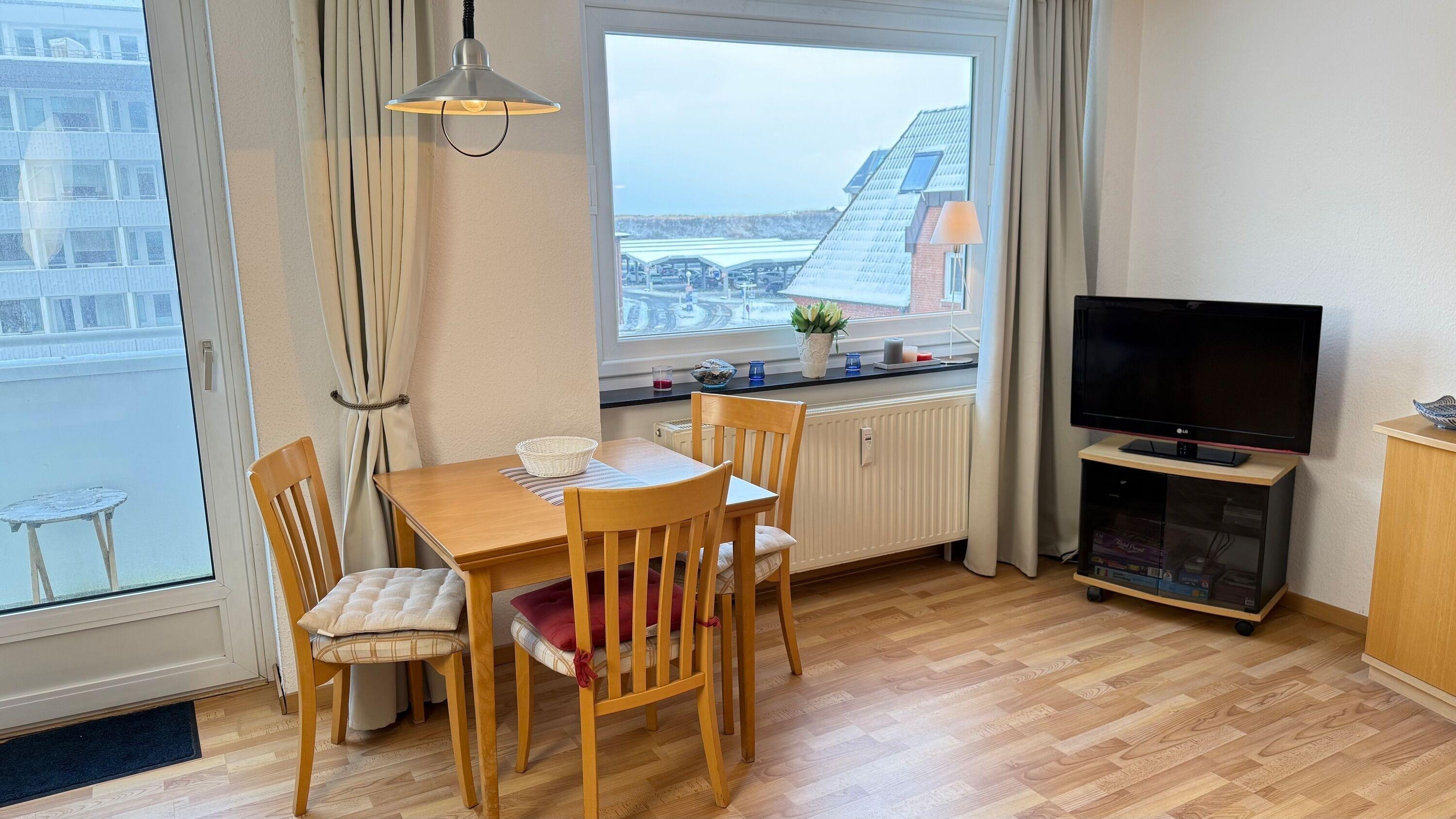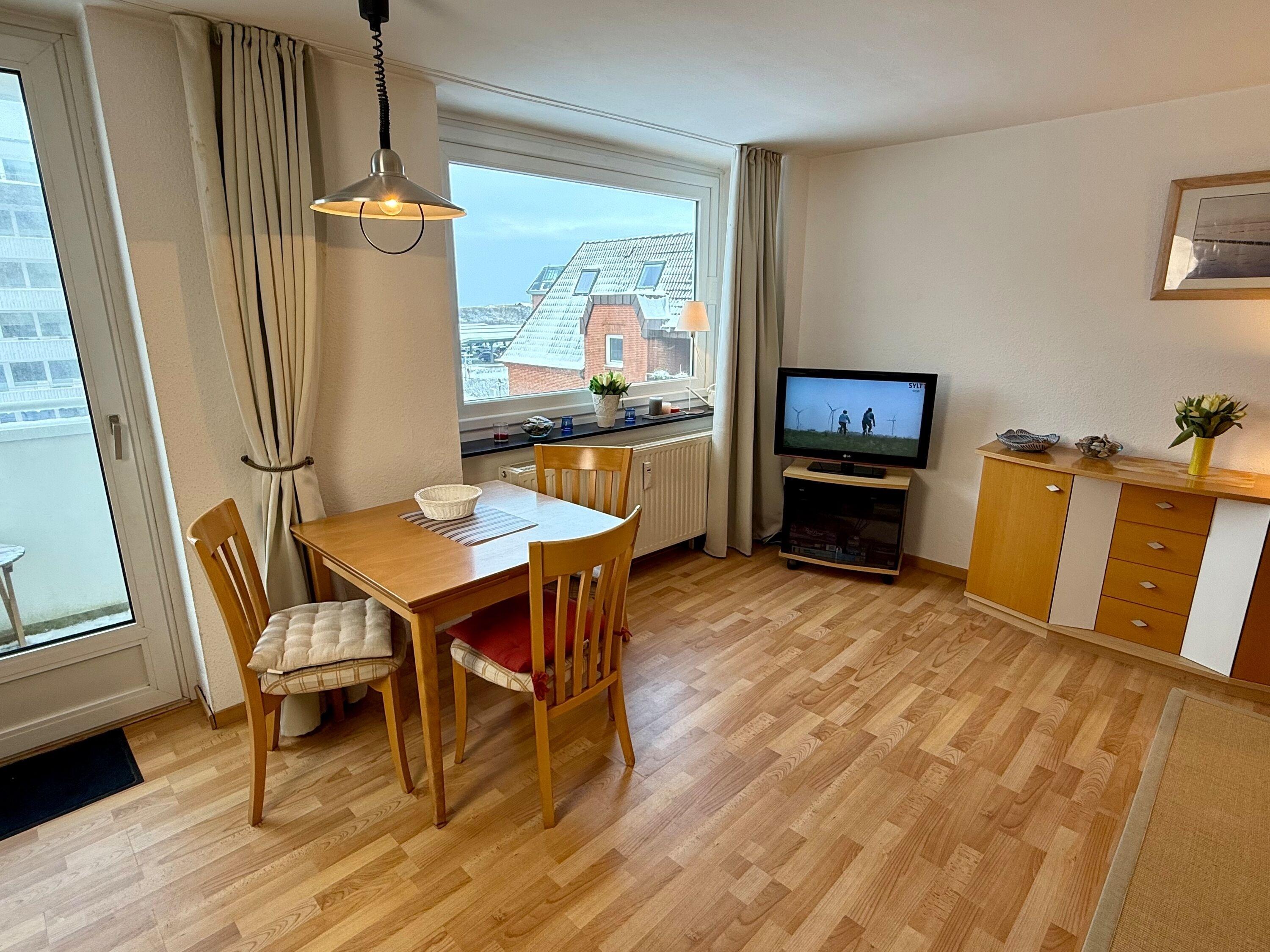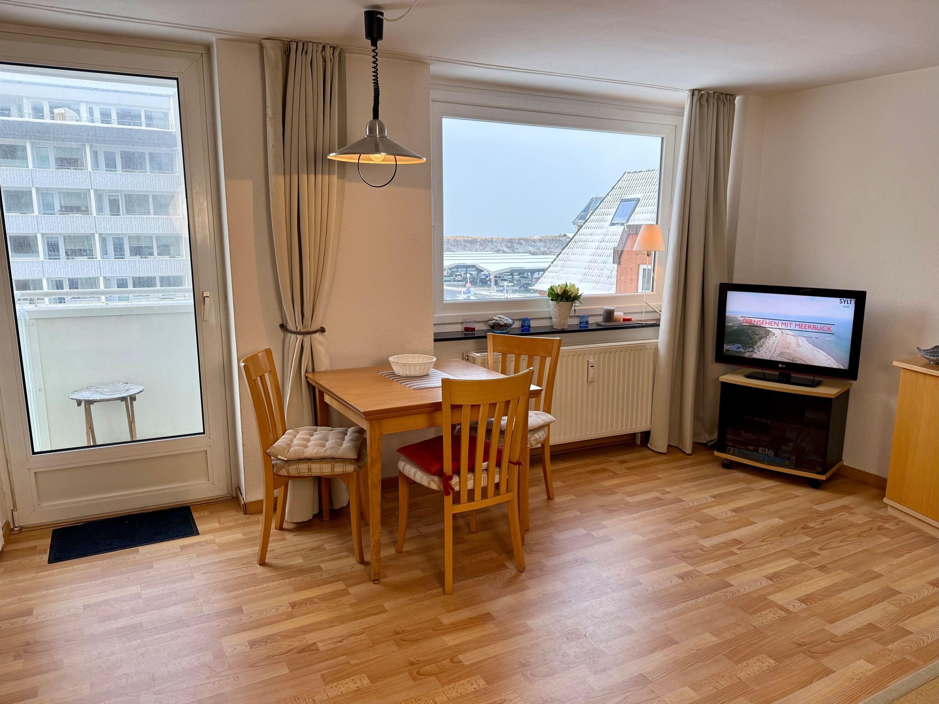 Diese gemütliche 1-Zimmer-Nichtraucher-Ferienwohnung (ca. 40?m²) befindet sich in der 3. Etage des Hauses Sylter Residenz – mit Westbalkon und einem kleinen Meerblick.