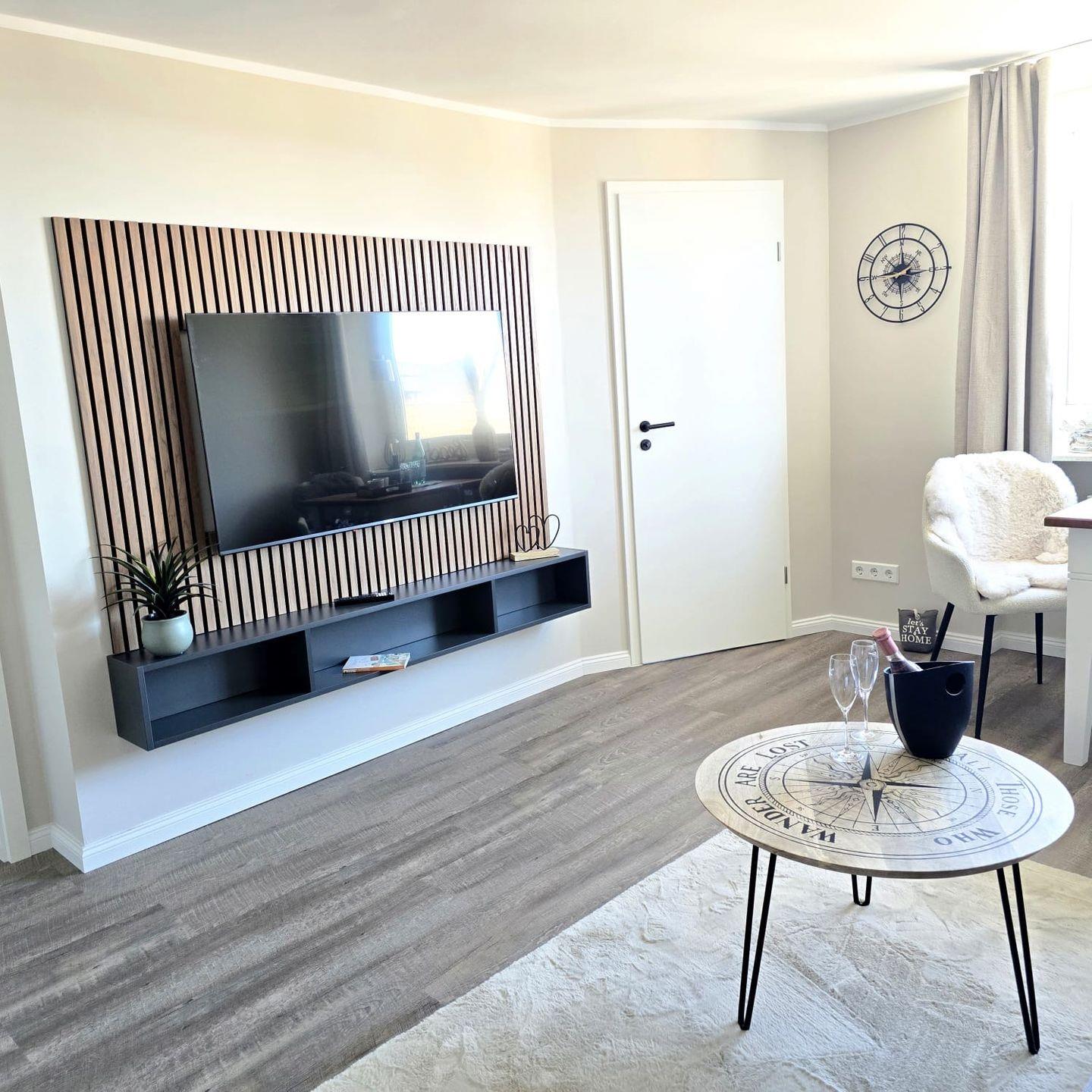 Im Wohnbereich erwarten Sie ein Sofa, ein Essbereich mit Esstisch sowie insgesamt 2 TVs, ergänzt durch HiFi-Anlage. WLAN/Internet steht zur Verfügung. Für angenehme Privatsphäre sind alle Fenster mit Sichtschutz ausgestattet. Vom Balkon genießen Sie einen Meerblick; Gartenmöbel sind vorhanden, sodass Sie den Außenbereich bequem nutzen können.