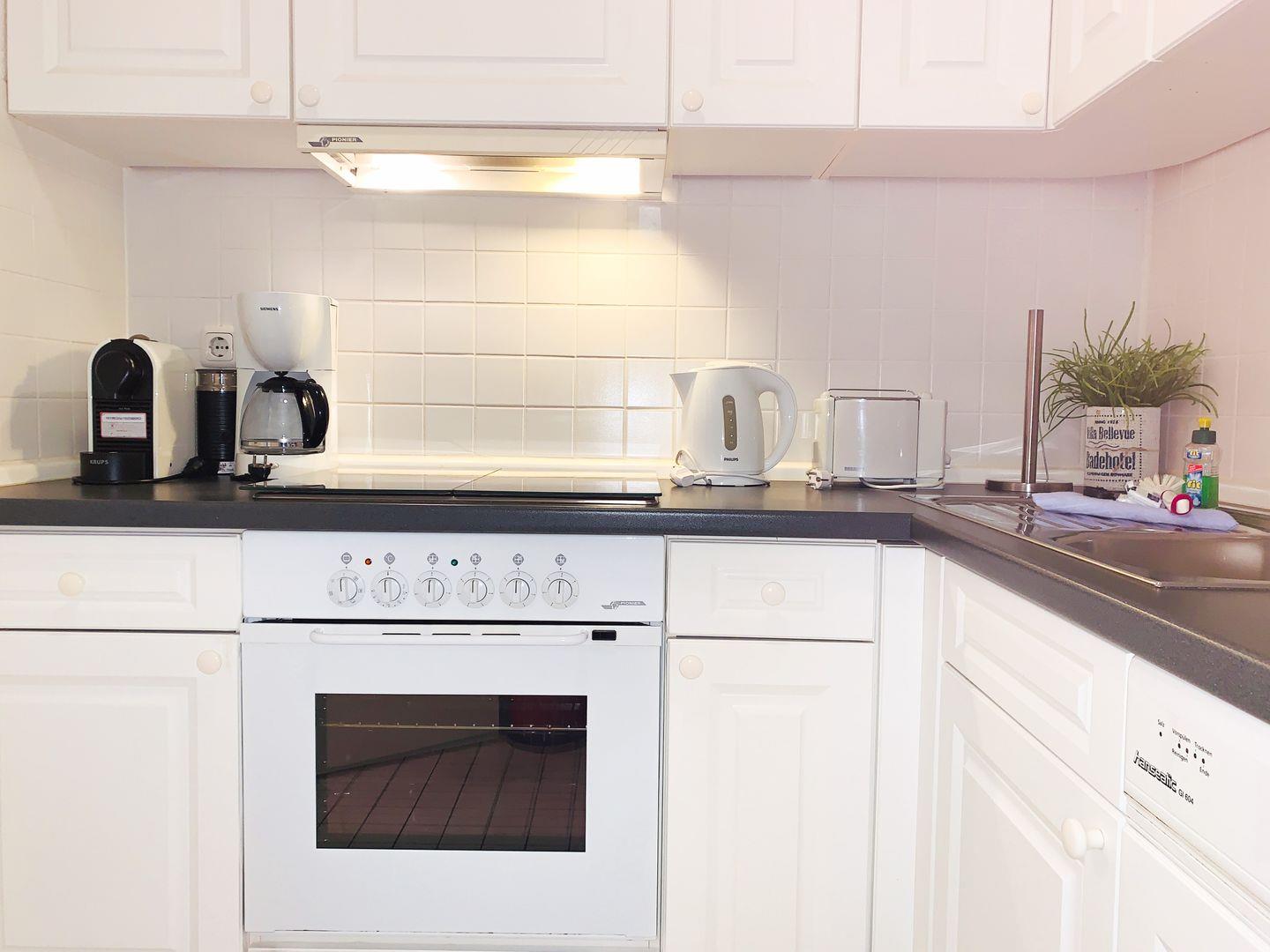 einem Doppelbett, ein Gäste-WC, Küche mit Backofen und Geschirrspüler,