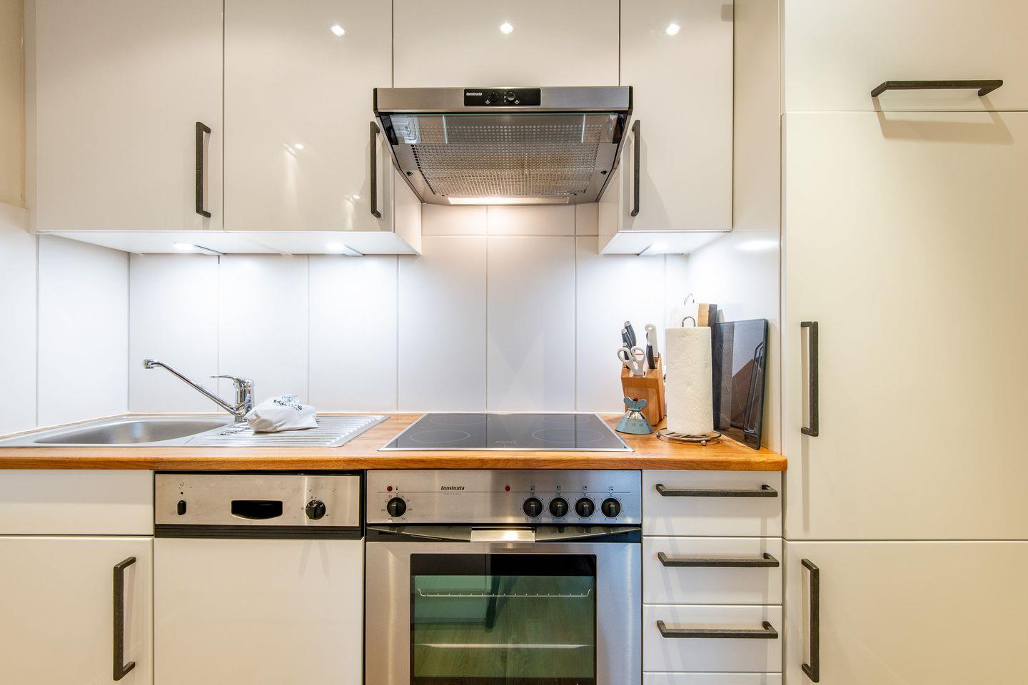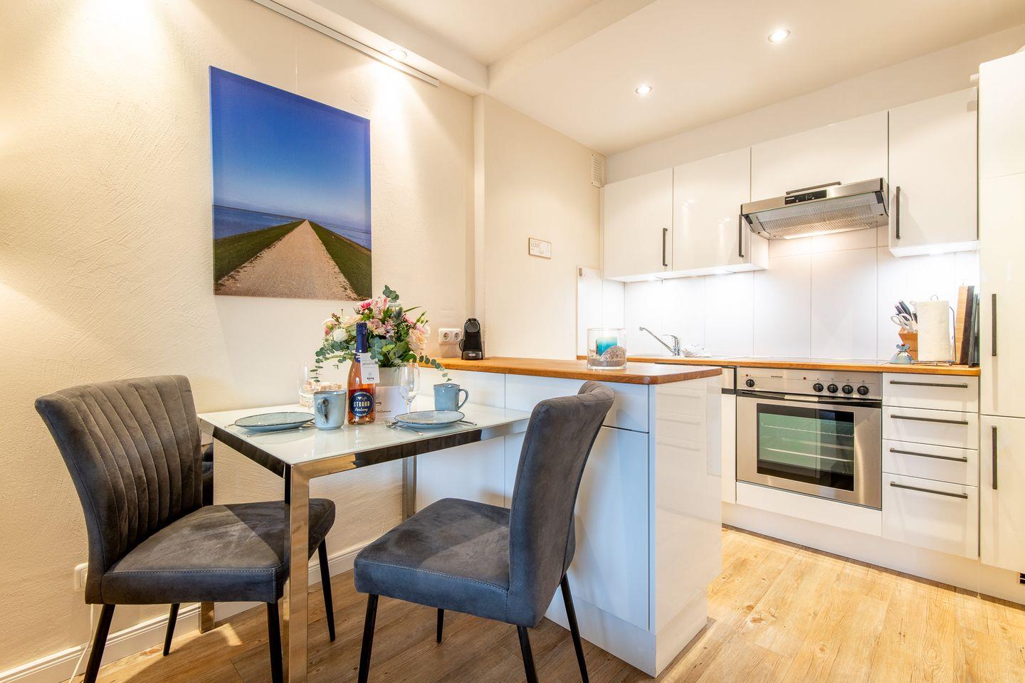 Die offene Küche ist modern ausgestattet und bietet neben einem Geschirrspüler und einer Nespressomaschine alles, was Sie für eine entspannte Selbstverpflegung benötigen.