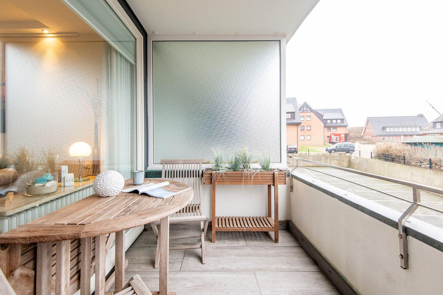 Wohn/Schlafzimmer mit Schrankbett, 1 Badezimmer mit Dusche, offene Küche zum Wohn/Essbereich, Balkon nach Norden, Waschmaschine und Trockner zur gemeinschaftlichen Nutzung (gegen Gebühr), PKW-Stellplatz nach Verfügbarkeit, WLAN (ohne Gewähr) vorhanden, Saisonstrandkorb (April-Oktober) am Strand inklusive, Haustiere nicht gestattet.