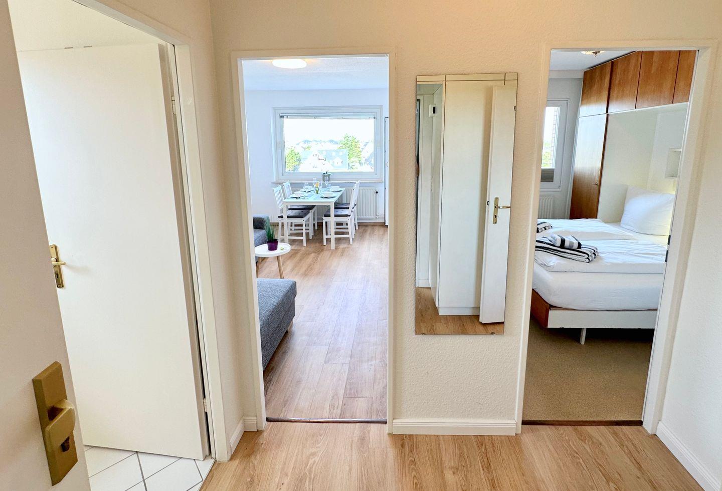 Das Apartment 16-A255 in Westerland bietet auf 35 m² ein Schlafzimmer, einen gemütlichen Wohnbereich mit Balkon sowie eine voll ausgestattete, geschlossene Küche. Zur Ausstattung zählen kostenfreies WLAN, TV, Vinylboden, Aufzug und ein kostenloser Privatparkplatz. Haustiere sind nach Absprache willkommen. Ideal für bis zu vier Personen.