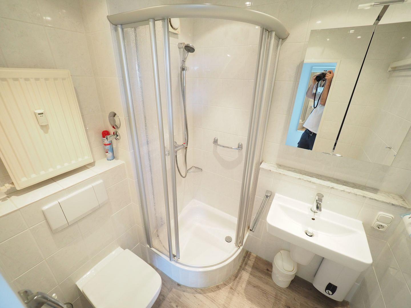 frischen Start in den Tag. Badezimmer: Ein modernes Duschbad mit WC sorgt für