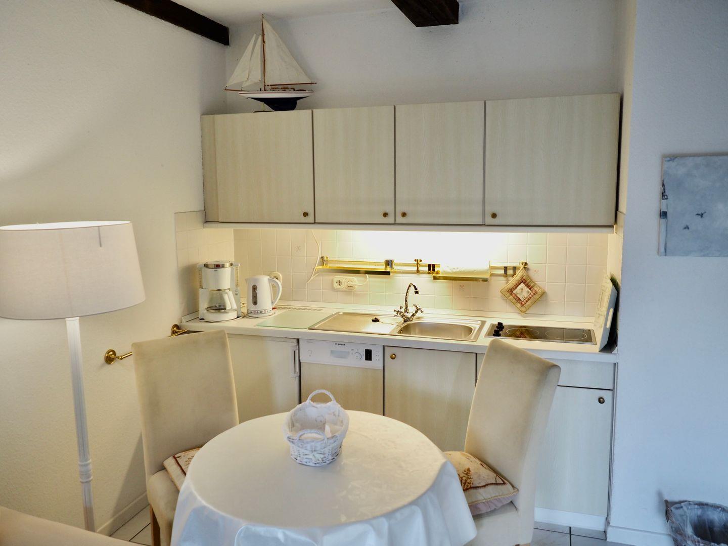Wohlbefinden. Die Küche ist mit einer Spülmaschine, einem geräuscharmen