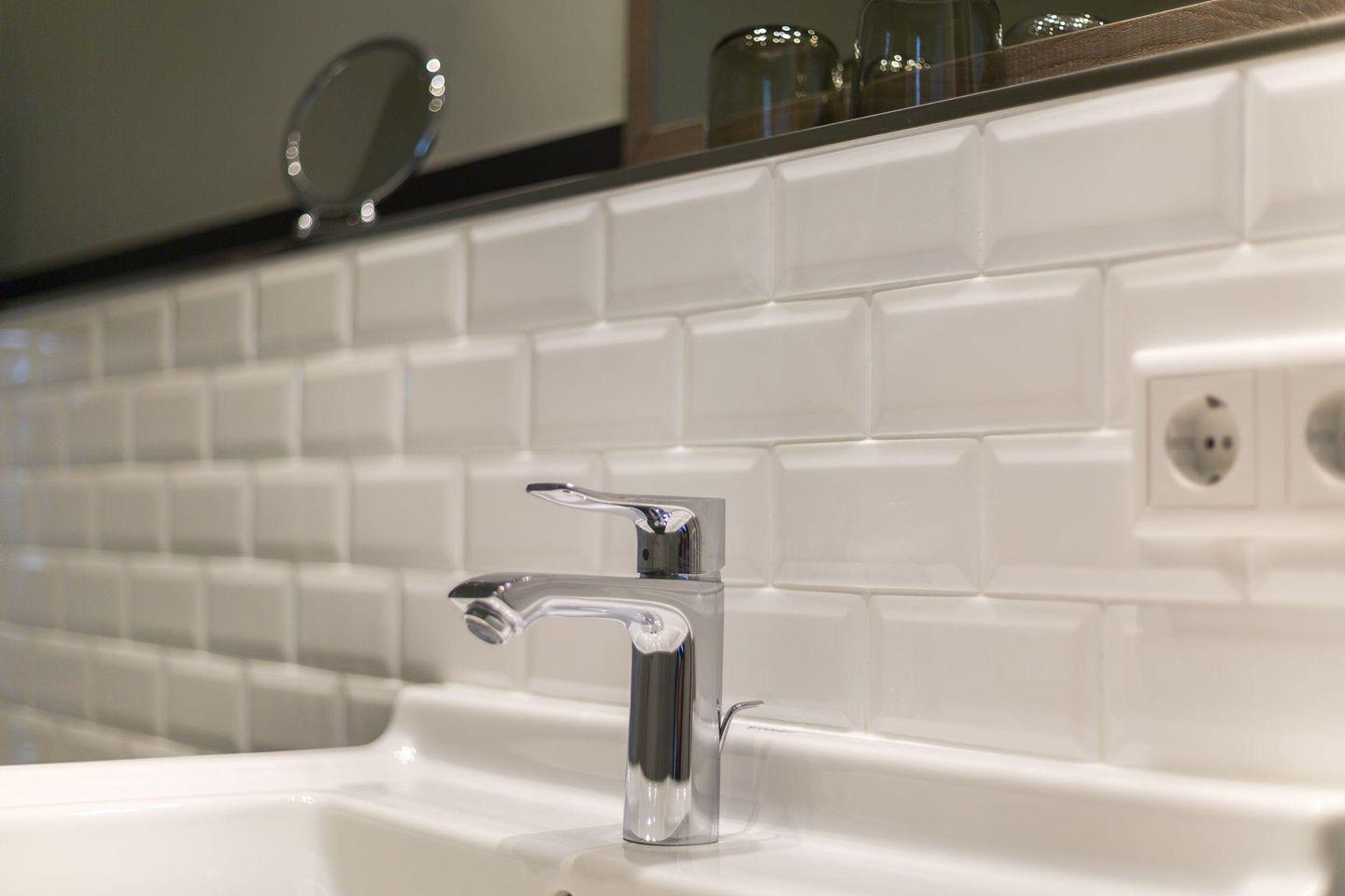 Das Badezimmer bietet sowohl Badewanne als auch Dusche, WC, Fön und Handtuchwärmer und sorgt für einen bequemen Start in den Tag.
