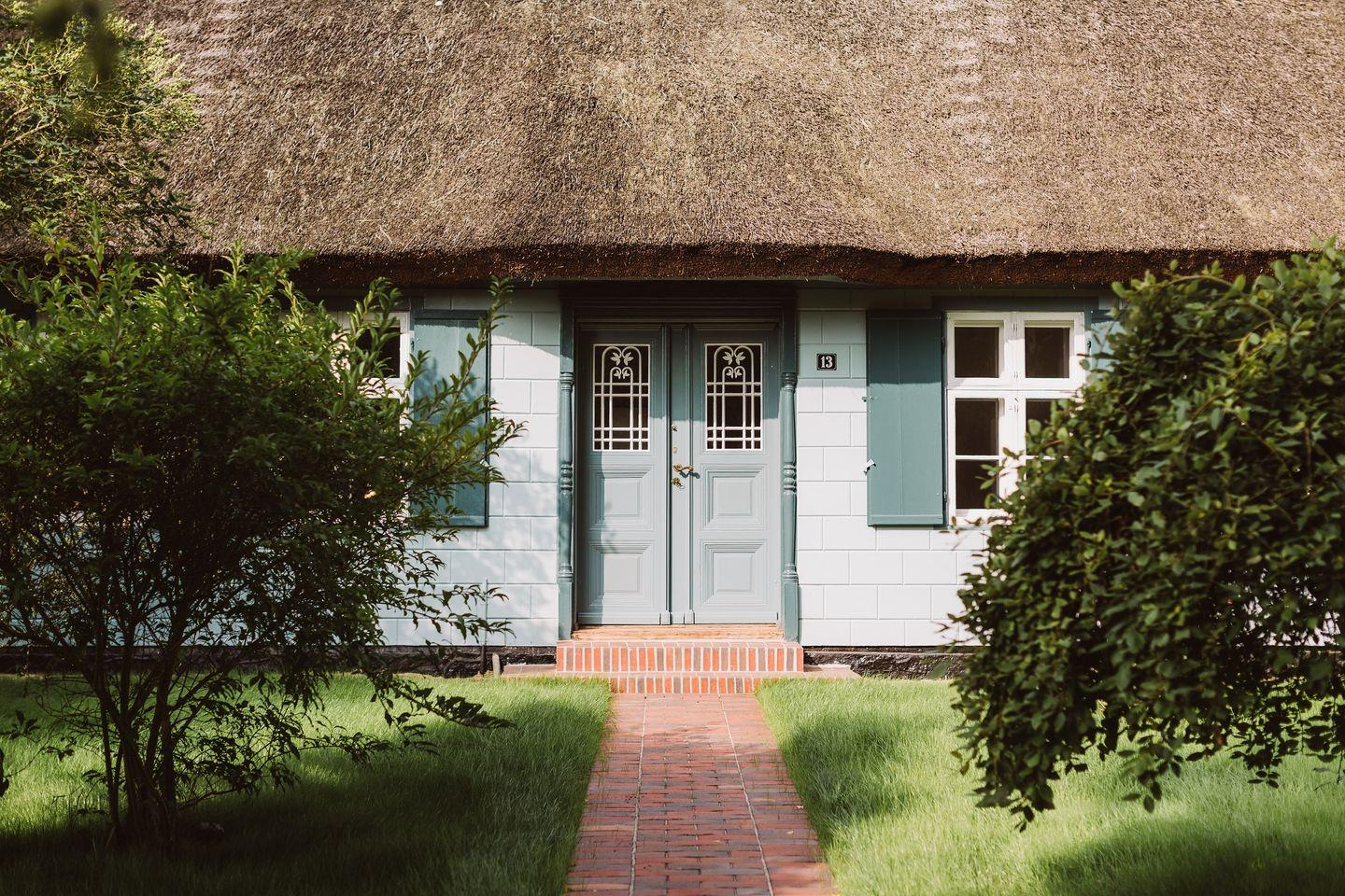 Historische Bauelemente wurden sorgfältig aufgearbeitet und durch hochwertige Einbauten, ausgewählte Möbel und zeitgemäße Technik ergänzt. So entsteht ein Ferienhaus auf dem Darß, das Geschichte und Gegenwart harmonisch vereint.
