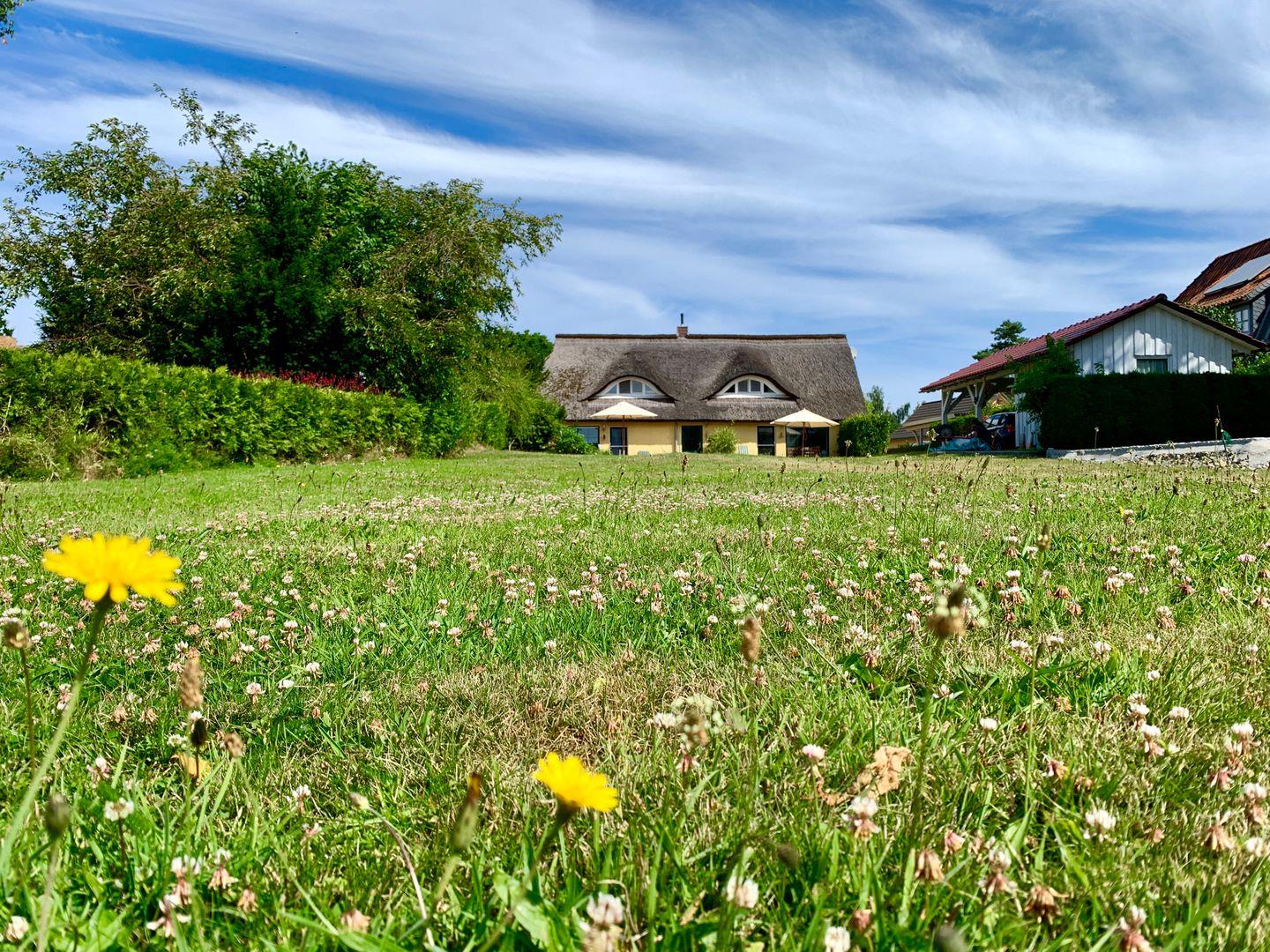 Diese hübsche Ferienwohnung über 2 Etagen, mit einer Größe von ca. 65 m², liegt ruhig auf einem großen Wiesengrundstück in Richtung Bodstedter-Bodden.