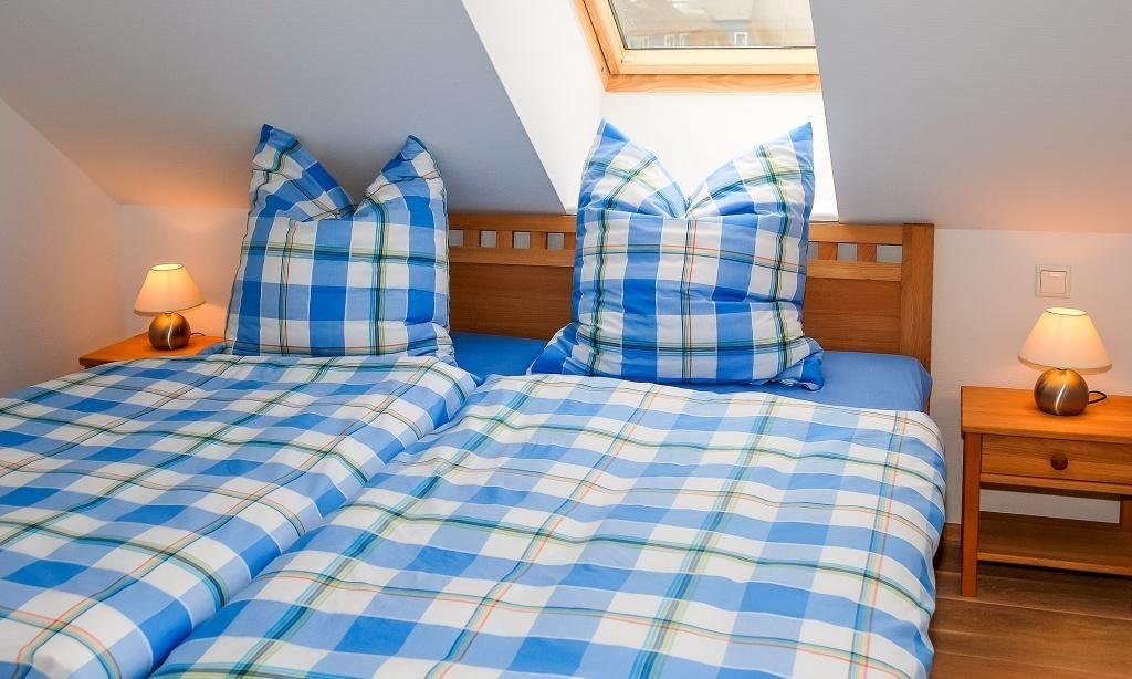 Die Dachgeschosswohnung empfängt dich mit einem offen und freundlich gestalteten Wohnraum, in dem eine gemütliche Sitzecke und ein großzügiger Essbereich integriert ist. Die hochwertige Einbauküche ist funktional ausgestattet und lässt keine Wünsche offen. Weiterhin gibt es zwei Schlafzimmer, eines verfügt über ein Doppelbett, das zweite über zwei Einzelbetten. Das Bad mit Dusche/WC sowie ein separates Gäste-WC machen den Wohnkomfort perfekt. Ein großer Süd-West Balkon, auf dem du entspannte Stunden nach einem ereignisreichen Tag verleben kannst, rundet das Gesamtpaket ab.