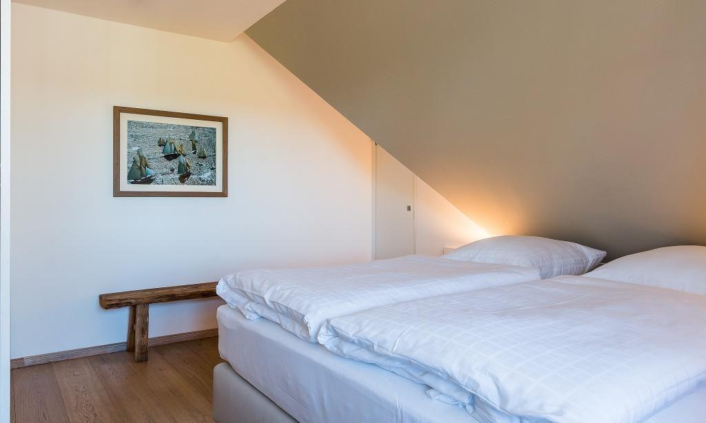 Im Erdgeschoss gelangst du über den abgeschlossenen Eingangsbereich mit Garderobe direkt in den offenen und lichtdurchfluteten Wohnbereich. Hier erwartet dich eine gemütliche Sitzecke am modernen Kamin. Ein großzügiger Essbereich und die hochwertige Einbauküche mit Kochinsel und Tresen sind perfekt aufeinander abgestimmt und fügen sich harmonisch ein. Hier kannst du gesellige Stunden mit deiner Familie verleben. Weiterhin befindet sich ein Gästebad mit Dusche/WC im Erdgeschoss. Das Obergeschoss beherbergt ein Schlafzimmer mit einem Doppelbett sowie ein luxuriöses Bad mit Badewanne, WC und Bidet. Der Spitzboden bietet ein zusätzliches Geschoss mit einer offenen Schlafgalerie und zwei Einzelbetten.