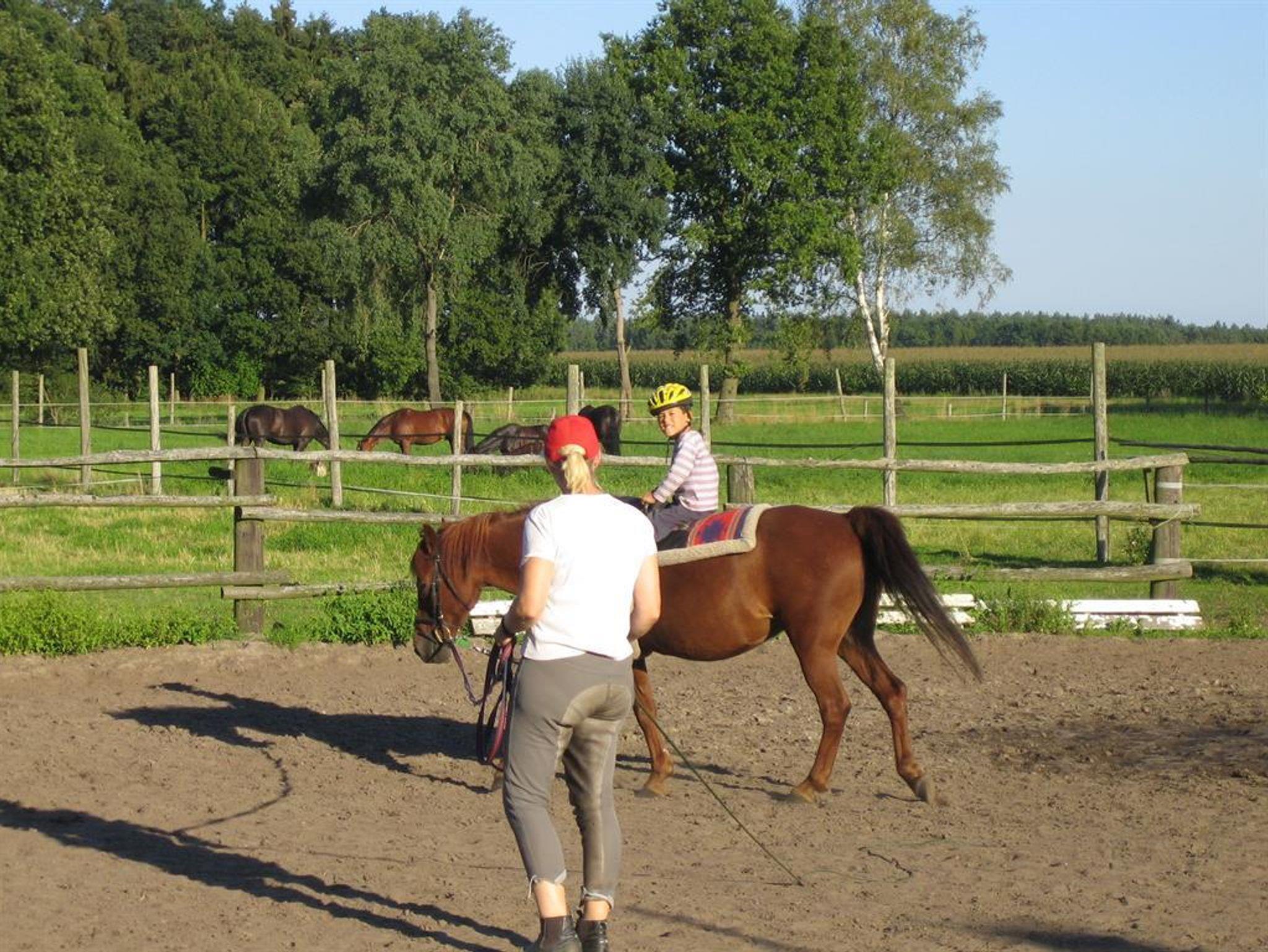 Sie können auch mit Pferden anreisen. Stallungen und Weiden stehen zur Verfügung. Spielraum, Spielplatz, Grillplatz, Trampolin, Kettcars, Basketball und Bolzplatz sind vorhanden.