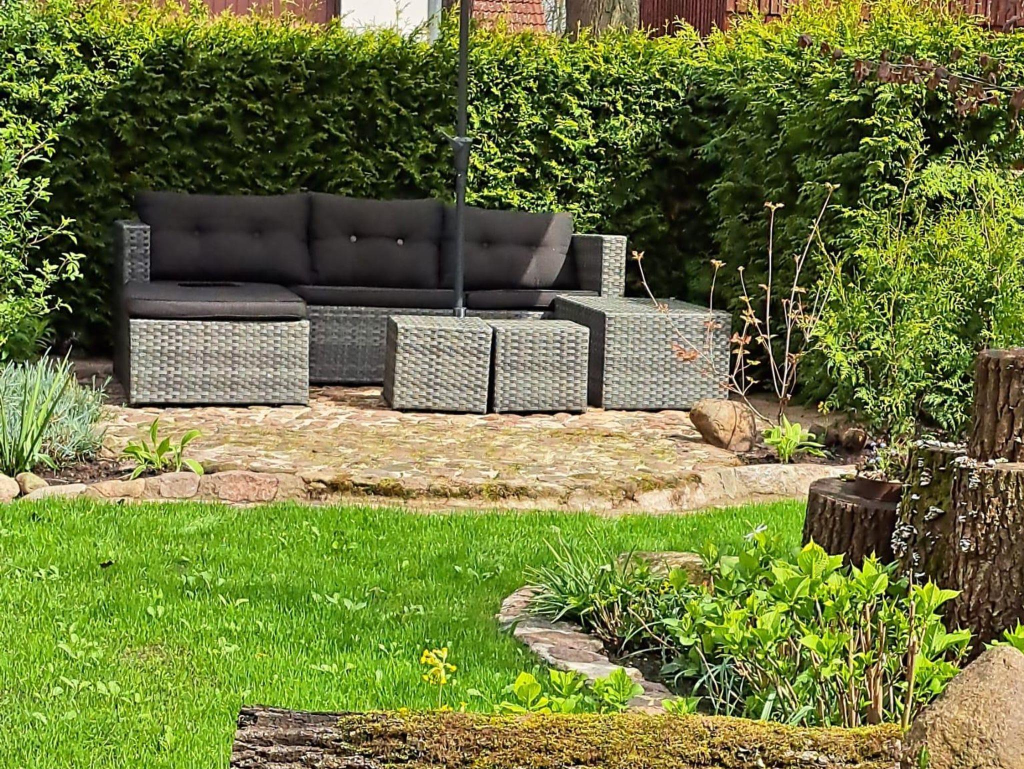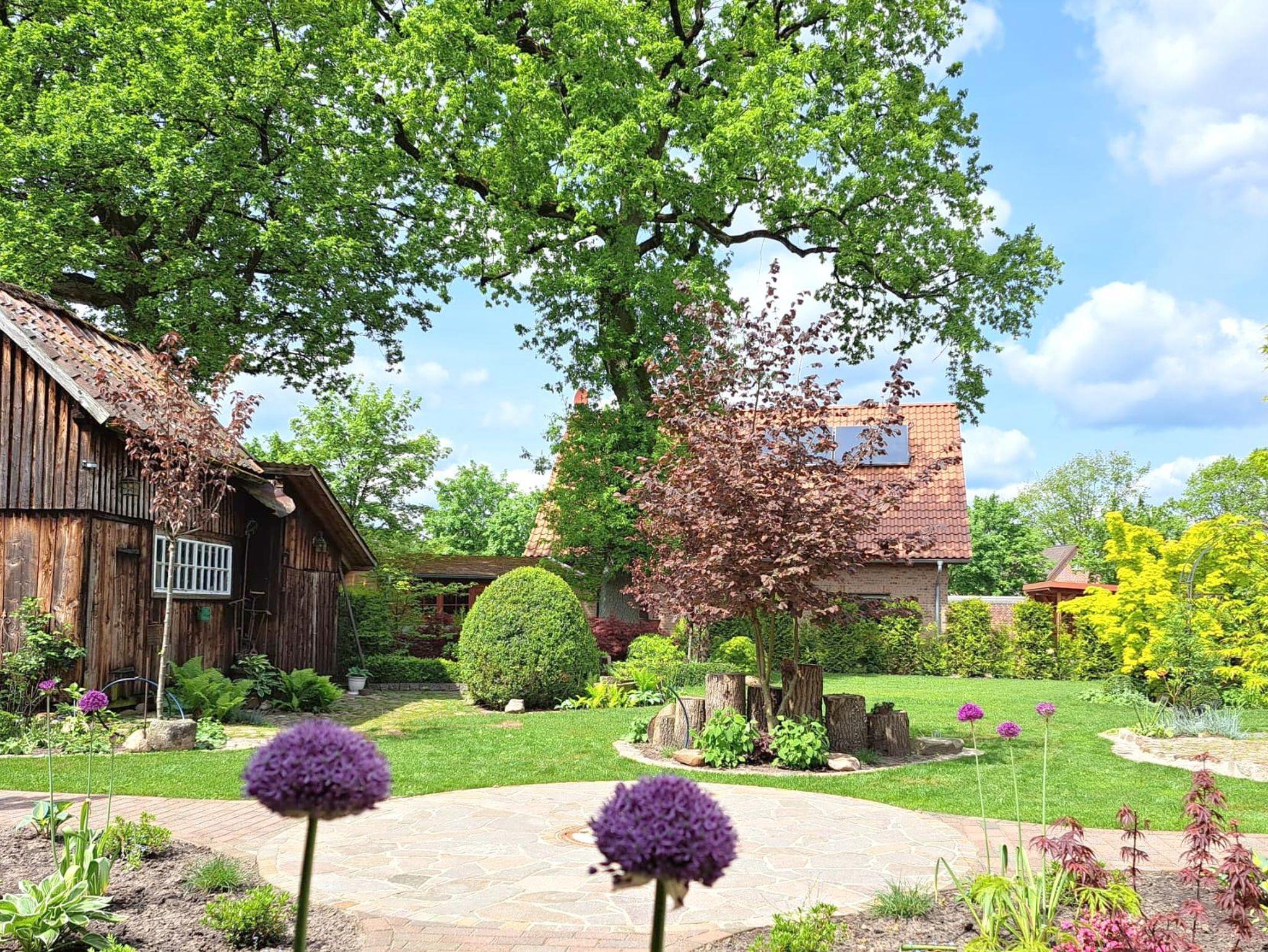 Der zur Ferienwohnung zugehörige, liebevoll angelegte Garten mit eigener Terrasse, Rasenfläche und Lounge-Ecke lädt zum Verweilen ein und trägt zum erholsamen Urlaub bei. Ein eigener Parkplatz ist für unsere Feriengäste vorhanden. Der Ortskern mit Einkaufsmöglichkeiten ist fußläufig erreichbar. Von der Ferienwohnung aus sind zahlreiche Freizeitangebote, wie z. B. Heidepark Resort Soltau, Serengeti Park Hodenhagen, Weltvogelpark Walsrode, Wilseder Berg oder auch Designer Outlet Soltau bequem mit dem Auto erreichbar.