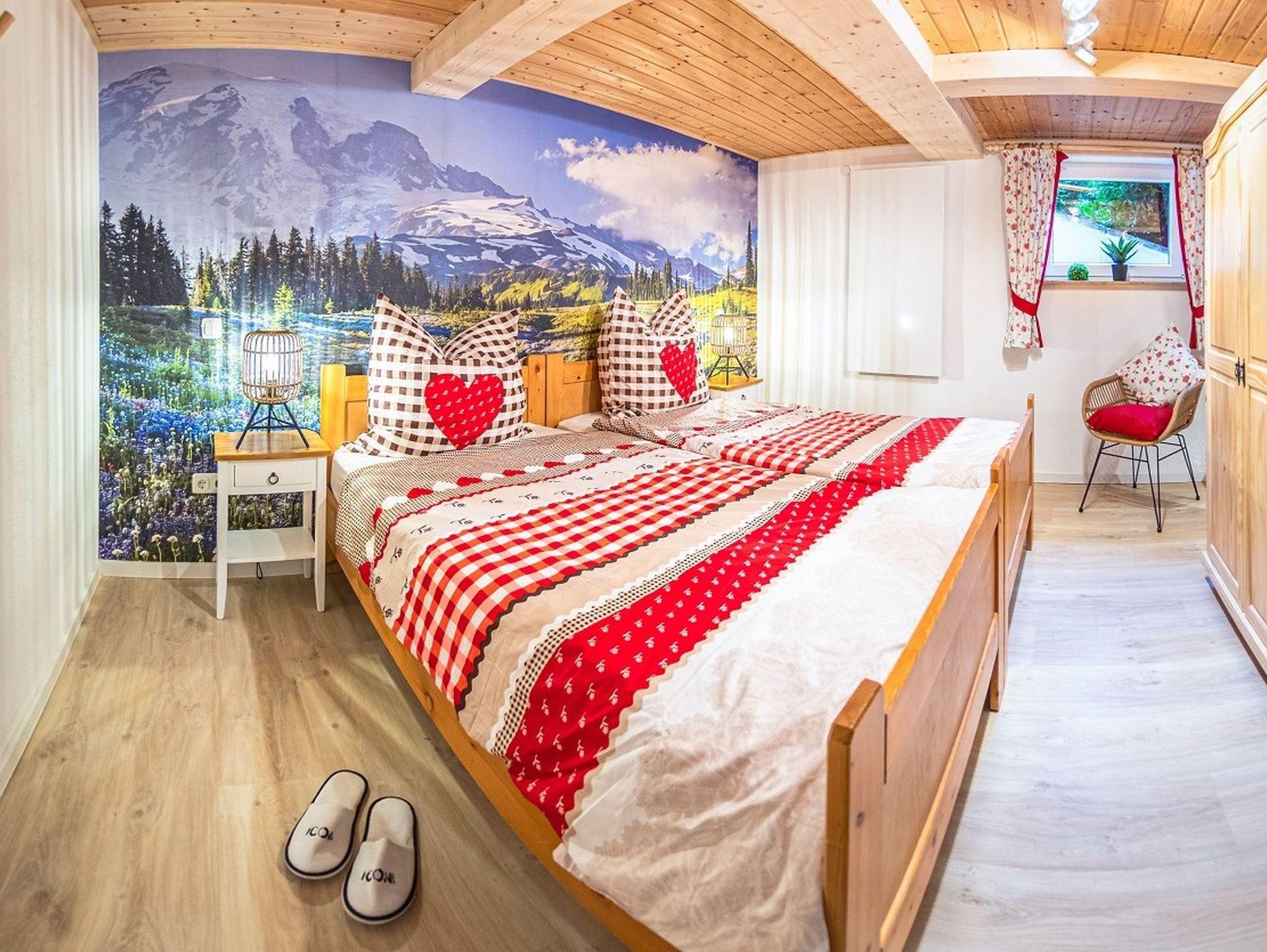 Romantisches Bergchalet La Roubine in Willingen Bömighausen mit Sauna, Wellnessbereich und Kamin, inmitten der unberührten Natur am Waldrand in ganz ruhiger Lage, mit herrlichem Blick in die Landschaft.Schon in der Nähe des Blockhauses beginnen Ihre Wanderwege (Uplandsteg). In wenigen Gehminuten erreichen Sie das Bömighauser Tretbecken, den Reiterhof und auch den idyllischen Bömighäuser See. Auch der unmittelbar angrenzende Ort ist schnell zu Fuß zu erreichen.Das Bergchalet La Roubine, welches über Stufen erreichbar ist, ist für max. 7 Personen. Selbstverständlich bietet diese außergewöhnliche Blockhaus auf zwei Ebenen kostenloses WLAN und eine eigene Sauna (Kosten werden per Automat abgerechnet). Das Wohnzimmer mit Kamin verfügt über einen Smart-TV, Stereoanlage mit CD-Player und einer gemütlichen Essecke mit Blick in die Landschaft. Der komplett eingerichtete Küchenbereich ist ausgestattet mit Spülmaschine, Herd mit Backofen, Kühlschrank, Kaffeemaschine, Toaster, Mikrowelle, Wasserkocher etc. und ausreichend Geschirr für 7 Personen. Des Weiteren verfügt das Bergchalet über ein Schlafzimmer mit Doppelbett und ein weiteres Schlafzimmer mit einem Etagenbett sowie einem Badezimmer mit Dusche. Ein Föhn liegt natürlich schon für Sie bereit. Im Untergeschoss, welches von außen zugänglich ist, finden Sie ein weiteres Schlafzimmer mit Doppelbett, ein Badezimmer mit Dusche und einen Wellnessbereich mit Sauna und Liegen. Auf der großen, überdachten Süd-West-Terrasse befinden sich Gartenmöbel mit Auflagen, Liegen und Weber-Holzkohlegrill. Eine Sonnenliegewiese schließt sich gleich an der Terrasse an. Zu diesem Bergchalet gehört selbstverständlich auch ein PKW-Stellplatz.