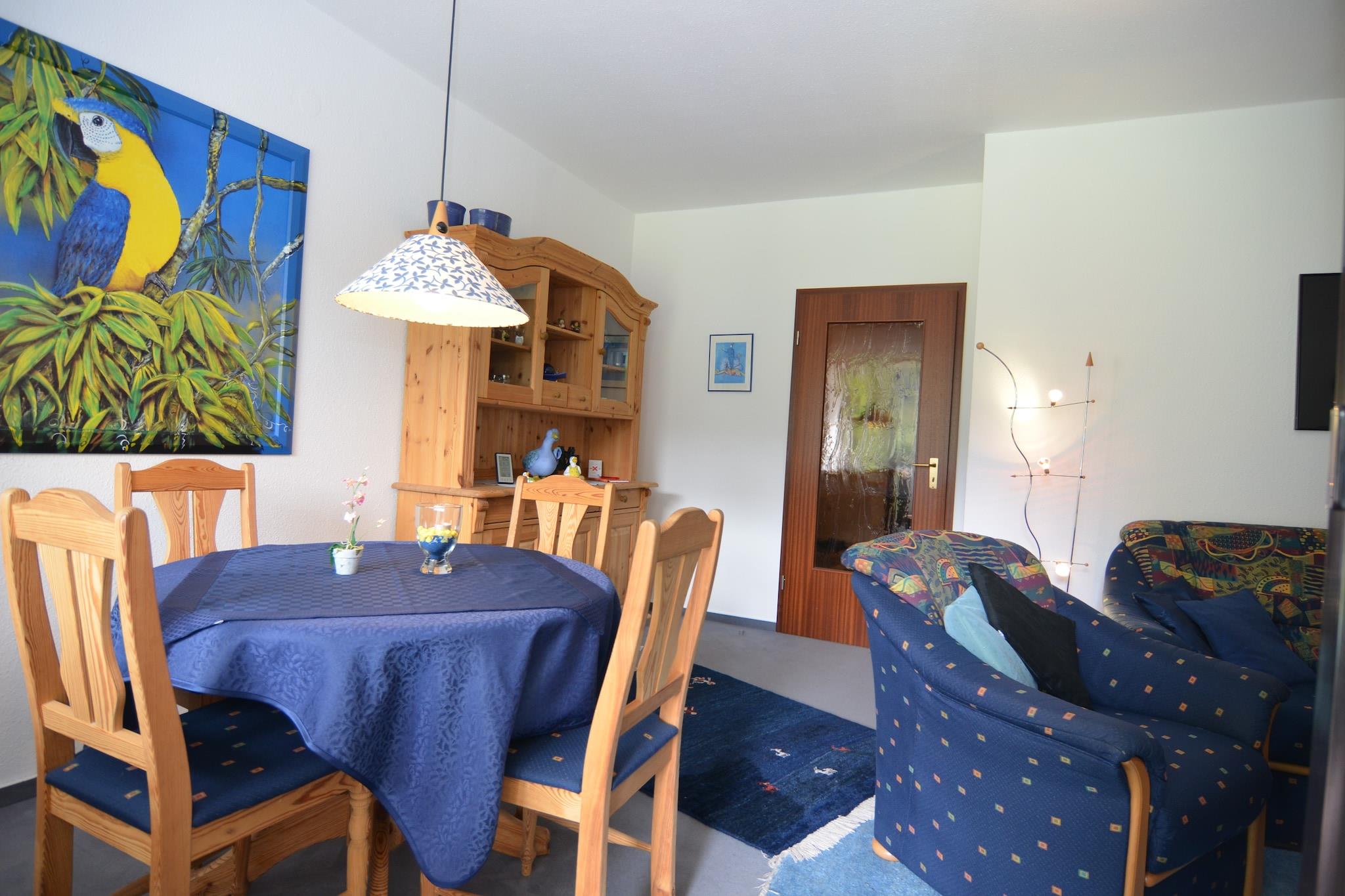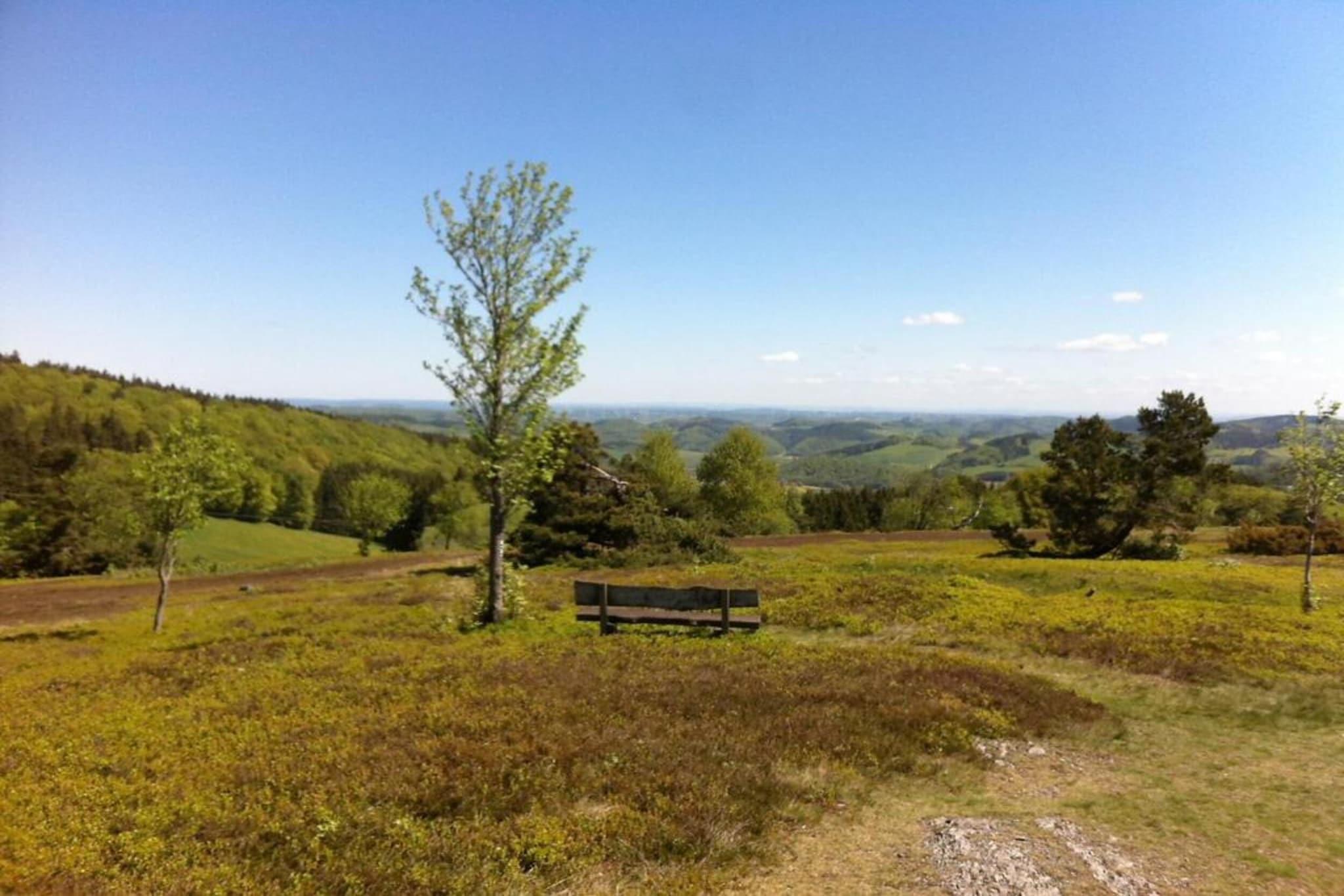 Dette komfortabelt møblerte feriehuset ligger i en fredelig blindvei over byen Usseln am Kahler Pön i den vakre Sauerland-regionen. Omgitt av skog og tilbyr fantastisk, uhindret utsikt over landskapet, er det det perfekte tilfluktsstedet for naturelskere. Leiligheten har en solrik privat terrasse og en avslappende hage, som er et ideelt sted å slappe av etter utendørsaktiviteter. Rett ved siden av skogen gir beliggenheten direkte tilgang til turstier, langrennsløyper og skiheiser, noe som gjør det til en flott base for sportsentusiaster hele året. Den fullt utstyrte, smakfullt innredede leiligheten tilbyr alle bekvemmeligheter som trengs for et koselig opphold i rolige omgivelser. Nærliggende populære reisemål inkluderer Willingen (6 km), Korbach (20 km), Winterberg (25 km) og Diemelsee-sjøen (15 km). Viktige fasiliteter som restauranter, offentlig transport og et svømmebasseng er innen rekkevidde, mens flyplassen ligger 60 km unna, noe som sikrer enkel reisetilgang.
