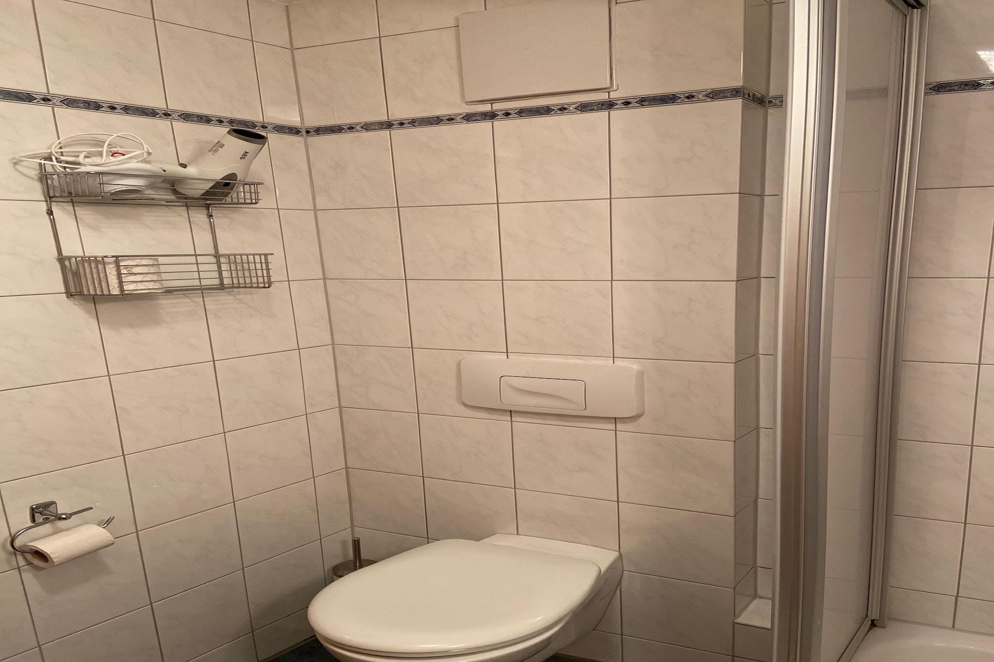 In der 1. Etage: (offene Küche(Wasserkocher, Toaster, Kochherd(4 Kochplatten, Ceranfeld, elektrisch), Kaffeemaschine(Filter), Mikrowelle, Spülmaschine, Kühlschrank(+ Gefrierfach)), Wohn/Esszimmer(TV(Flatscreen, Satellit), Esstisch, Stereoanlage), Schlafzimmer(Doppelbett), Schlafzimmer(Einzelbett, Einzelbett), Badezimmer(Dusche, Waschbecken, Toilette, Föhn), Flur) Trockner(Gemeinschaftliche Nutzung mit anderen Gästen), Waschmaschine(Gemeinschaftliche Nutzung mit anderen Gästen), Balkon, Heizung(Zentral), Gartenmöbel, Parkplatz
