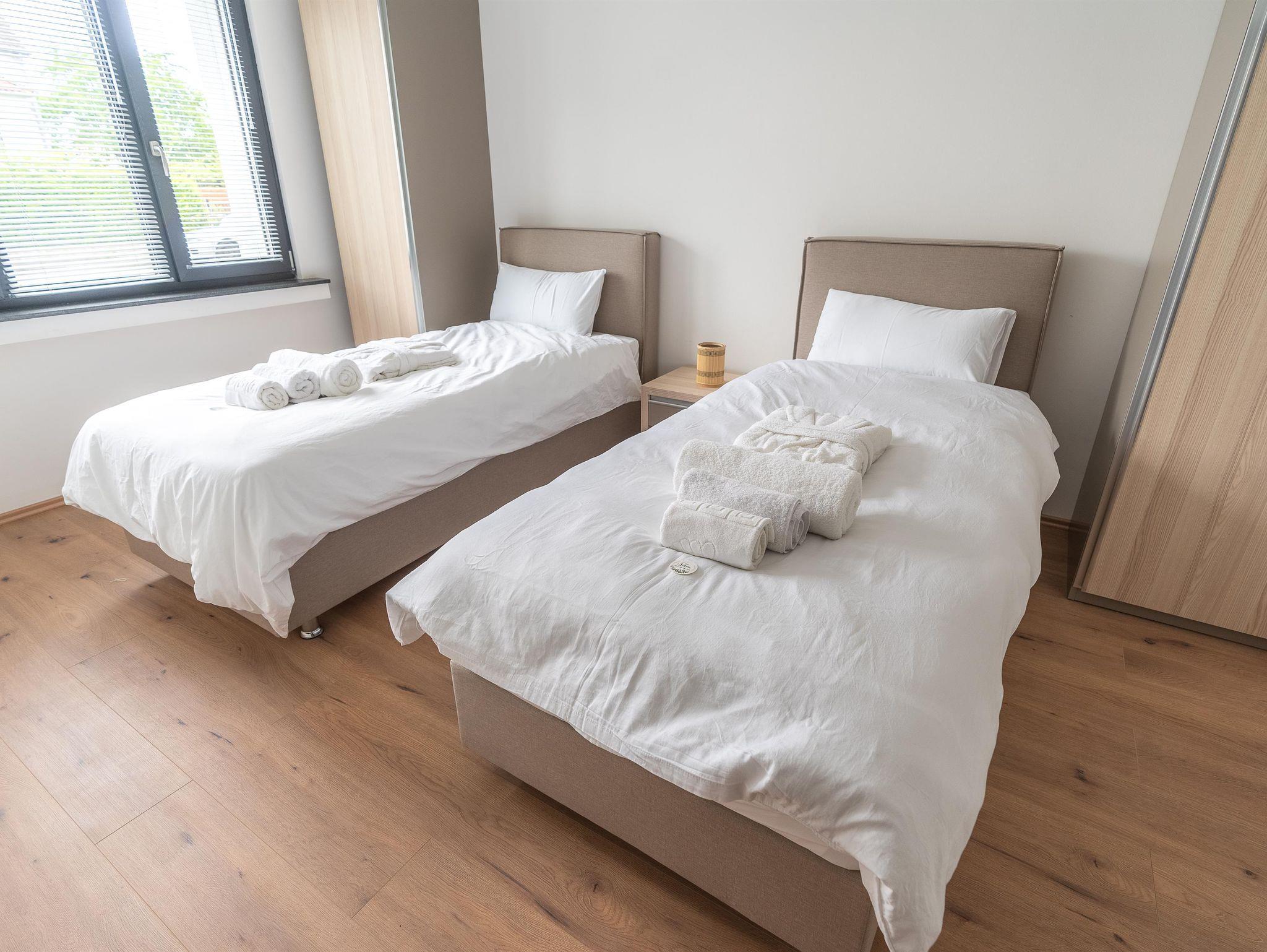 Willkommen bei Colakation! Diese einladende Wohnung bietet zwei gemütliche Einzelbetten (jeweils 90 cm breit) und eine Schlafcouch.