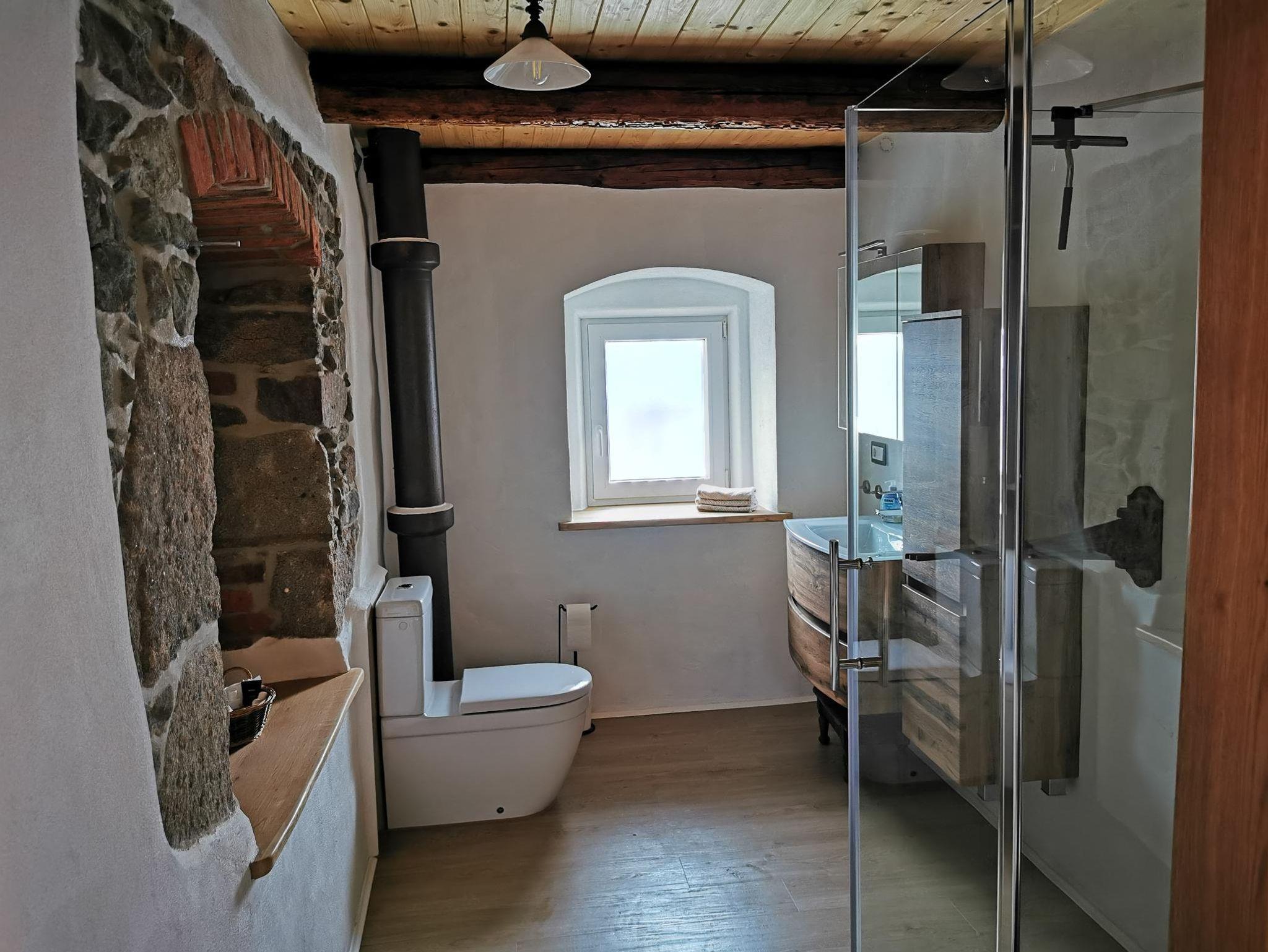 Tschaidana ist ein 11 qm großes, liebevoll saniertes und eingerichtetes Zwei-Bett-Zimmer im Obergeschoss. Das Zimmer verfügt über einen Laminatfußboden mit Fußbodenheizung sowie ein großes Fenster mit einem französischen Balkon. Tschaidana ist mit einem Doppelstockbett (90 cm x 200 cm), einer Kommode, einem Spiegel, einem kleinen Tisch und einer Sitzgelegenheit ausgestattet und kann als Kinderzimmer genutzt werden. Jeweils ein Bad mit WC und Dusche im Oberg- und Erdgeschoss sowie ein 30 qm großer Aufenthaltsraum mit einem gemütlichen Sofa und Flachbildfernseher mit Magenta TV und WLAN und einer voll ausgestatteten Wohnküche im Erdgeschoss sind zur gemeinschaftlichen Nutzung der Feriengäste vorgesehen. Ein eigener Kühlschrank für mitgebrachte Lebensmittel und Getränke steht für die Gäste von Tschaidana in der Wohnküche bereit. Die Dachterrasse nebenan lädt insbesondere an sonnigen Tagen zum Verweilen und Sonnetanken ein.