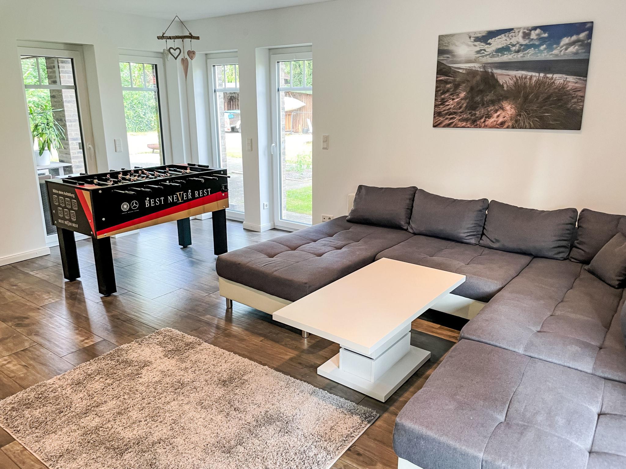 Large, modern, comfortable 2-family house "Meyer". In the centre of Hemmoor 11 km from the centre of Wingst, 26 km from the centre of Otterndorf, 28 km from the centre of Stade, 26 km from the sea, 26 km from the beach. For shared use: large garden (fenced). Barbecue. In the house: billiard table, table football, washing machine. Parking at the house. Supermarket 700 m, restaurant, bakery, bus stop 100 m. Nearby attractions: Kreidesee Hemmoor 1.5 km, Wingster Waldzoo 9 km, Hansestadt Stade 28 km. Well-known lakes can easily be reached: Balksee 11 km.