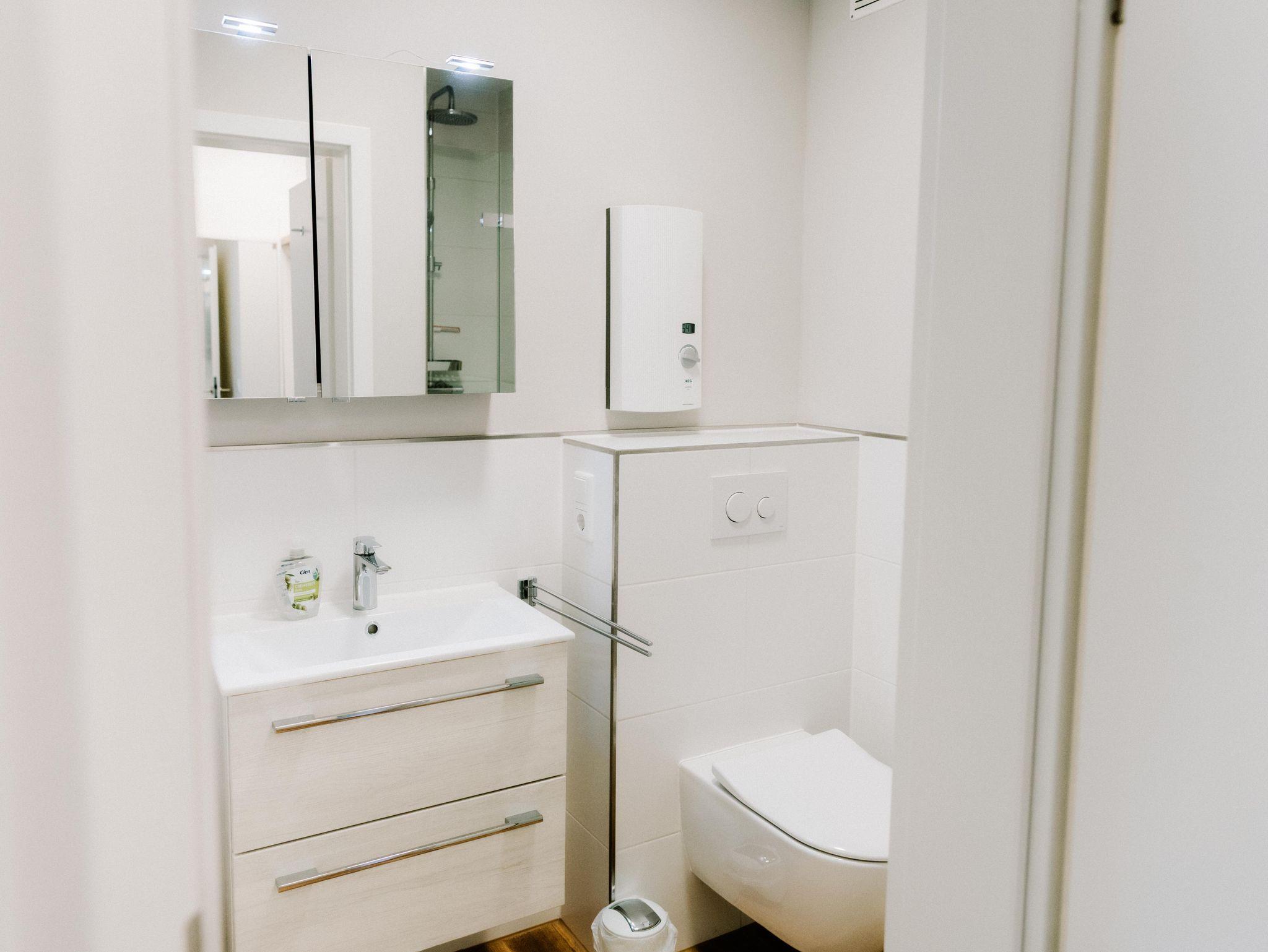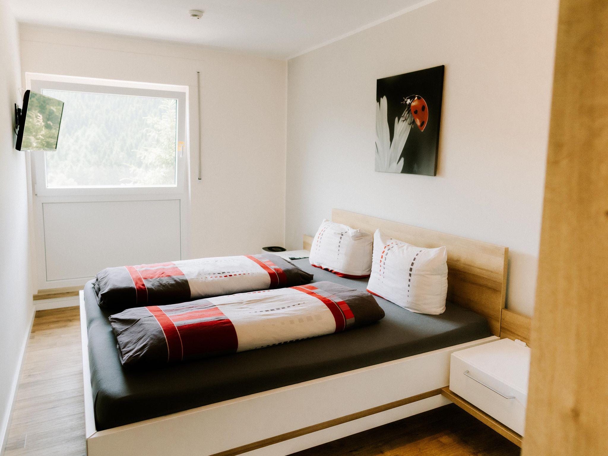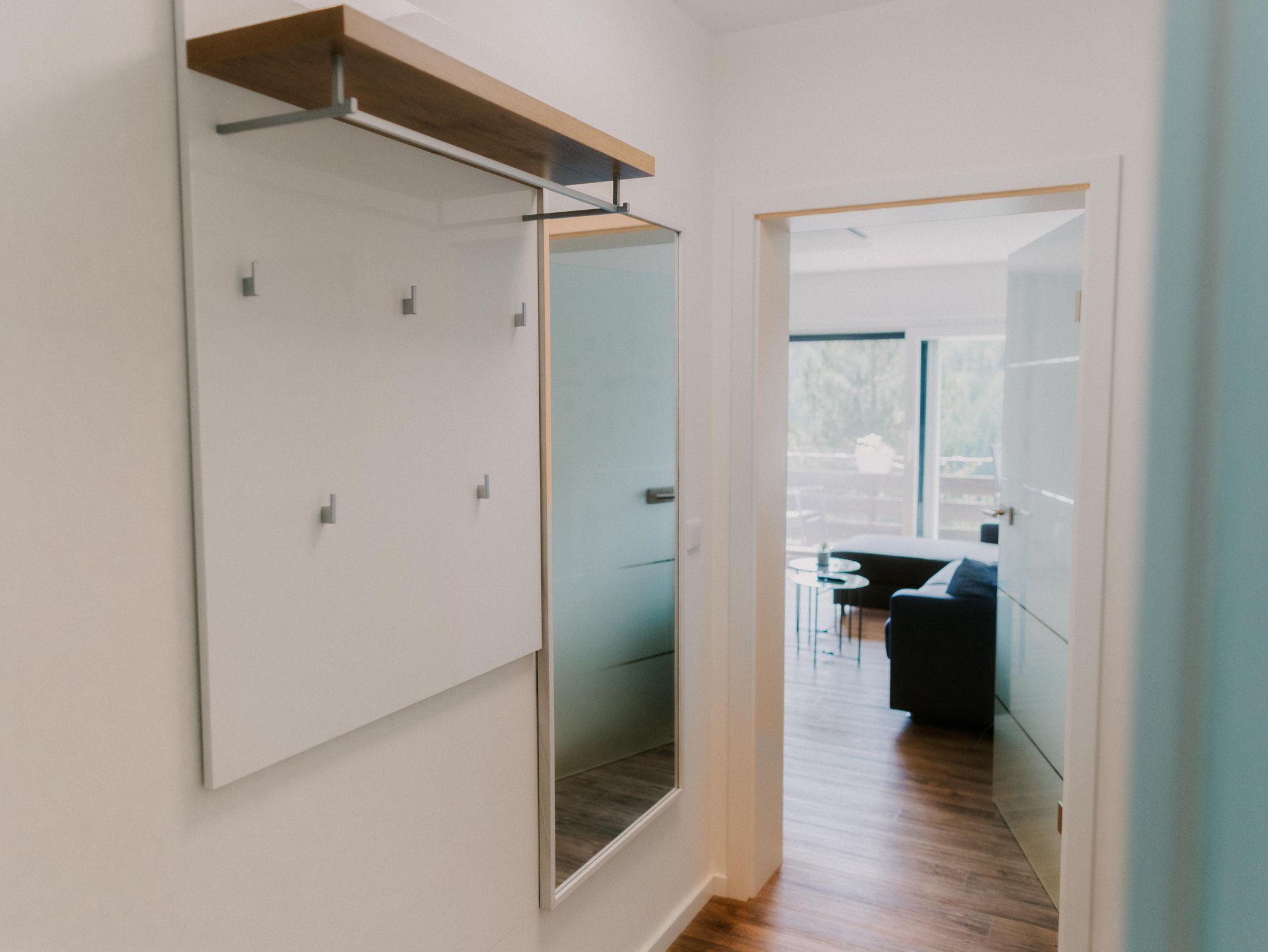 Genießen Sie das lichtdurchflutete Ambiente, ein gemütliches Schlafzimmer mit hochwertiger Ausstattung, ein modernes Bad und eine voll ausgestattete Küche, die keine Wünsche offenlässt. Im Wohnzimmer lädt ein bequemes Sofa mit integriertem vollwertigem Bett zum Entspannen ein – mit direktem Blick in die Natur. Ob vom Sofa oder vom Bett: Der Blick in die umliegende Berglandschaft wird Sie verzaubern.