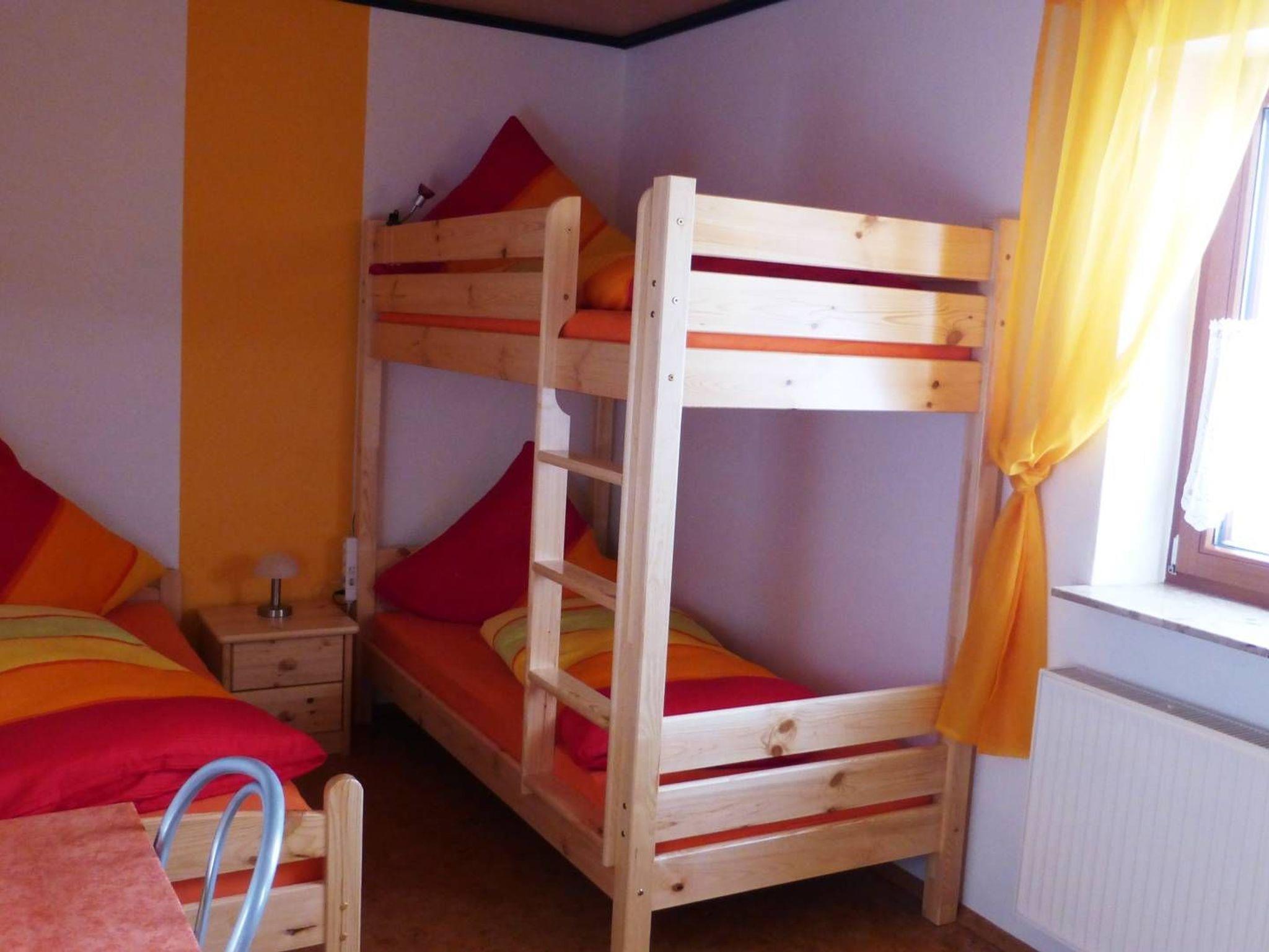 1 Schlafzimmer: 1 Bett, 1 Etagenbett, Spielekiste, Radiorekorder mit Kinder-CDs