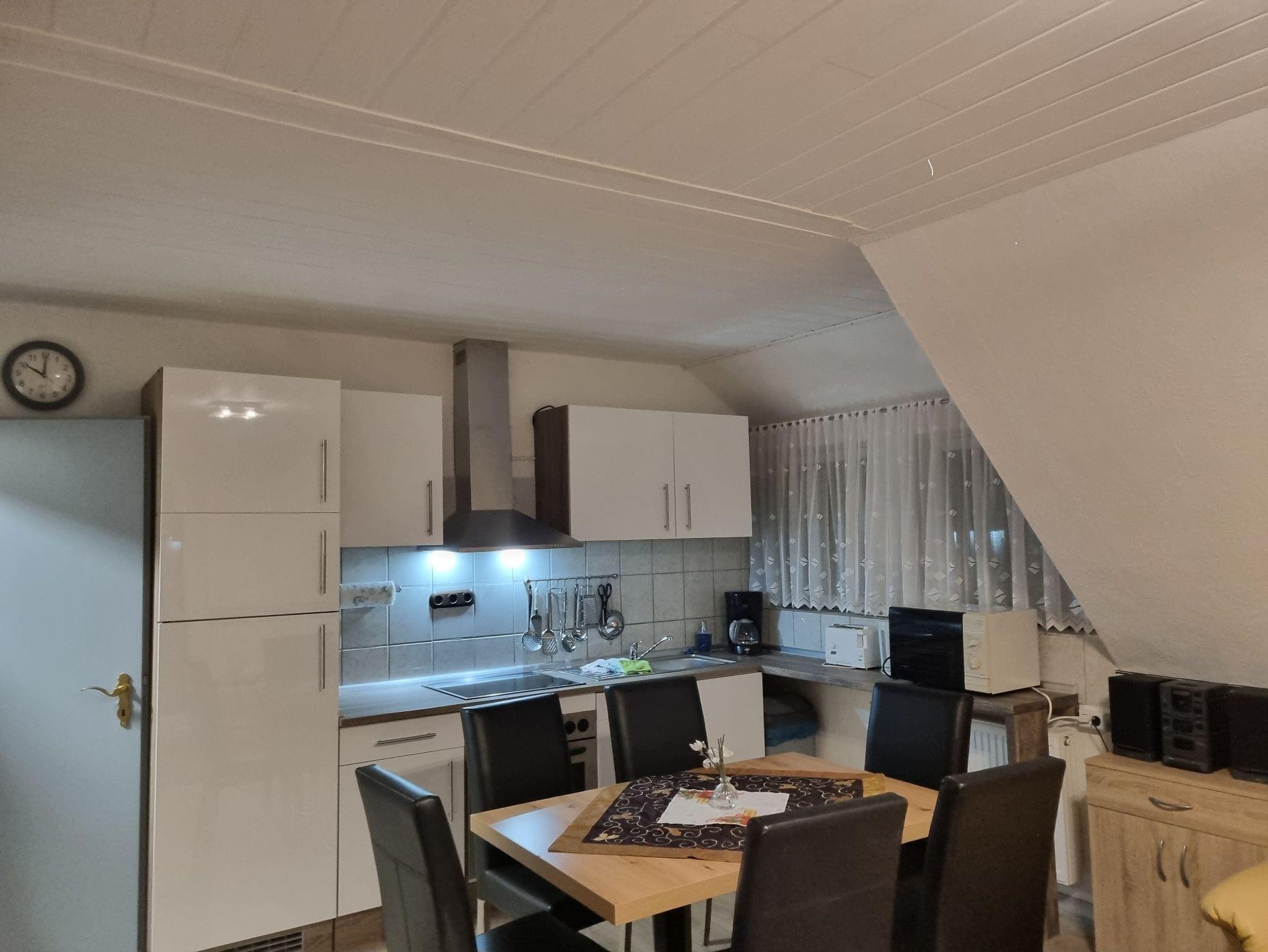 Moderne Ferienwohnung in ruhiger, bevorzugter Wohnlage, Südhang mit herrlichem Ausblick über den Luftkurort Züschen, für 1 - 5 Personen, mit separatem Eingang und Terrasse. Küche mit Elektroherd, Backofen, Spülmaschine, Dunstabzugshaube, Kaffeemaschine, Wasserkocher, Mikrowelle, etc., 1 Dreibett- und 1 Doppelschlafzimmer mit eigener Waschgelegenheit, Wohnzimmer mit Sitzgarnitur, Kabelfernsehen, Diele, Bad mit Dusche und WC, Parkplatz. Zur Ortsmitte mit Einkaufsmöglichkeiten und Gastronomie sind es fünf Gehminuten. Transfer zu unserem Gasthof möglich.