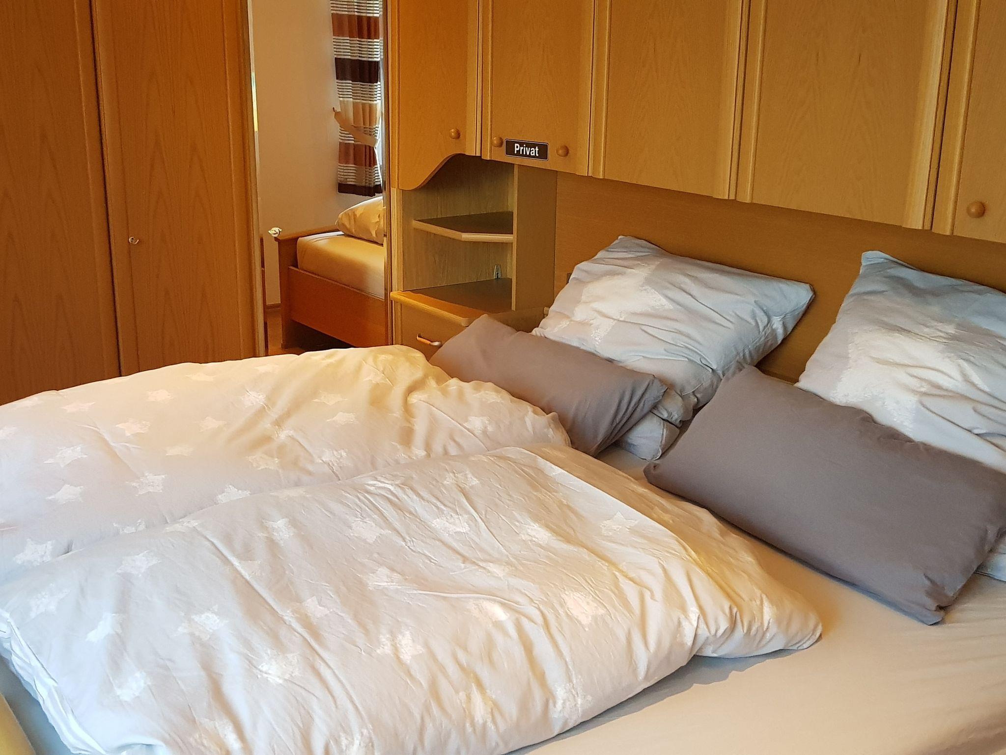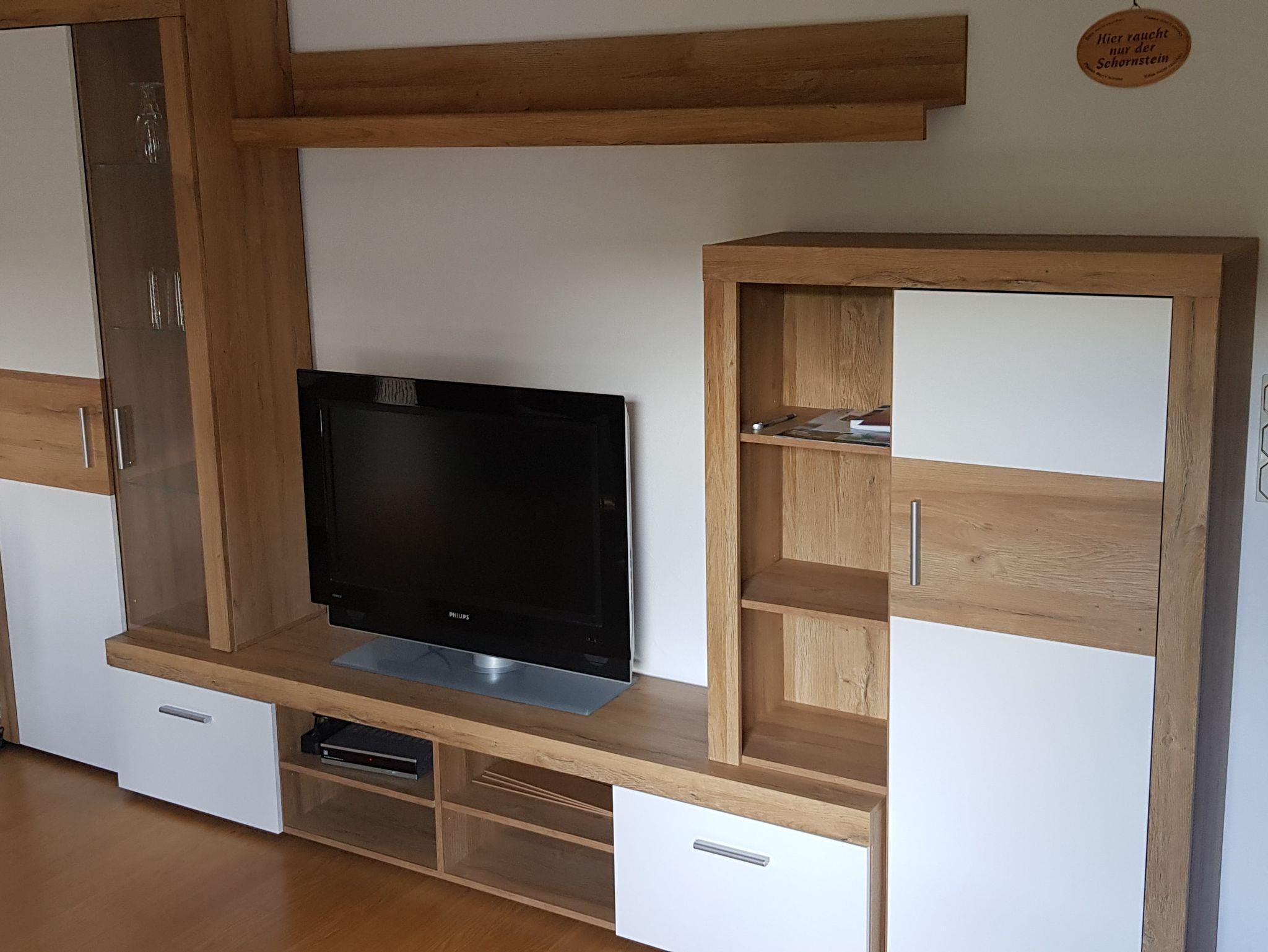 Neben der komfortablen (Schlaf-)Couch im Wohnzimmer lädt ein Flachbild-TV mit SAT-Anschluss zum Verweilen ein. Auch eine Auswahl an Spielen steht für unterhaltsame Stunden bereit.
