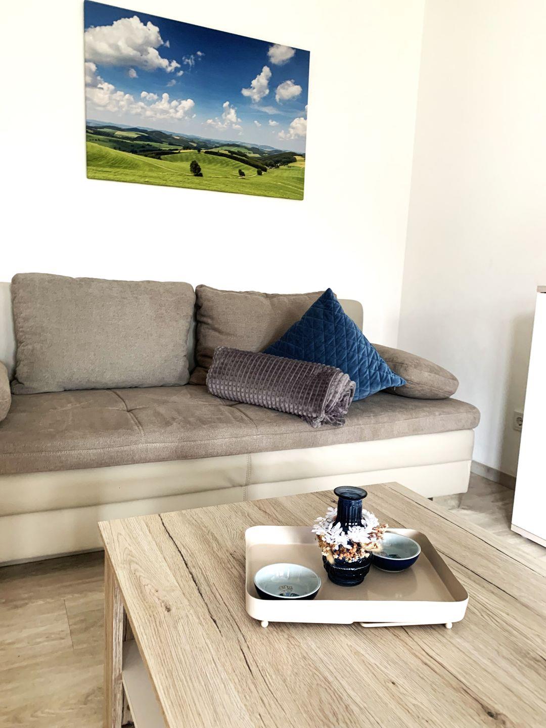 Insgesamt 52 m² Wohnfläche verteilen sich auf eine Eingangsdiele, einen großzügigen Wohn- Essraum (mit einer ausklappbaren Couch als Schlafmöglichkeit für die 3. und 4. Person), eine moderne Küche und ein Schlafzimmer mit Doppelbett. Die moderne Küche mit zusätzlicher Dolce Gusto Kaffeemaschine, sowie das Bad mit Regendusche wurden 2021 aufwändig renoviert. Der Wohn-Essraum ist meuen Möbel und Geräten (43" Smart-TV und Internetradio) ausgestattet.