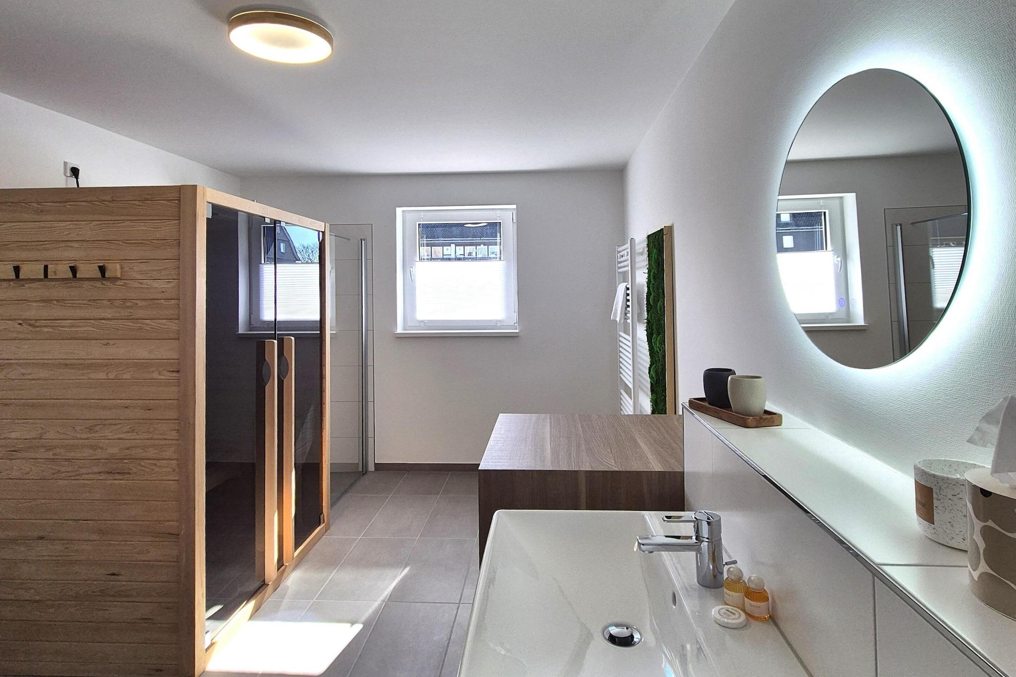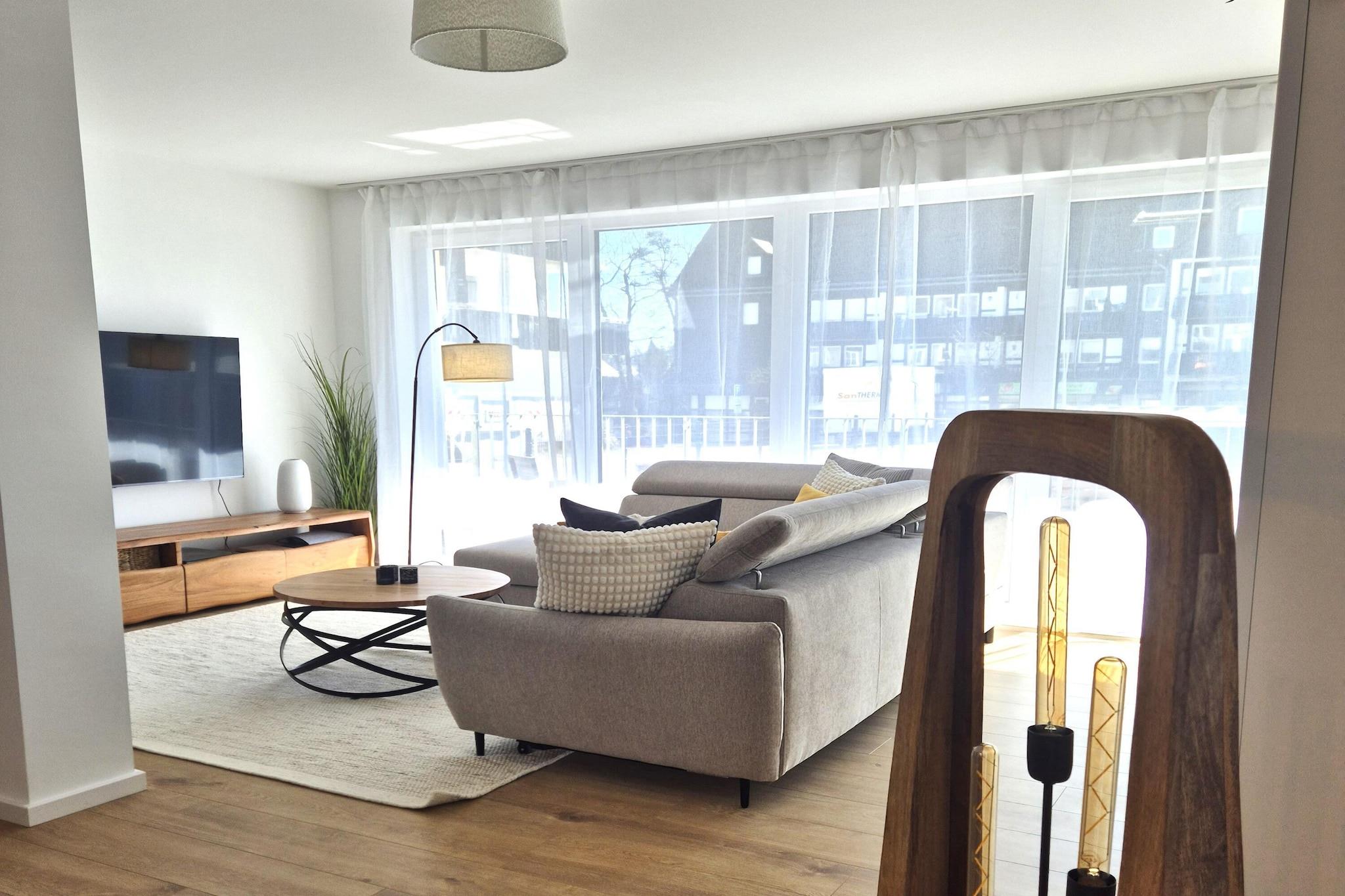 Med en sentral beliggenhet i Winterberg by (300 meter fra Winterbergs markedsplass, i gangavstand fra Winterbergs skiheiskarusell), ligger den lyse, romslige og høykvalitetsleiligheten Winterberg i 1. etasje med heis. Totalt ca. 110 m² boareal fordelt over en gang, en veldig stor stue med TV, et åpent, perfekt utstyrt kjøkken med et stort spisebord og en komfortabel sovesofa for den 5. og 6. personen, et smakfullt soverom med dobbeltseng og TV, og et annet vakkert soverom med en loftseng for to personer og en uttrekksseng for den tredje personen. På grunn av lengden er dette soverommet imidlertid bare egnet for ett barn. Dette soverommet inneholder også spill og bøker. Begge TV-ene i leiligheten er Smart-TV-er og har Netflix-mottak. Leiligheten har også et romslig bad, som også huser en infrarød kabin for to personer og en vaskemaskin. Stuen gir tilgang til den store balkongen, som er utstyrt med hagemøbler utenom vintersesongen. Alle vinduer i eiendommen er trippelglass. I kjelleren som tilhører leiligheten kan du oppbevare ski, skistøvler, aker og sykler om nødvendig. Det er også et låsbart sykkelskur foran huset for sykler. Denne komfortable ferieleiligheten inkluderer en gratis, overbygd carport-parkeringsplass. Hvis du ankommer med to biler, må du parkere den andre bilen på en offentlig parkeringsplass.