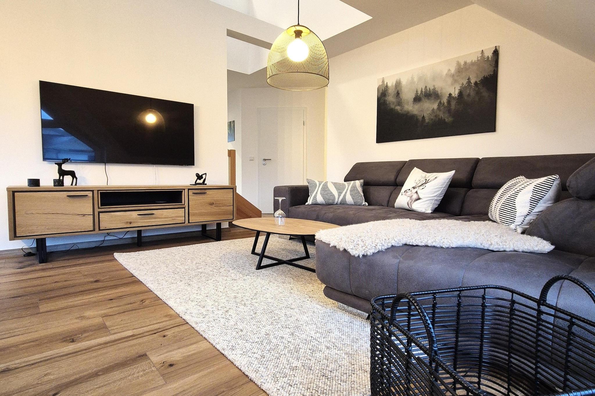 Oppdag en lys og luksuriøs leilighet i Winterberg, perfekt beliggende bare 500 meter fra skitrekkkarusellen og 200 meter fra det sjarmerende torget. Denne romslige ferieleiligheten på 96 m² strekker seg over to etasjer og tilbyr et fredelig tilfluktssted for par, familier eller små grupper. Den nedre etasjen har en lys entré, en romslig stue/spisestue med TV og et åpent kjøkken som fører ut til en solrik balkong – perfekt for morgenkaffe eller kveldsdrinker. Et koselig dobbeltrom med boxspring-seng, gjestetoalett og et stort bad med dobbel vask, badekar og tilgjengelig dusj fullfører denne etasjen. Oppe fungerer en åpen galleri som et andre dobbeltrom med boxspring-seng, som er koblet til et tredje soverom med en enkeltseng – ideelt for et barn eller en ekstra gjest. Nyt Wi-Fi overalt, en privat parkeringsplass i kjelleren og en låsbar kjeller for ski, sykler eller sleder. Utforsk Winterbergs største attraksjoner, fra Erlebnisberg Kappes spennende aktiviteter til naturskjønne tur- og sykkelstier som starter rett utenfor døren. Etter en dag full av opplevelser kan du slappe av på nærliggende restauranter eller kafeer. Din perfekte ferie venter!
