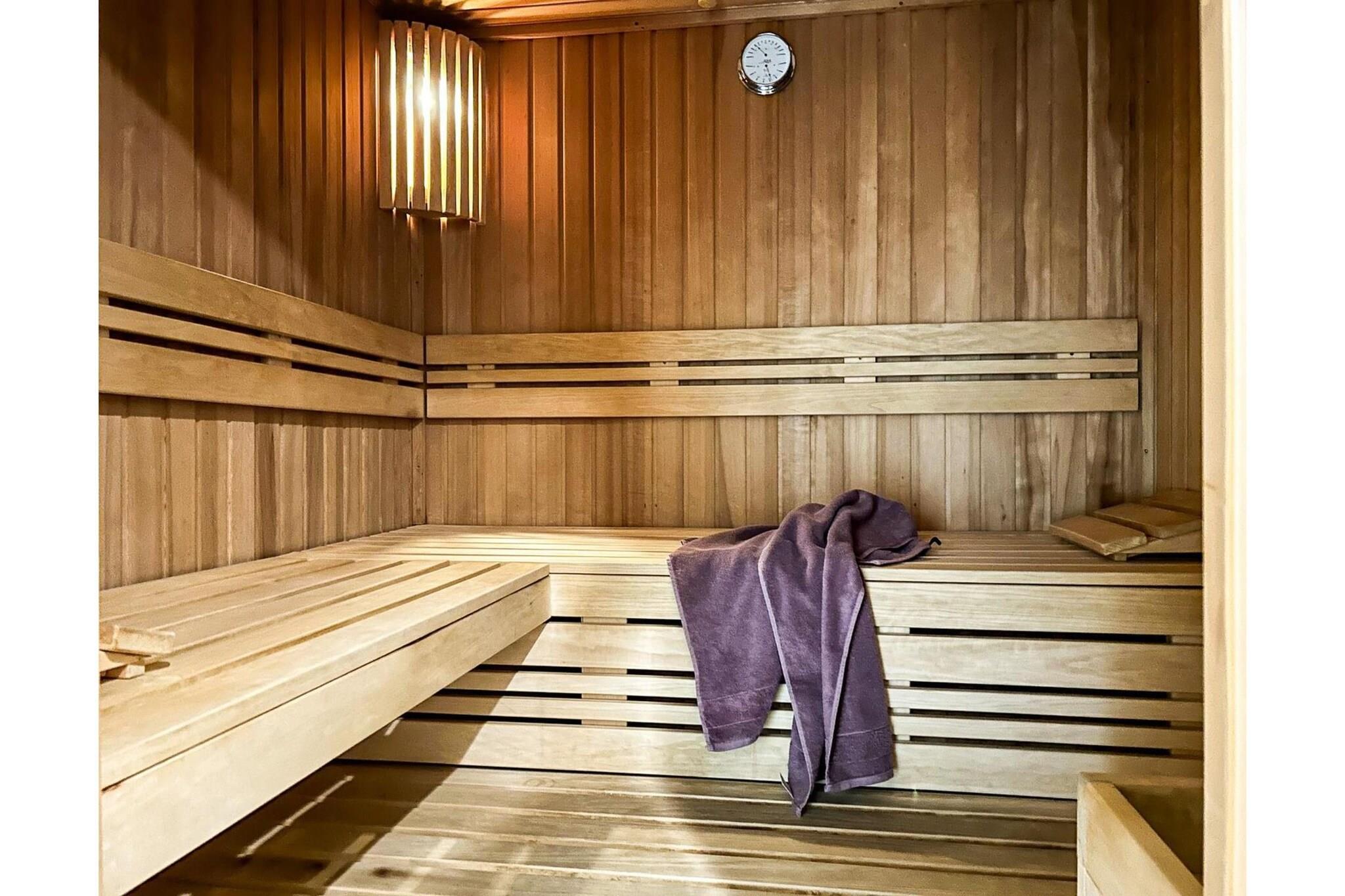 Første etasje: (åpent kjøkken(spisebord, komfyr med kokeplater, vannkoker, brødrister, kaffetrakter(kaffepute), stekovn, oppvaskmaskin, kjøleskap(+ fryser)), Stue/soverom(dobbel sovesofa, TV(flatskjerm), sittehjørne), bad(dusj, håndvask, toalett), Repos) badstue(deles med andre gjester, betalt), balkon, sykkelparkering, hagemøbler, parkering, svømmebasseng(deles med andre gjester, oppvarmet), høy barnestol
