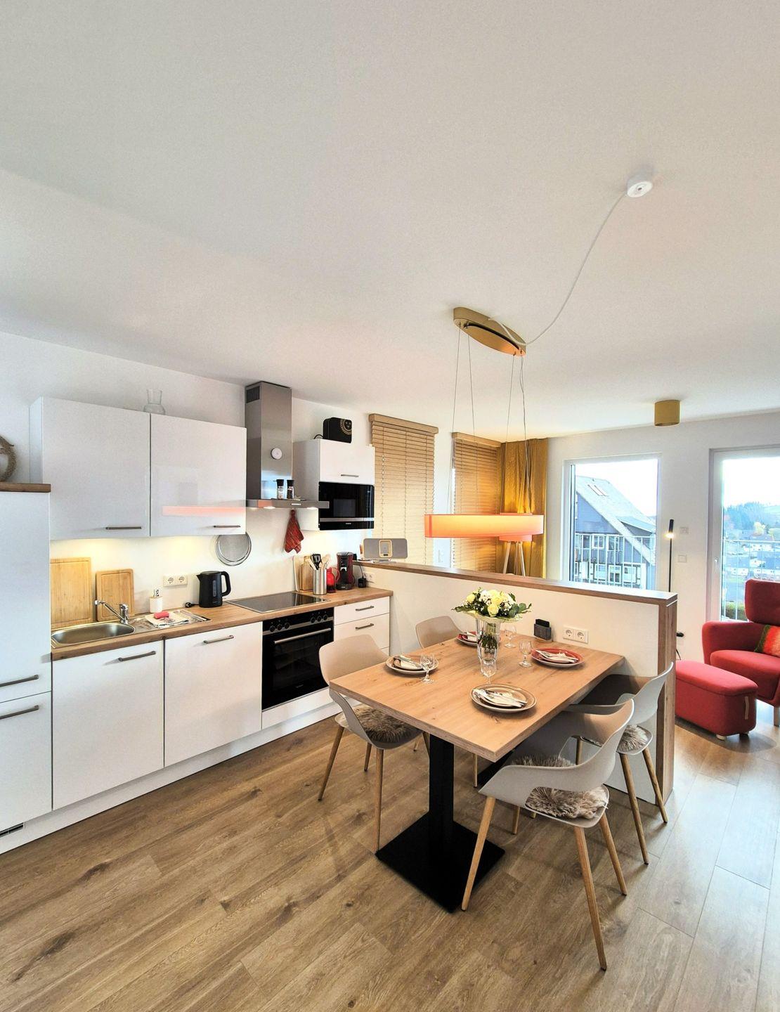 Das lichtdurchflutete und hochwertige Winterberg Penthouse 21141 befindet sich in bester zentraler Lage in der Stadt Winterberg (300 Meter vom Winterberger Marktplatz entfernt, nur wenige Gehminuten vom Winterberger Skiliftkarussell entfernt) im 4. Stock mit Aufzug.