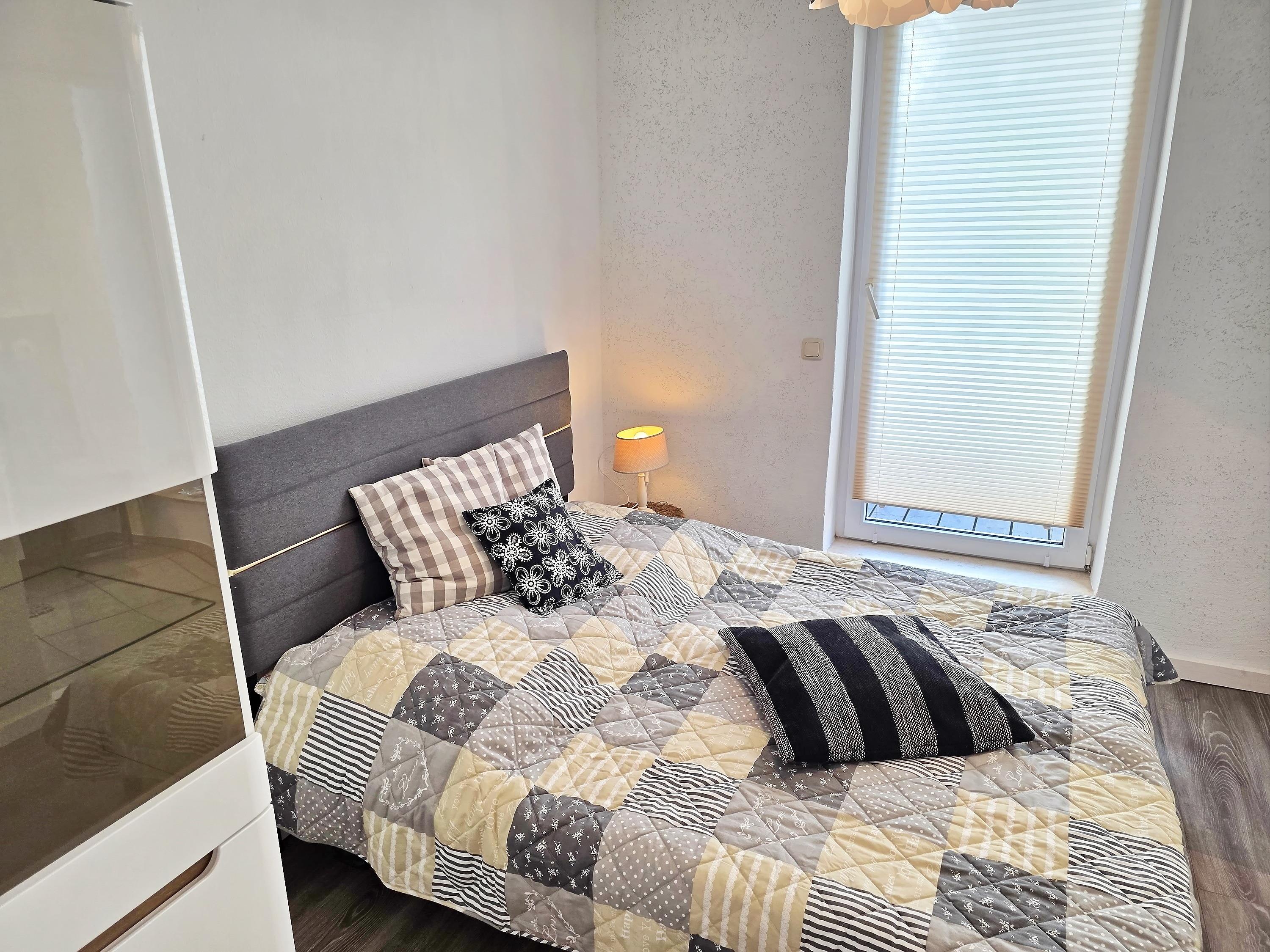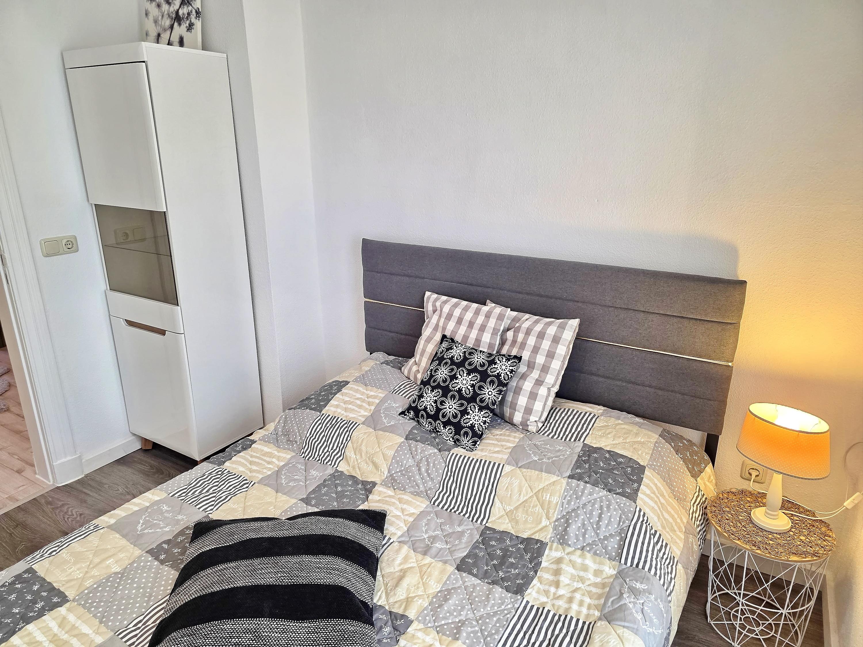 Das separate Schlafzimmer sorgt mit einem komfortablen Doppelbett für erholsame Nächte. Ausreichend Stauraum für Ihr Gepäck ist selbstverständlich vorhanden.