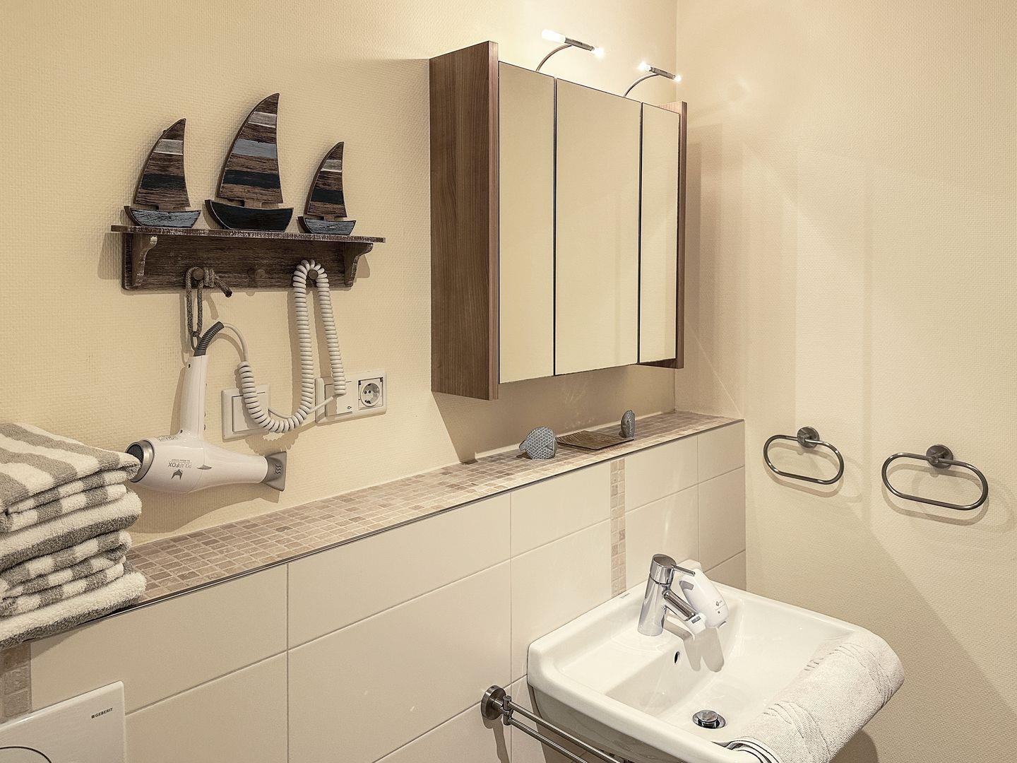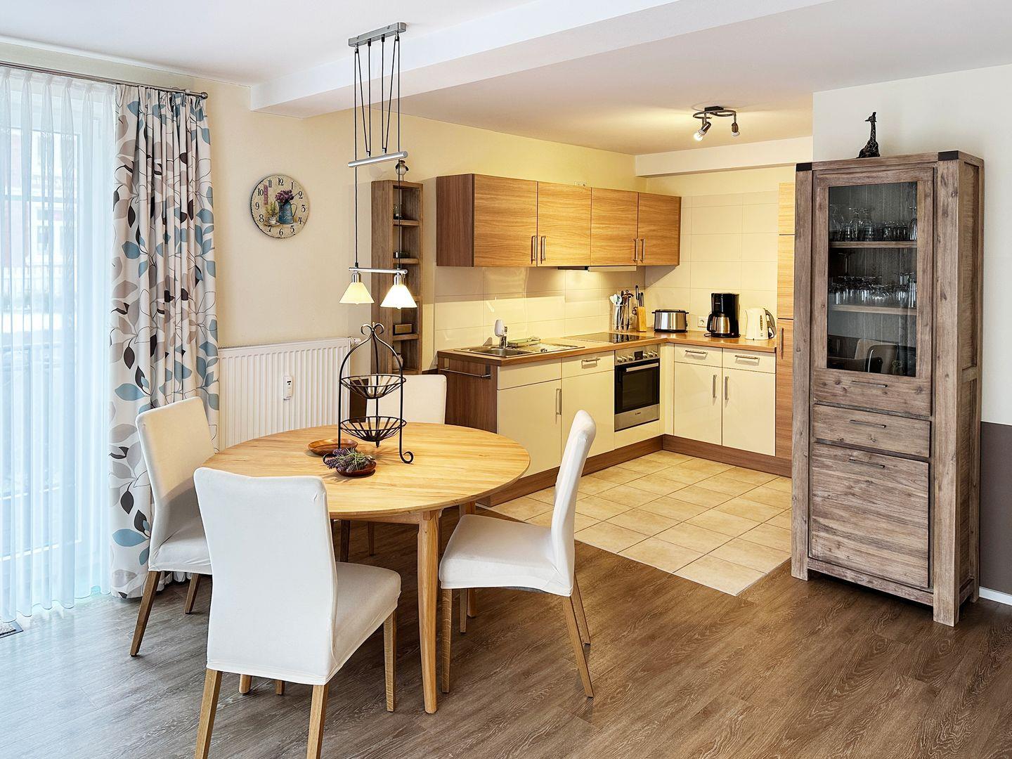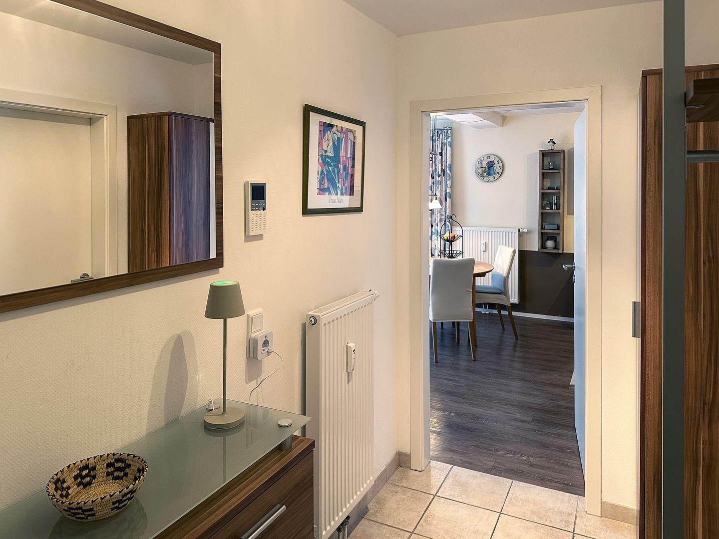 Die Wohnung verfügt über 1 Wohnraum mit WLAN, Sat-TV und offener Küche, 1 Schlafzimmer, 1 Badezimmer mit Dusche und WC; ein Süd-Ost-Balkon mit Strandkorb und Gartenmöbeln (April bis Oktober) und seitlichem Blick auf das Wattenmeer.