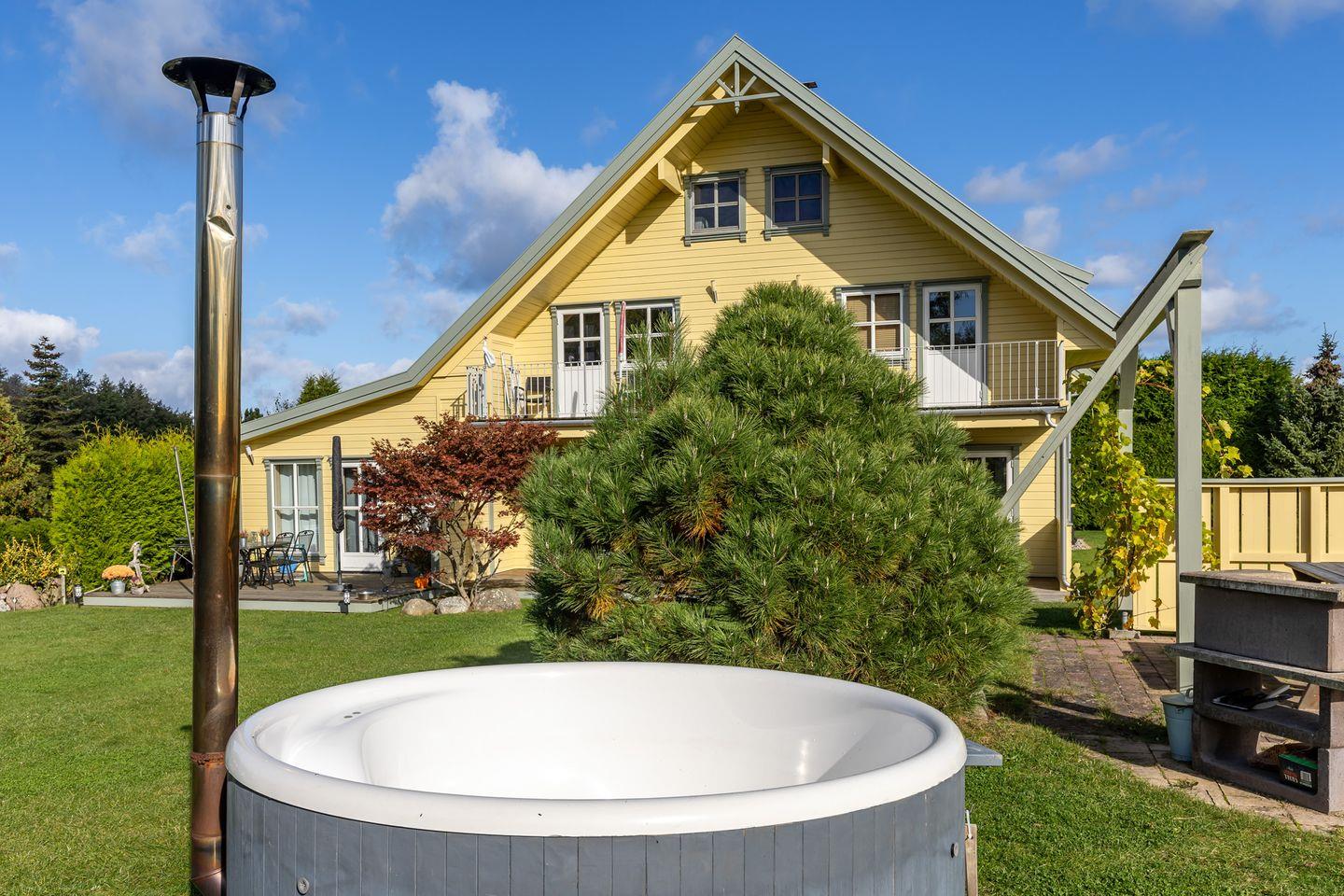Ruhige Lage, großer Garten, Fasssauna, Hot Tub und Kaminofen – die Wohnung Bergen im Haus Norway bietet alles für eine erholsame Auszeit zu jeder Jahreszeit. Nur wenige Minuten trennen Sie von der Ostsee, vom beliebten Ostseebad Kühlungsborn und von herrlichen Wander- und Radwegen durch die Küstenlandschaft.