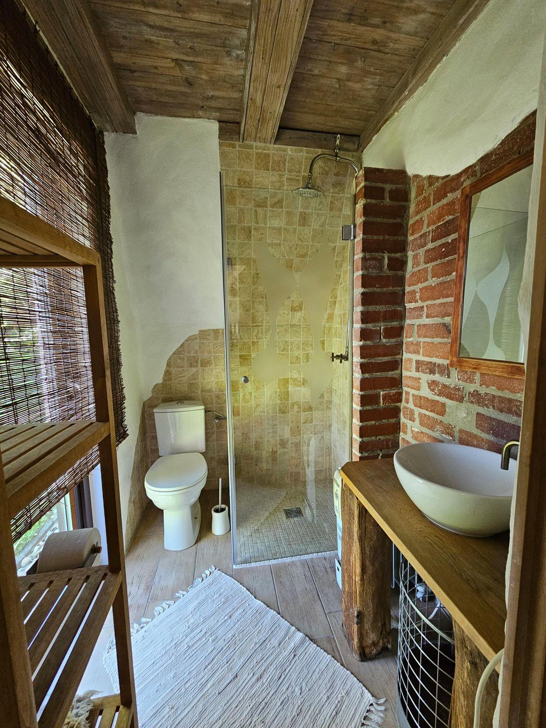 Über eine kleine Treppe erreichen Sie zwei liebevoll eingerichtete Schlafzimmer – eines mit Doppelbett, das andere mit zwei Einzelbetten. Das moderne Duschbad sorgt für Komfort. Auf der Sonnenterrasse können Sie Ihr Frühstück im Freien genießen oder abends die letzten Sonnenstrahlen einfangen.