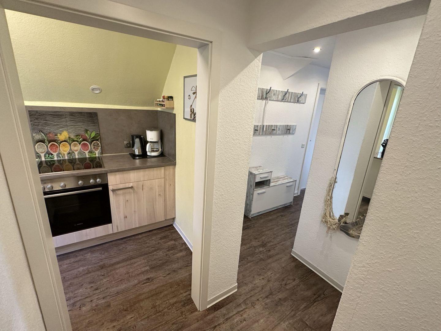 Die angrenzende Küche ist komplett ausgestattet und lädt dazu ein, kulinarische Köstlichkeiten zuzubereiten.