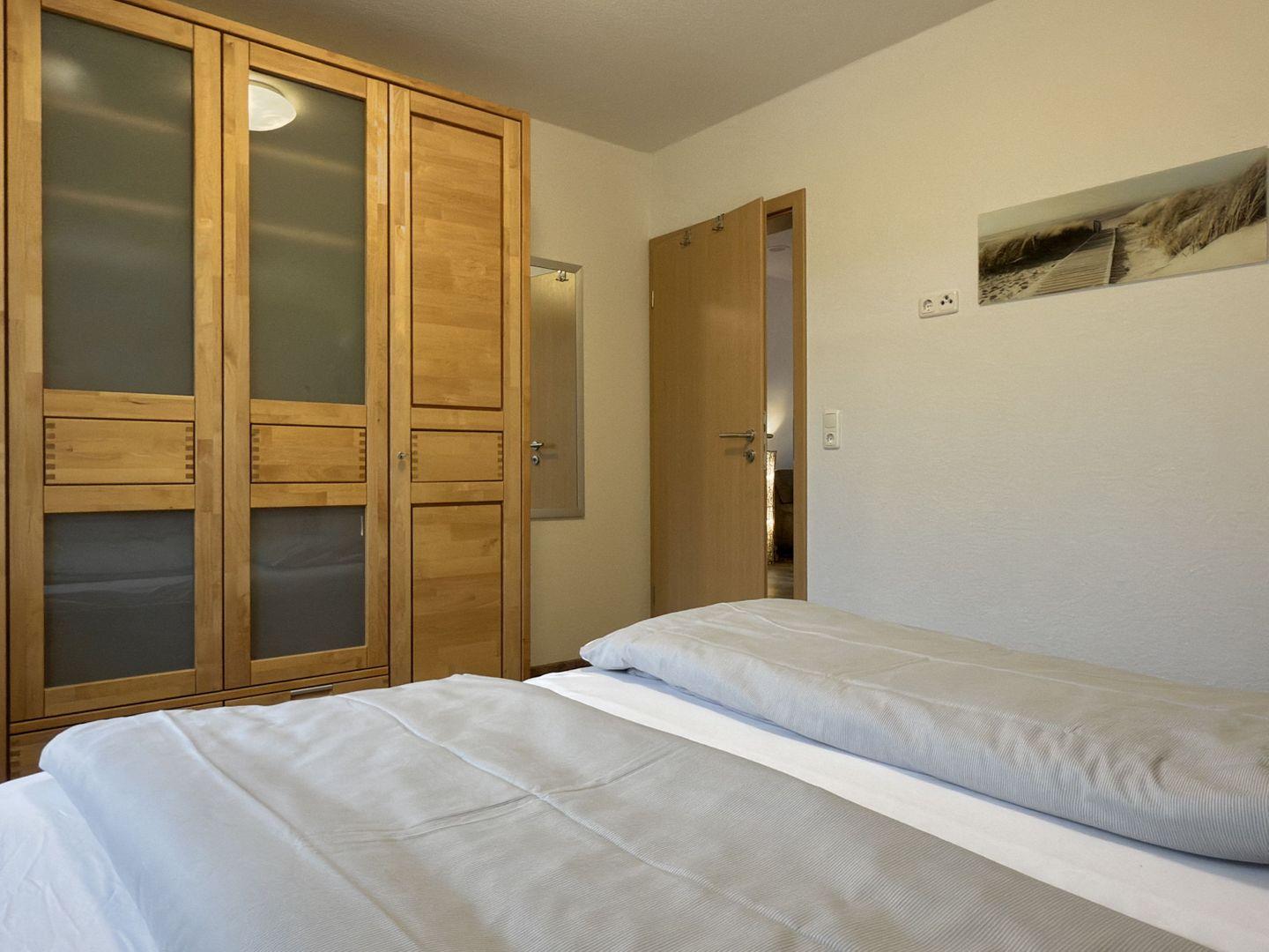 Das Schlafzimmer lädt mit einem großzügigen Doppelbett 180x200cm (2x90x200cm Matratzen) zum Träumen ein, während der geräumige Kleiderschrank für Ordnung sorgt. Für Familien mit kleinen Gästen steht ein kostenloses Babybett bereit.
