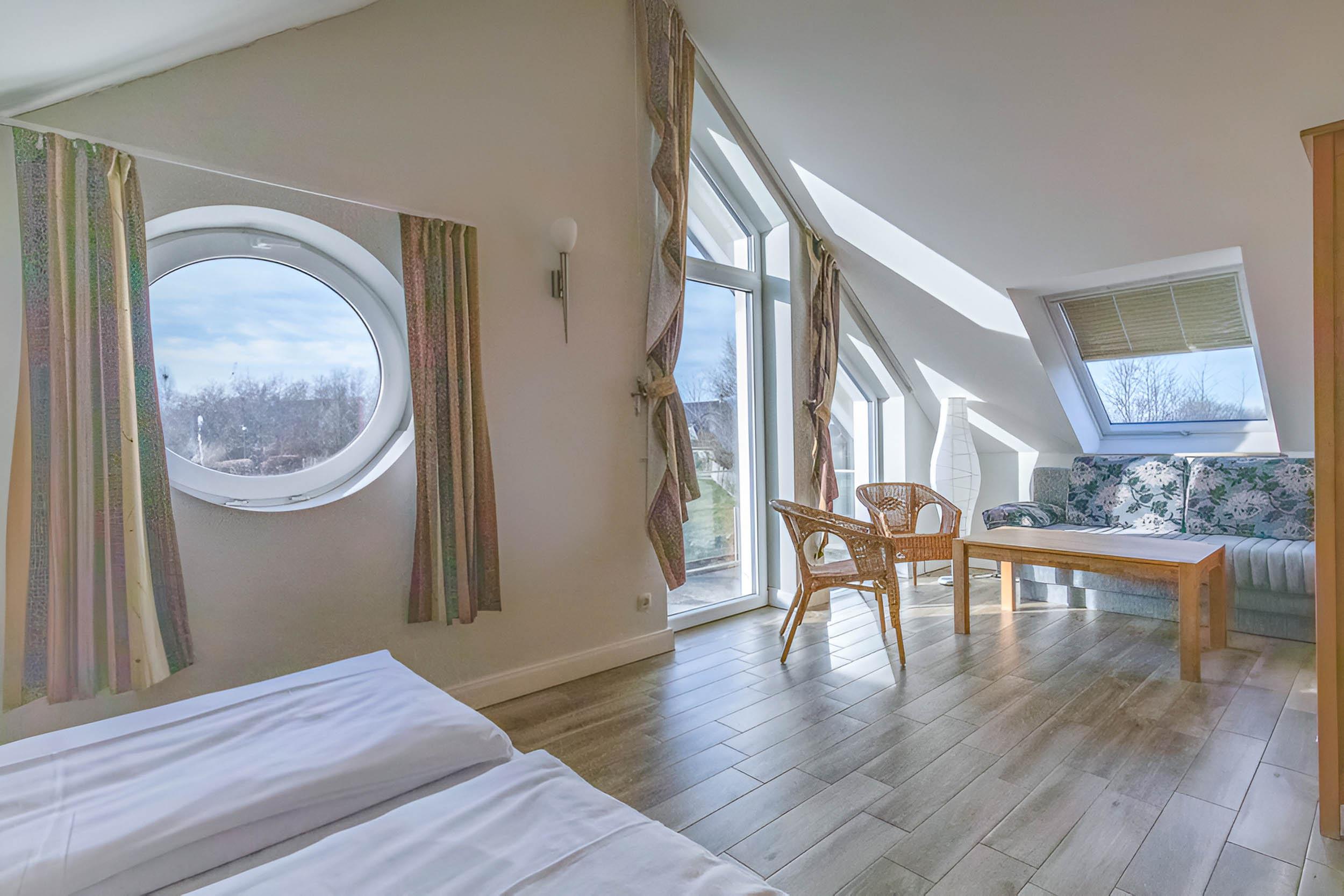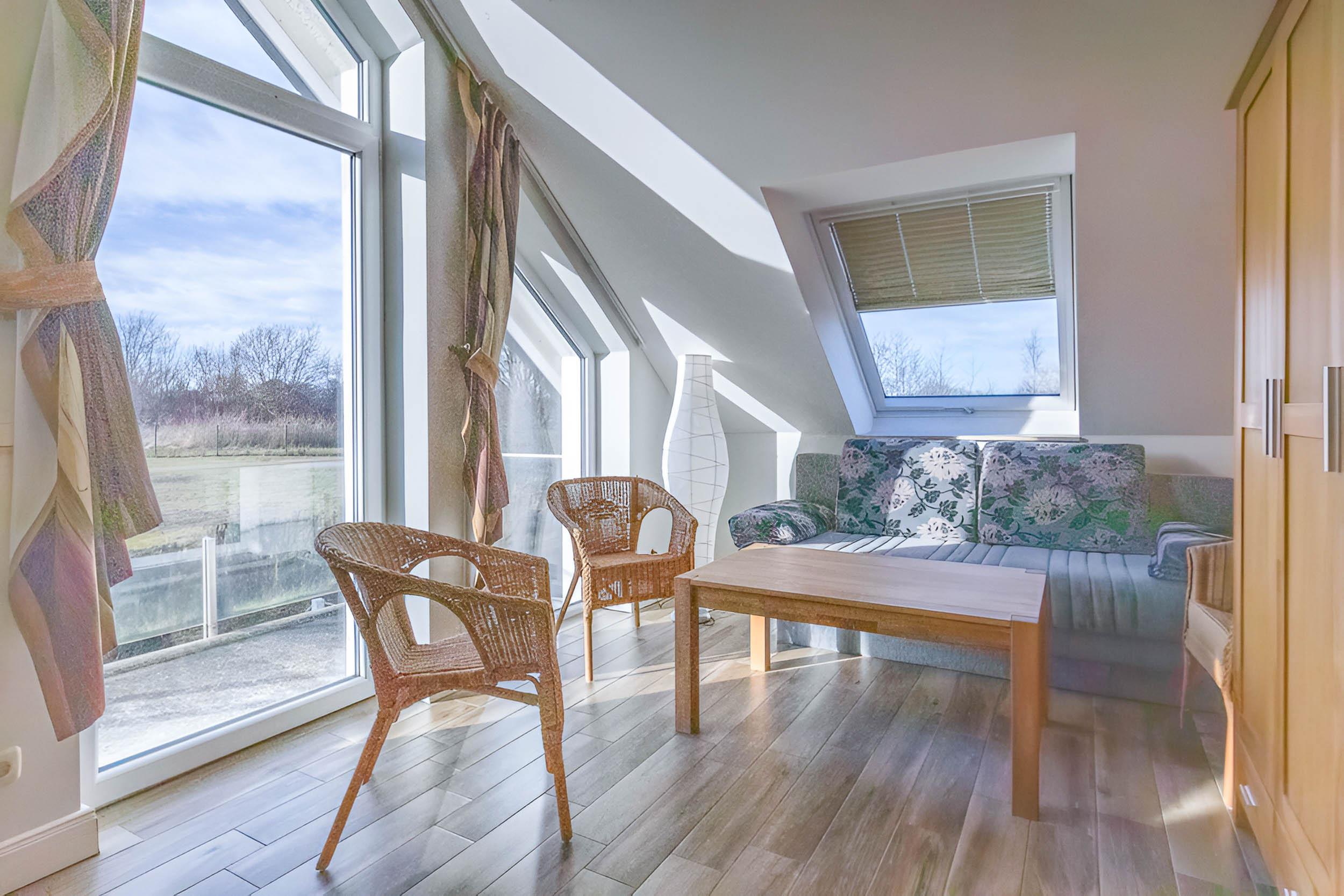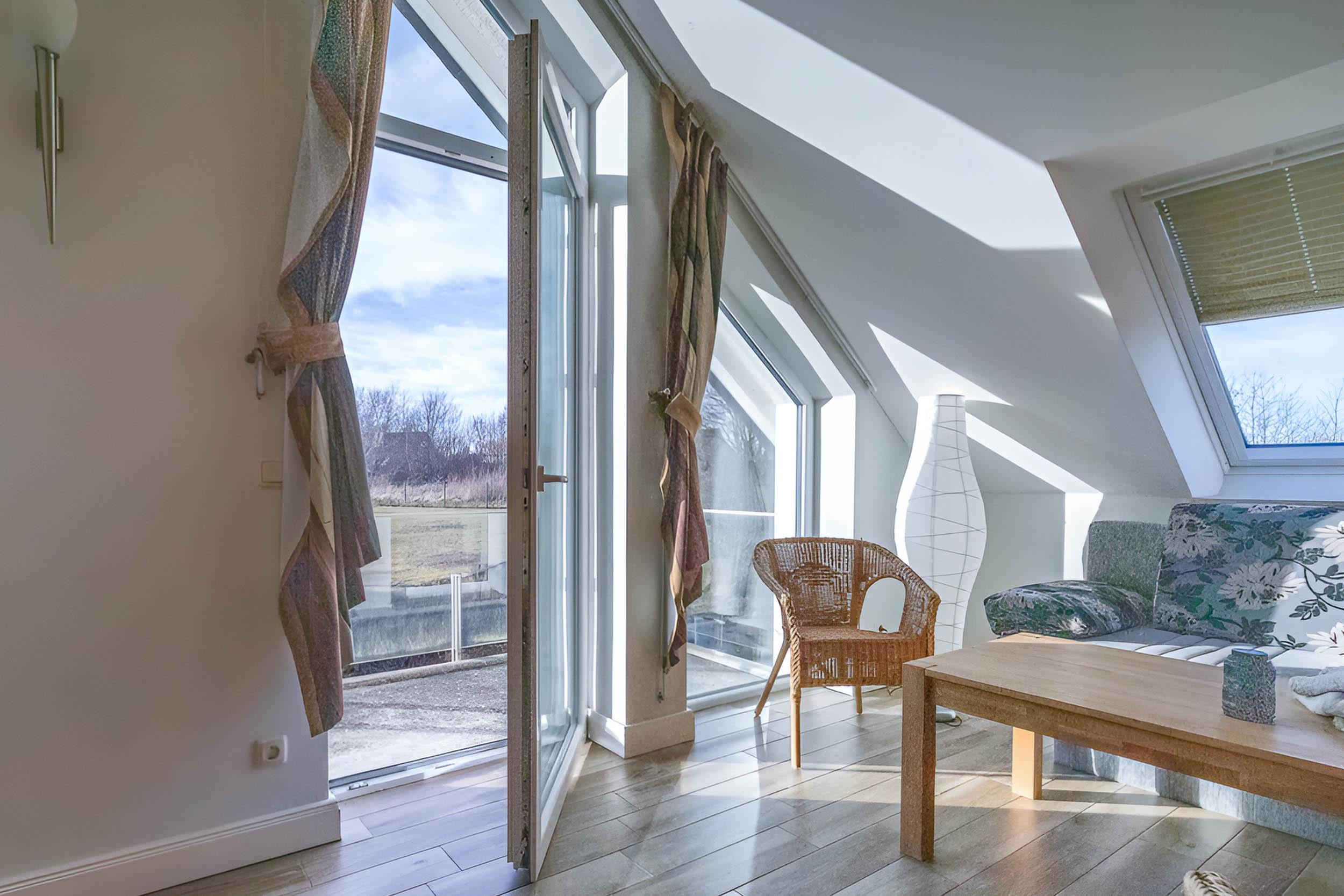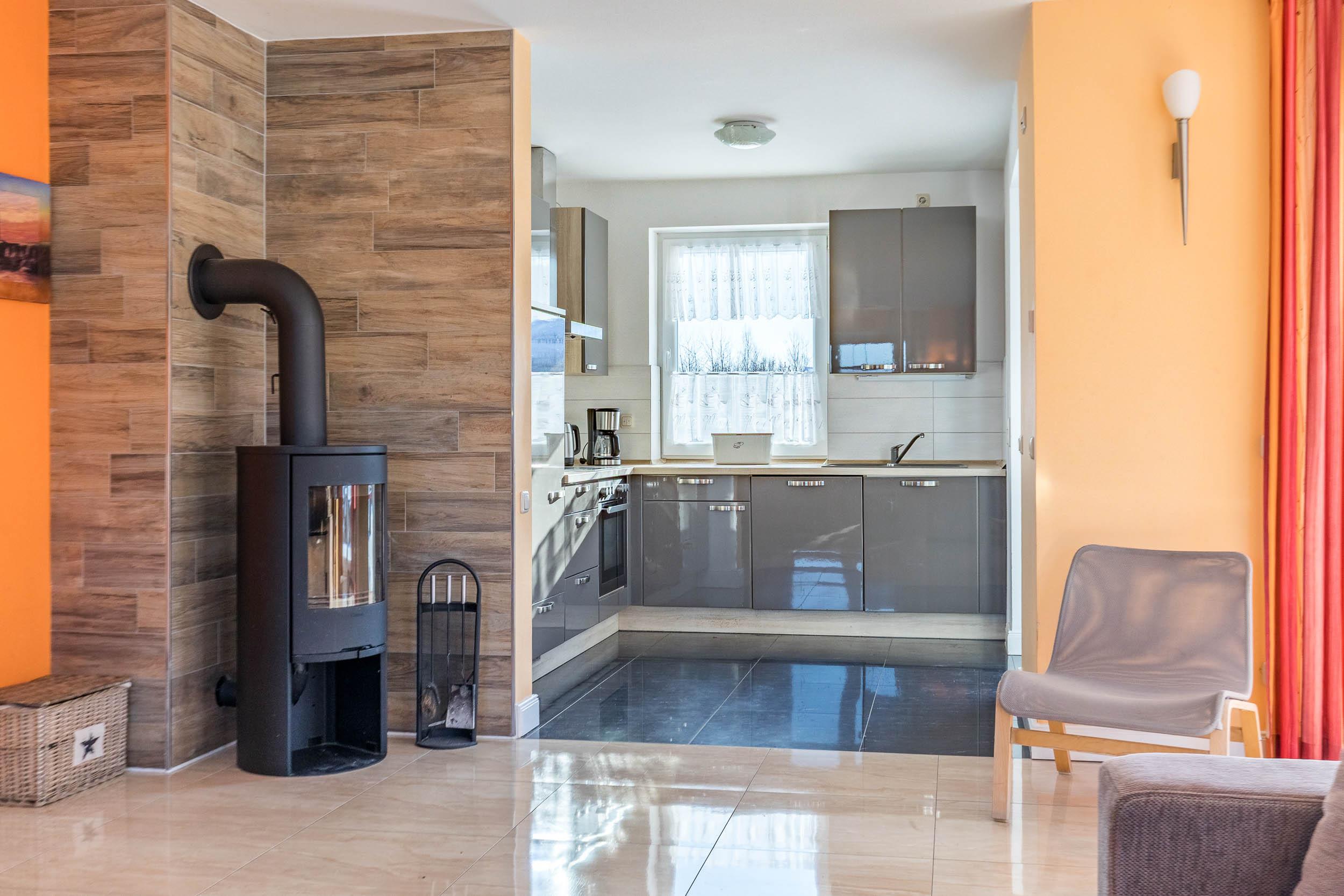 Genießen Sie den traumhaften Seeblick zur Ostsee, der sich bereits vom Wohnbereich und aus drei Schlafzimmern eröffnet. Das Herzstück der Villa ist der großzügige, offene Wohn- und Essbereich mit gemütlicher Couchgruppe, Flat-Screen-TV und DVD-Player. Der große Esstisch bietet Platz für bis zu 8 Personen. Die integrierte, voll ausgestattete Küche lässt keine Wünsche offen und verfügt über alle wichtigen Geräte und Utensilien.