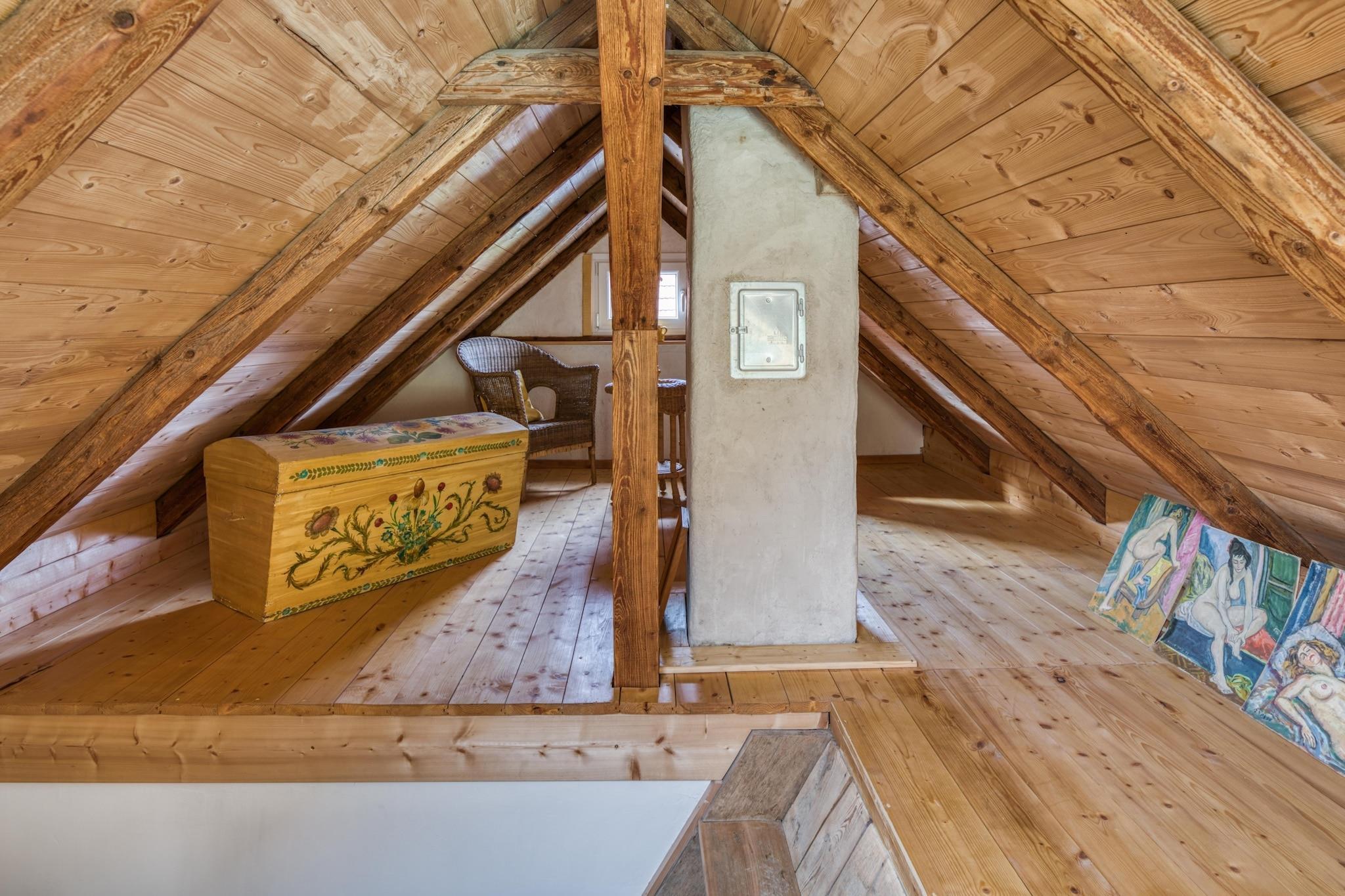 Bare 500 m fra sentrum av landsbyen og ved siden av skogsstier og en fredelig elv, tilbyr dette kompakte flerplanshjemmet i Wolfsberg koselig komfort for par, alenereisende eller små familier. Første etasje har et funksjonelt kjøkken med elektrisk komfyr, vannkoker, brødrister, mikrobølgeovn, kjøleskap og filterkaffemaskin, pluss en lys stue/spisestue med flatskjerm-satellitt-TV, radio og sittehjørne – perfekt for å slappe av etter en dag utendørs. Badet har dusj, toalett, servant og hårføner for din bekvemmelighet. Oppe på loftet venter et tettsittende køyeseng - flott for barn eller eventyrlystne gjester. Sentralvarme holder boligen varm gjennom kaldere måneder. Gå ut for å nyte den overbygde terrassen på 25 m² eller slapp av i den 1000 m² store inngjerdede hagen som deles med eieren, hvor hagemøbler, solsenger, en kullgrill og parasoll skaper en avslappet atmosfære. Det er også sykkelbod og parkering på stedet for ekstra enkelhet. Med tennisbaner, skogsstier, offentlig transport og et lokalt svømmebasseng innen 500 m - og innsjøen, ridning og golfmuligheter bare en kort kjøretur unna - utgjør denne eiendommen en problemfri base for å nyte Wolfsbergs naturrike omgivelser