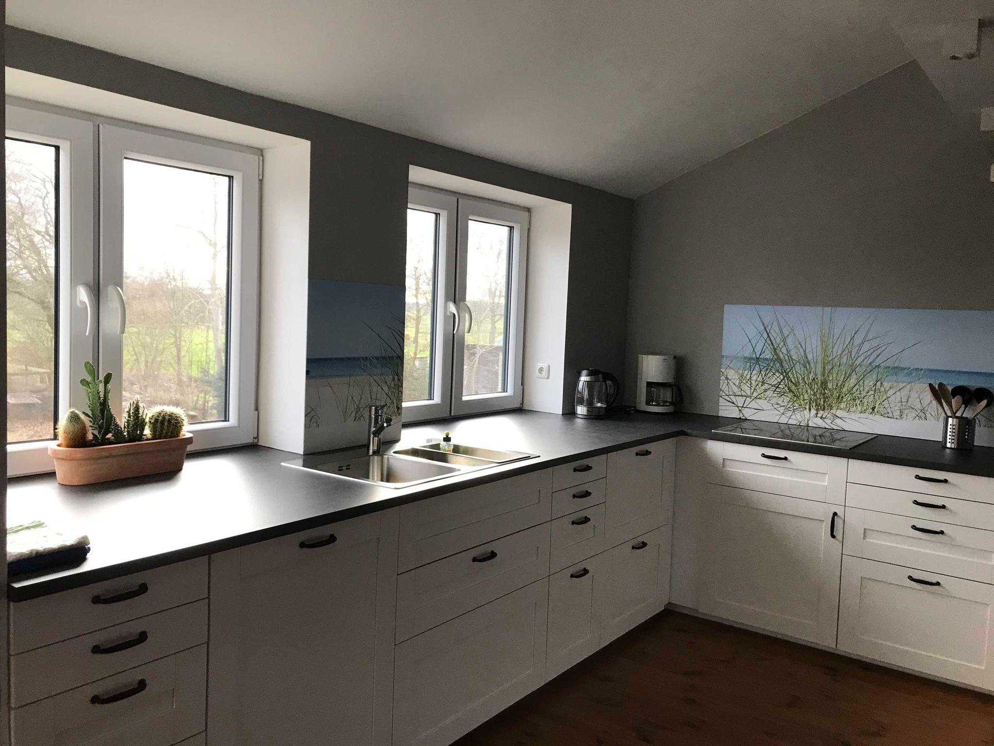 In der großzügigen Küche - Nutzung durch 2 Ferienwohnungen - könnt ihr euch selbst versorgen und auf Wunsch Kontakt zu anderen Gästen knüpfen.
